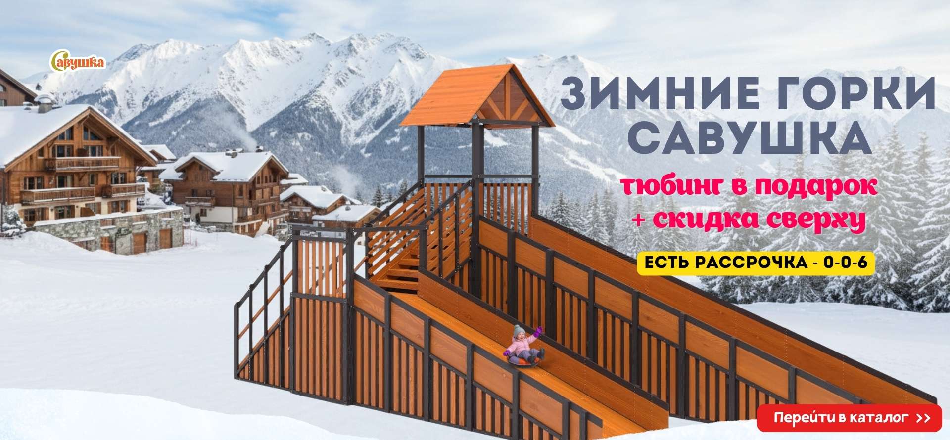 С приближением зимы фабрика «Савушка» представляет коллекцию деревянных зимних горок — для парков, дворов, детских садов, санаториев, баз отдыха, парков, школьных и городских площадок.