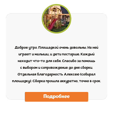 Наша команда стремится поддерживать традиционные семейные ценности, а наша главная идея заключается в том, что дети должны полноценно наслаждаться счастливой порой своего детства: вместе играть, развивать свои навыки с помощью спортивных комплексов, общаться и заводить новых друзей. Все наши проекты создаются и воплощаются с большой любовью и заботой о молодом поколении!