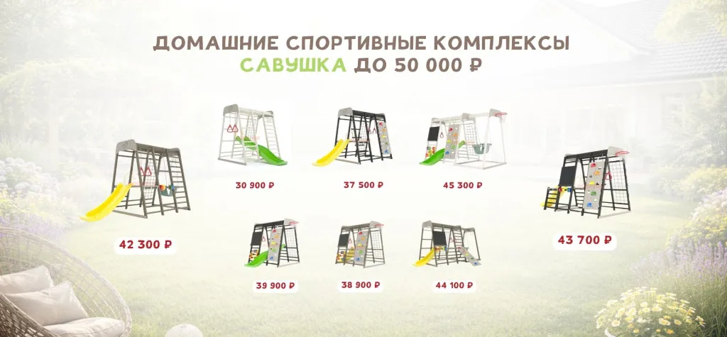 Как производитель, Савушка изначально закладывает в каждую модель базовые требования к безопасности, прочности и удобству - поэтому даже в сегменте до 50 000 рублей можно выбрать полноценный игровой комплекс, а не «упрощённый вариант».
