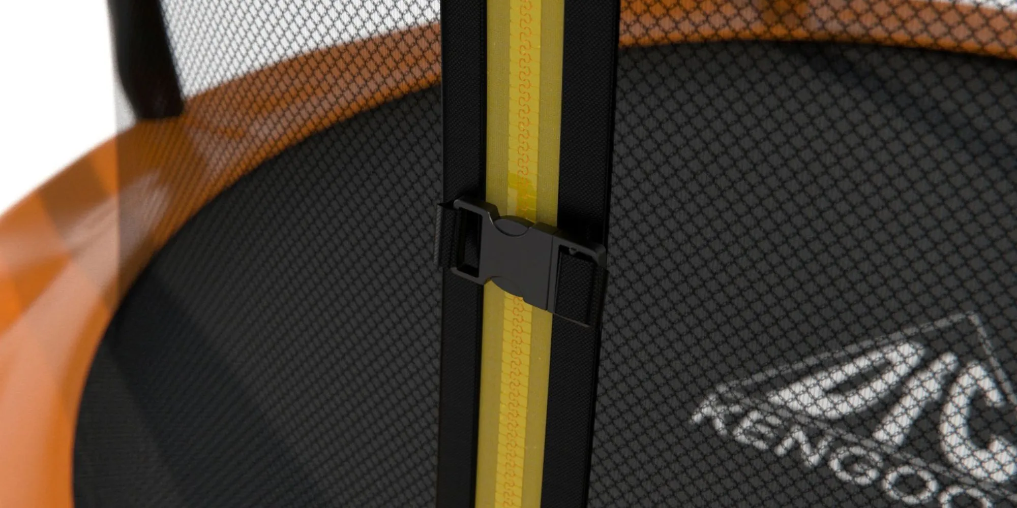 Прыжковая поверхность выполнена из полипропилена последнего поколения "Перматрон", который отличается высокой прочностью и стойкостью к ультрафиолетовому излучению. Полотно устойчиво к механическим повреждениям и износу, что продлевает срок службы батута. Все пружины закрыты защитным чехлом для предотвращения травм.