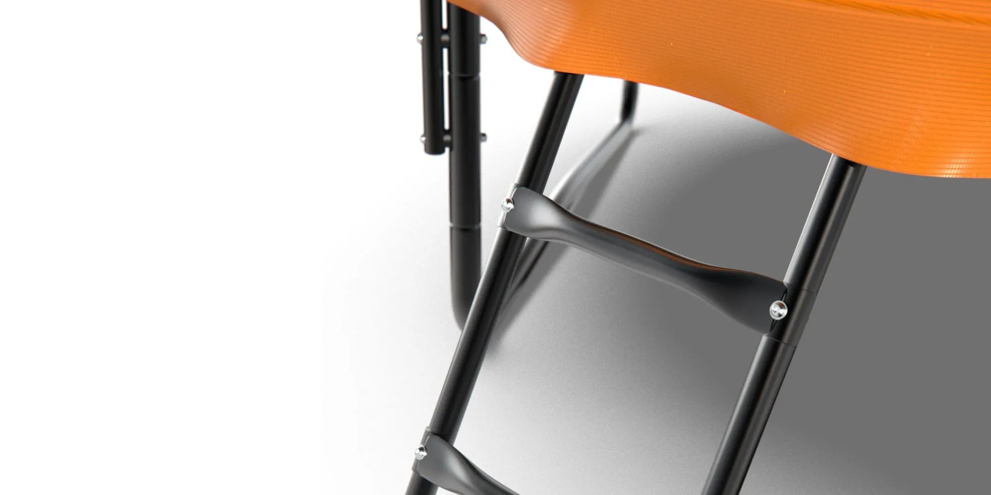 Лестница, входящая в комплект, обладает простой и прочной конструкцией, что позволяет легко и безопасно подняться на батут. Лестница подходит для батута диаметром 6' (183 см).