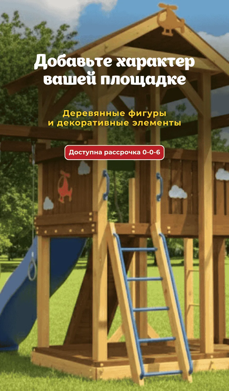 Если вы хотите купить декор для детской площадки, обновить внешний вид комплекса или сделать его более индивидуальным, деревянные элементы Савушка помогут легко преобразить пространство и добавить ярких акцентов.