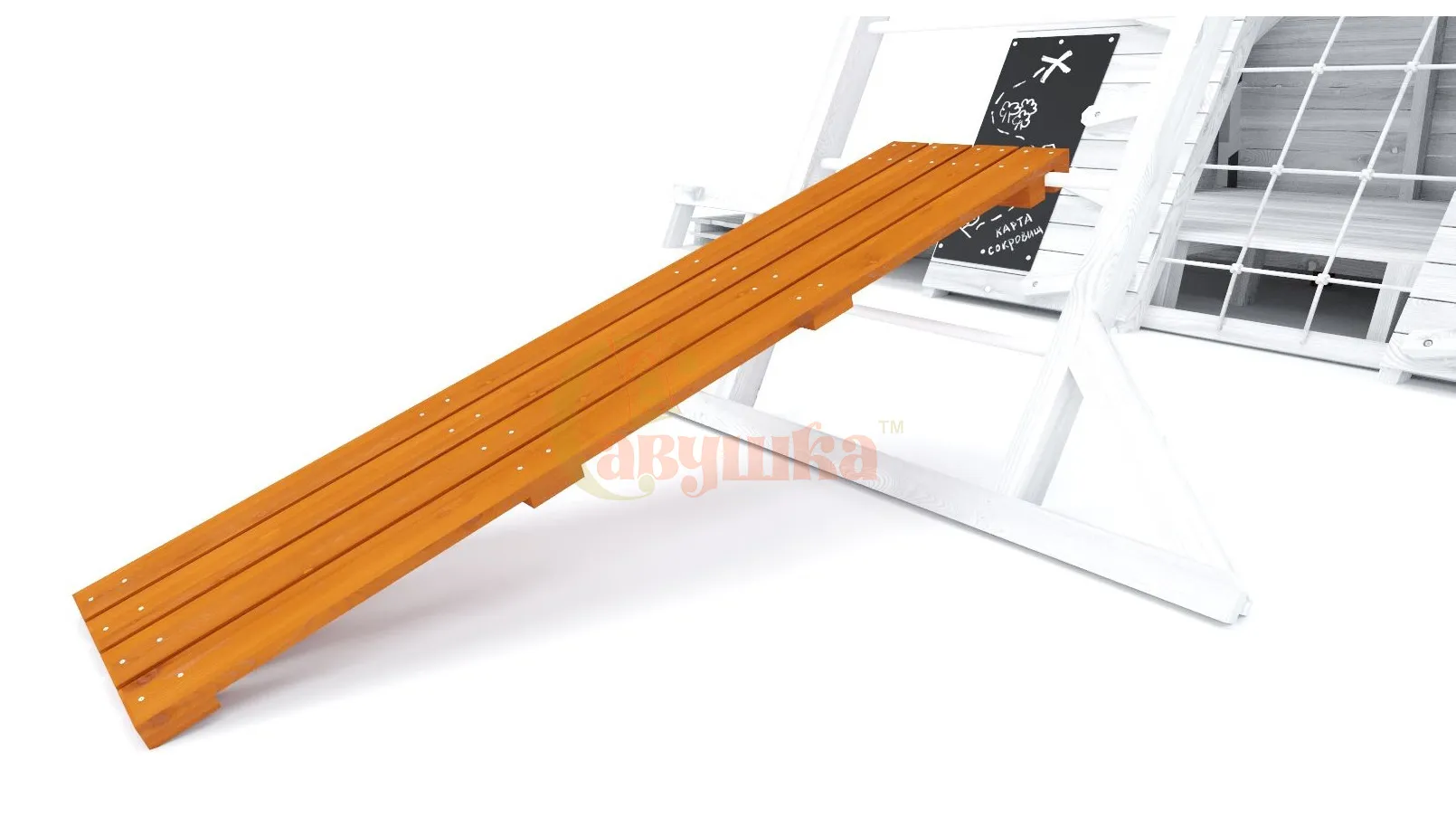 Наклонная скамья Савушка – идеальный аксессуар для детских игровых комплексов, обеспечивающий дополнительные возможности для занятий спортом. Приставная скамья легко устанавливается и не требует жесткой фиксации, так как она опирается на перекладину лестницы и является съёмной. Это удобное решение для тех, кто хочет добавить функциональность без сложного монтажа.