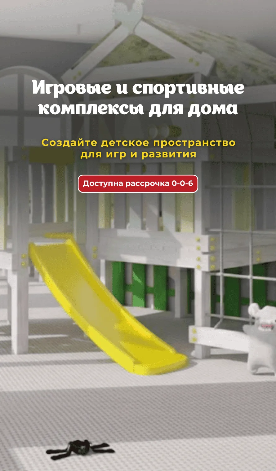 Высота платформы до 90 см и горка 1,75 м делают игру более динамичной и интересной для детей от 3 лет. При этом конструкция адаптирована для установки в жилых помещениях и не перегружает перекрытия.