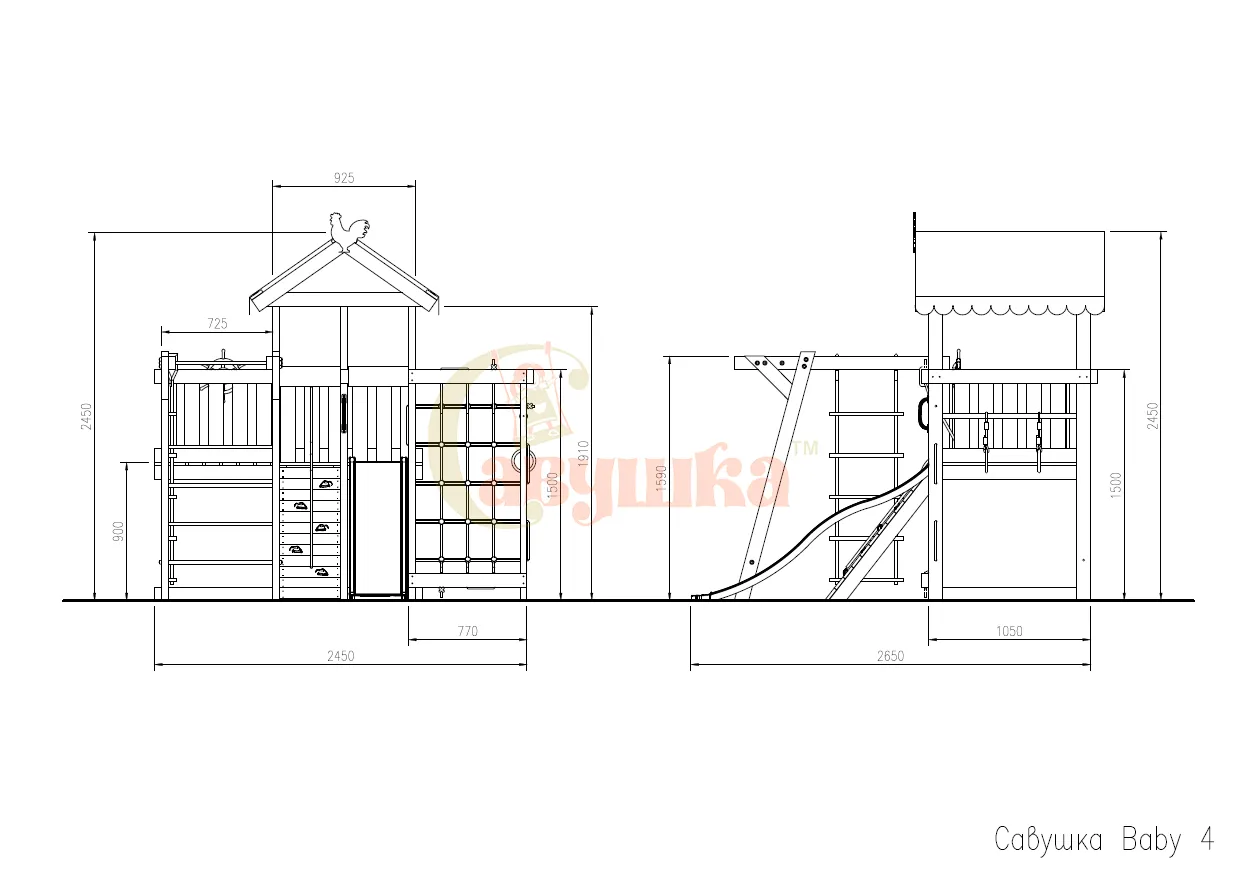 Элементы конструкции гладкие, углы скруглены — риск получения травм сведен к минимуму. Комплекс выглядит аккуратно и эстетично.