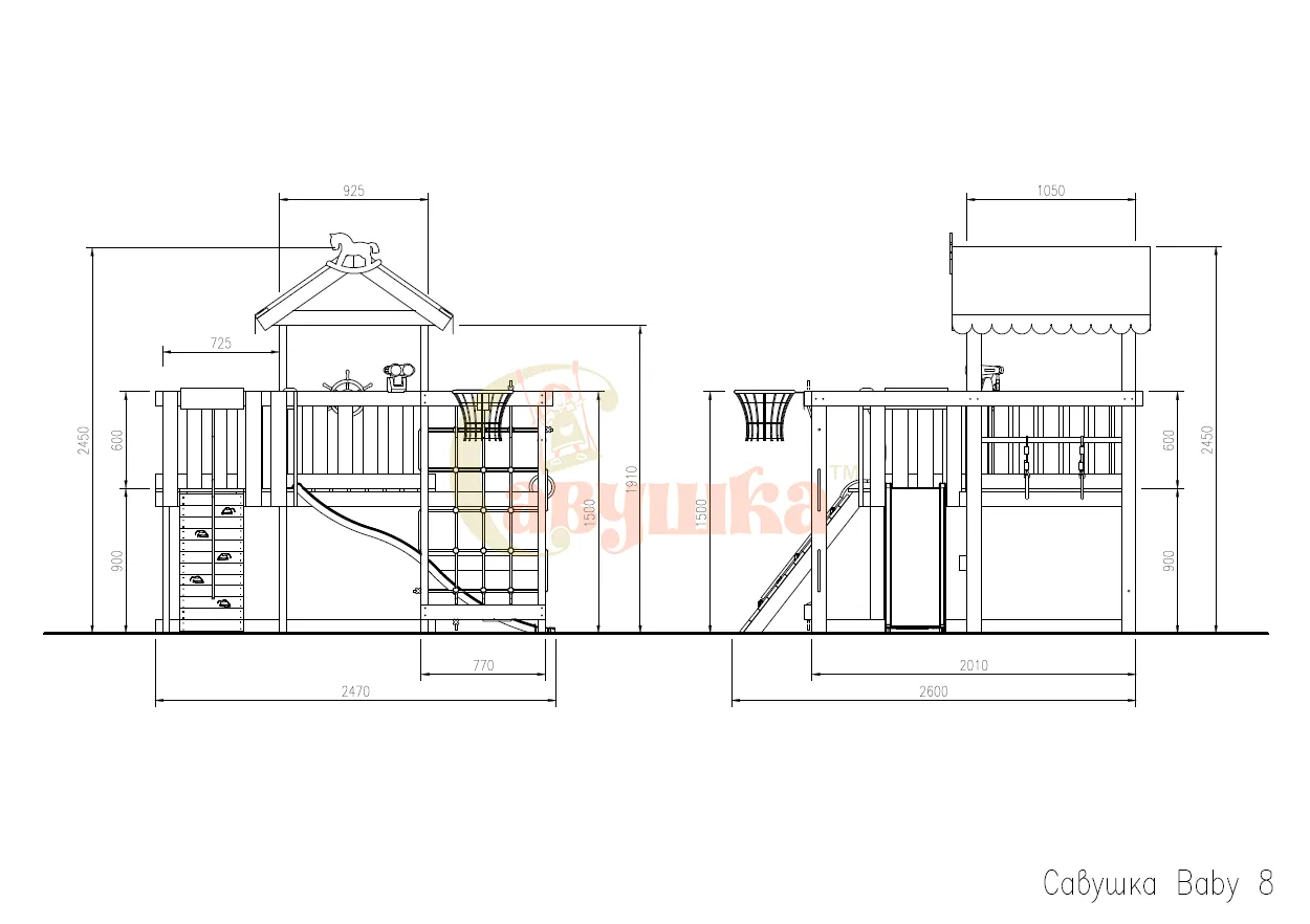 Модель Савушка Baby (club)-8 разрабатывалась нашими конструкторами для установки в помещениях.Для конструкции выбраны современные и натуральные материалы, детали сконструированы и обработаны в соответствии с ГОСТ. Для каркаса мы используем массив, сечение которого составляет 45 х 90 мм. Балки, несущие нагрузку получаются прочными и устойчивыми к изменению формы. Перекладины покрыты сертифицированными покрытиями (используется порошковое окрашивание). Мягкие накладки в отдельных местах защищают голову и остальные части тела от контакта с каркасом. Поцарапаться о крепеж также не получится, благодаря пластиковым накладным элементам.