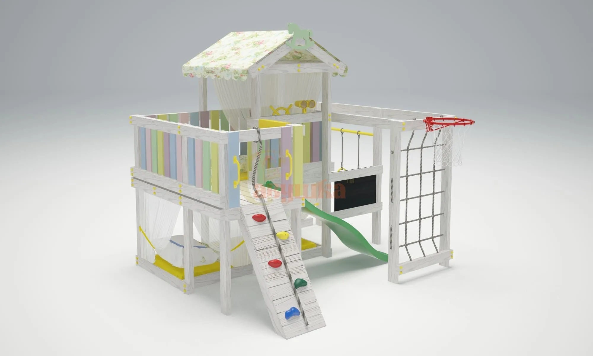 Закажите данную модель с разноцветными ограждениями, в базовой или дополненной комплектации. Подарите детям идеальное место для веселого, развивающего и абсолютно безопасного времяпровождения!