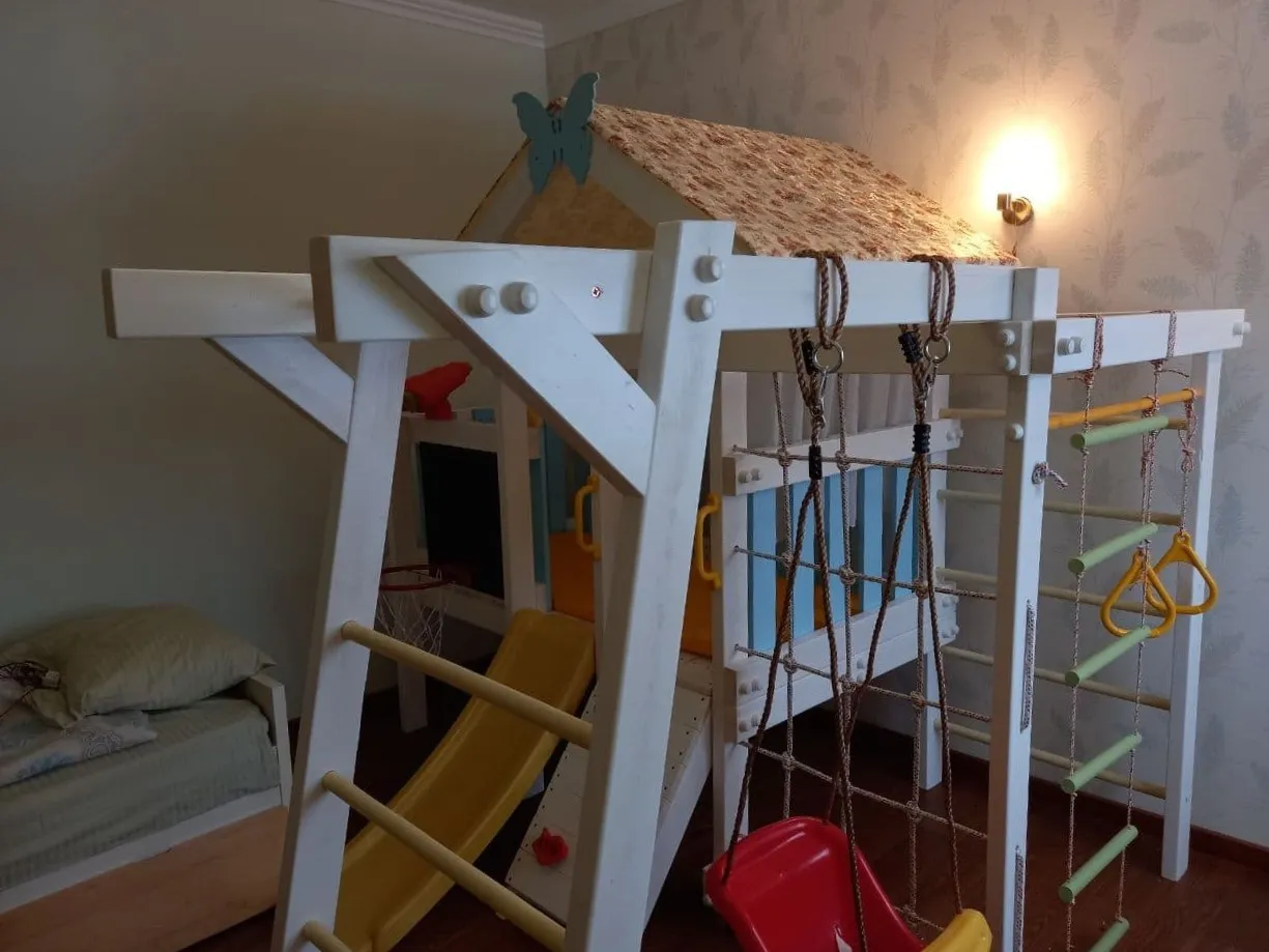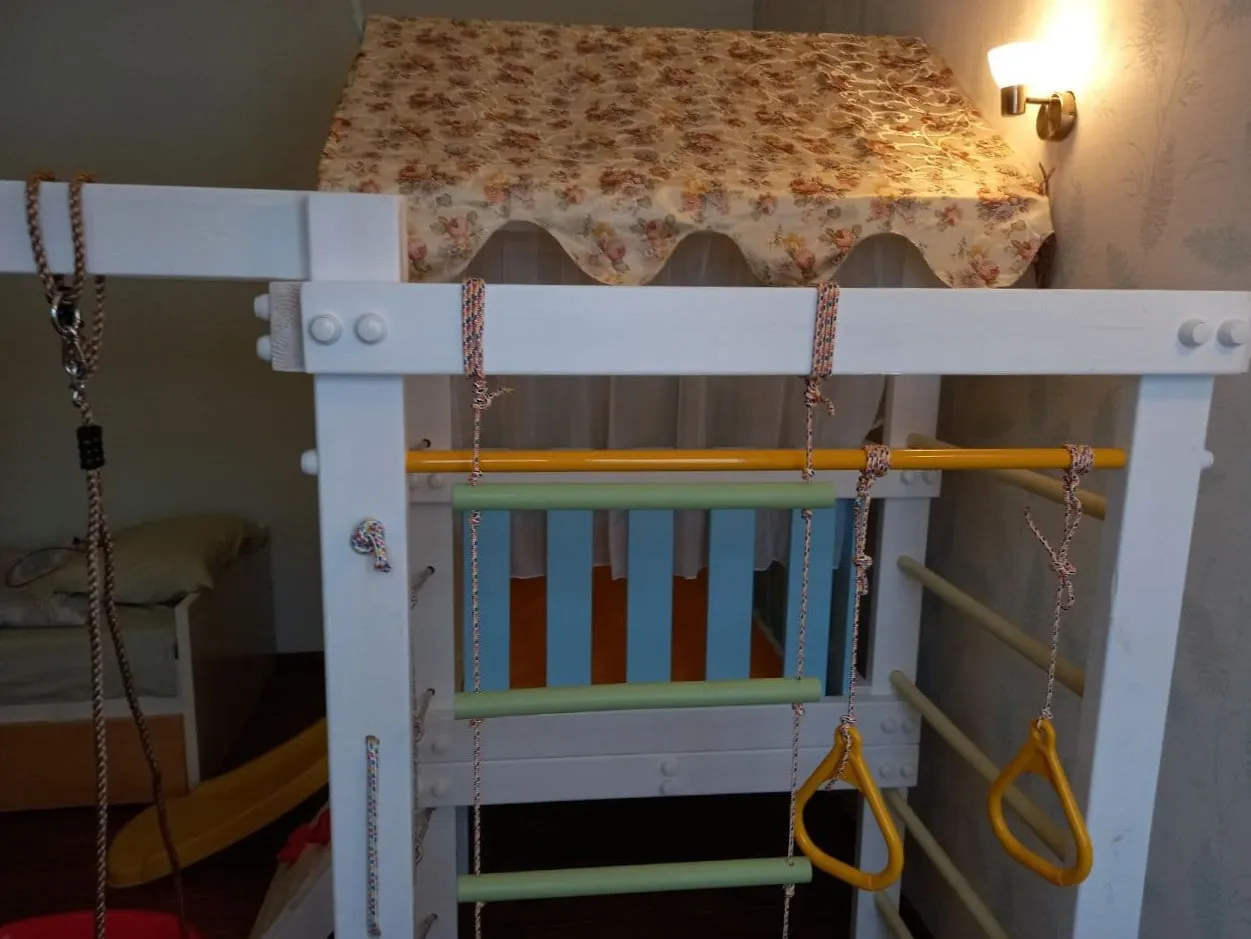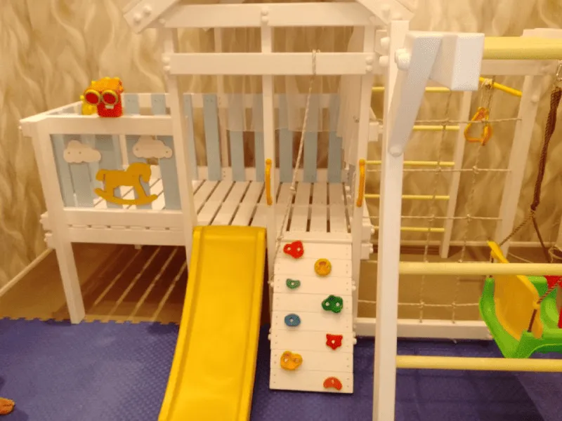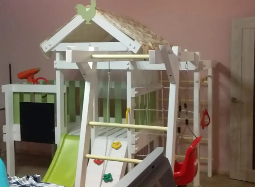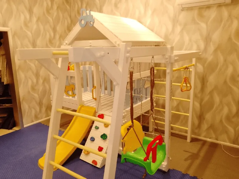 Детский комплекс «Савушка Baby - 2». Эта игровая площадка разрабатывалась нами специально для загородного дома и квартиры. Все модели компании проходят обязательную сертификацию. Комплекс интересный и безопасный для ваших детей. Гарантируем.Наши конструкторы использовали бельгийское игровое оборудование. Оно удобно для мальчиков и девочек, долговечно, а также соответствует ГОСТ.