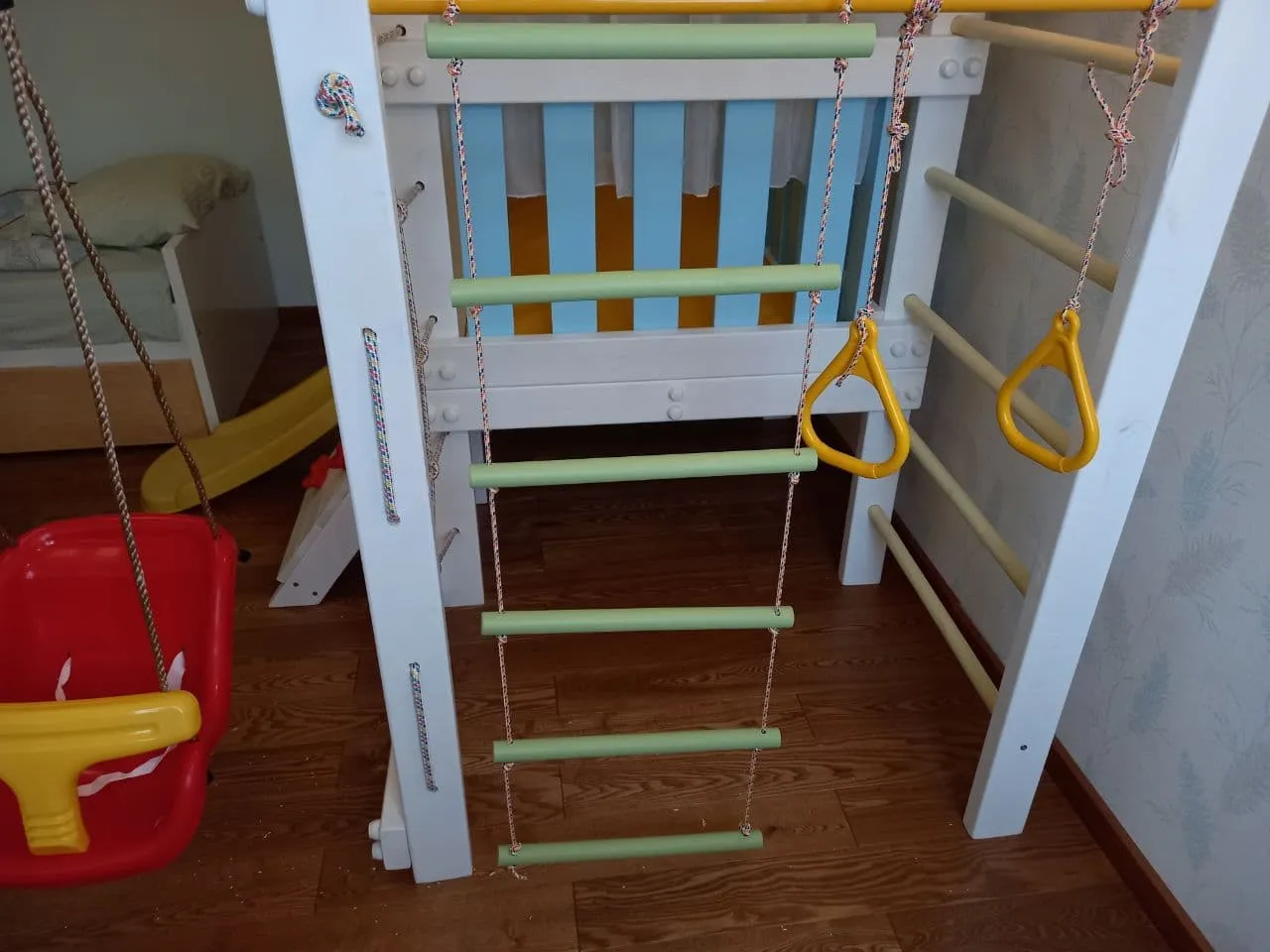 Все поверхности отшлифованы, а дерево обработано лакокрасочным покрытием. Чтобы руки малышей прочно держались на перекладинах, на металлические элементы нанесена порошковая краска. Такое покрытие не трескается со временем, устойчиво к истиранию даже при ежедневном использовании.