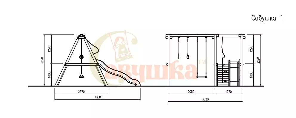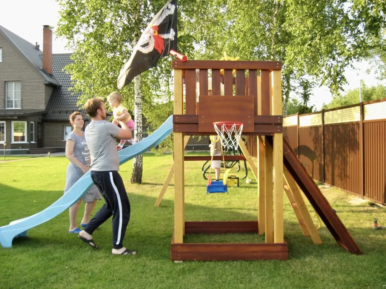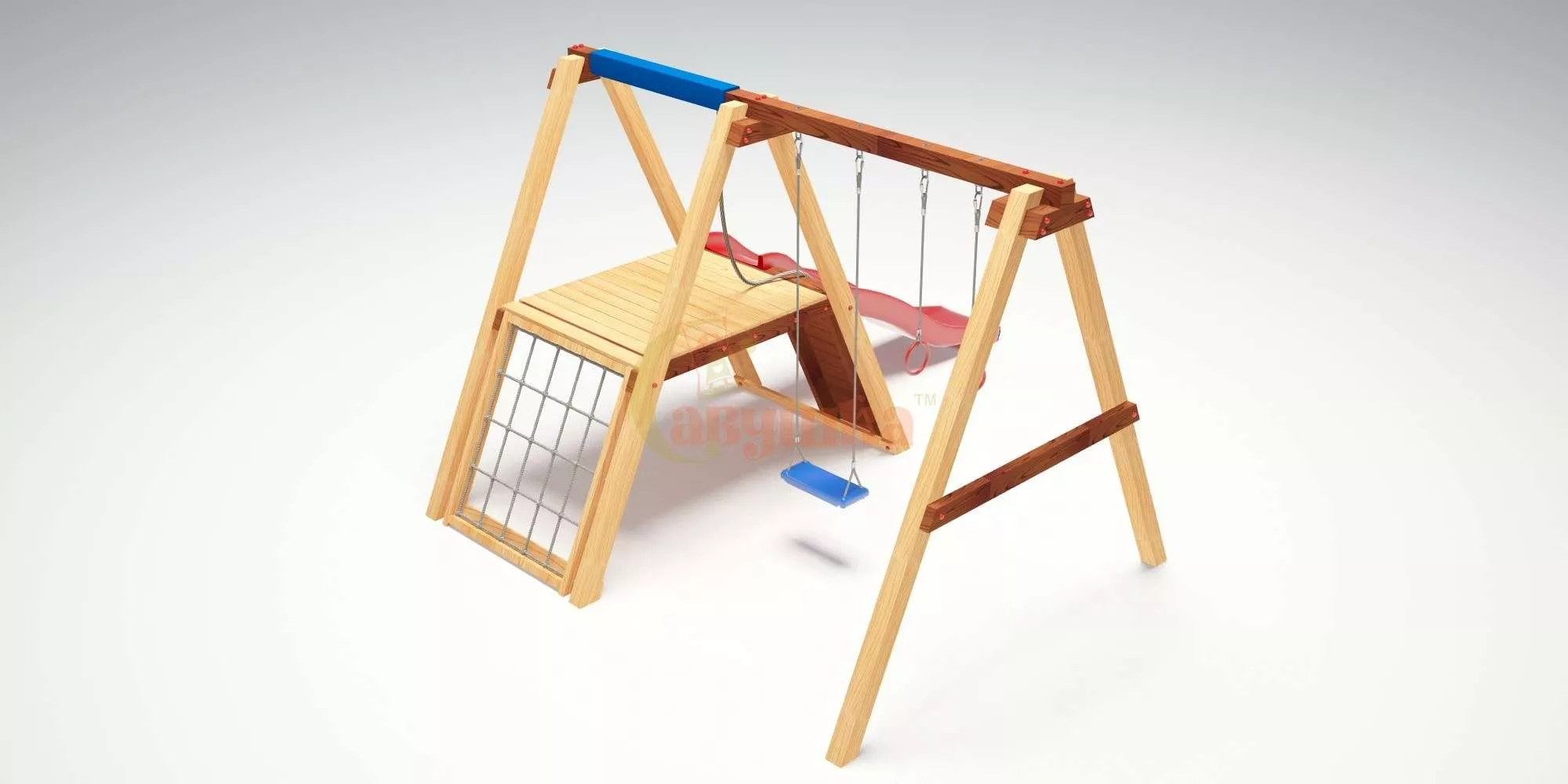 Недорогая, простая, функциональная и одновременно безопасная. Это описание отражает главные качества детской площадки «Савушка - 1». Модель предназначена для установки на улице, летней даче, или садовом участке. Она позволит вашему ребенку не только играть на воздухе, но и укрепить мышцы, развить координацию.Каркас комплекса сделан из дерева. Мы используем клееный брус сечением 90 х 90 мм. Такая площадь сечения делает раму прочной, готовой к повышенным нагрузкам. Клееный брус не боится повышенной влажности воздуха, не меняет форму со временем. Благодаря продуманной конструкции сборка не занимает много времени. Вы можете заказать монтаж в нашей компании или выполнить работы самостоятельно.