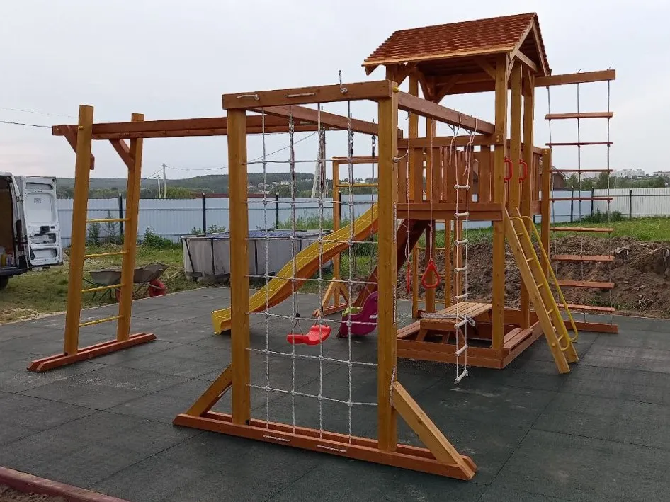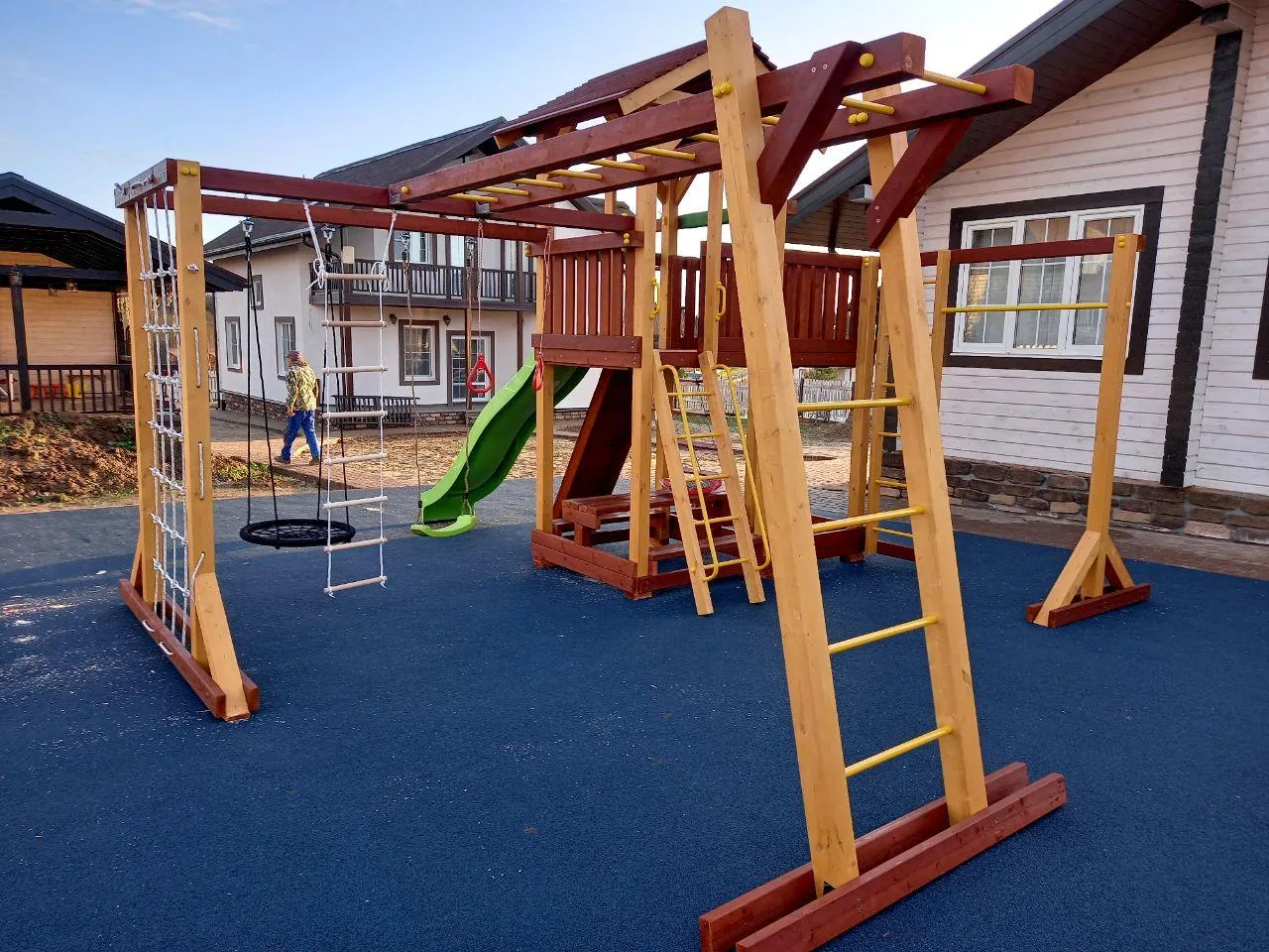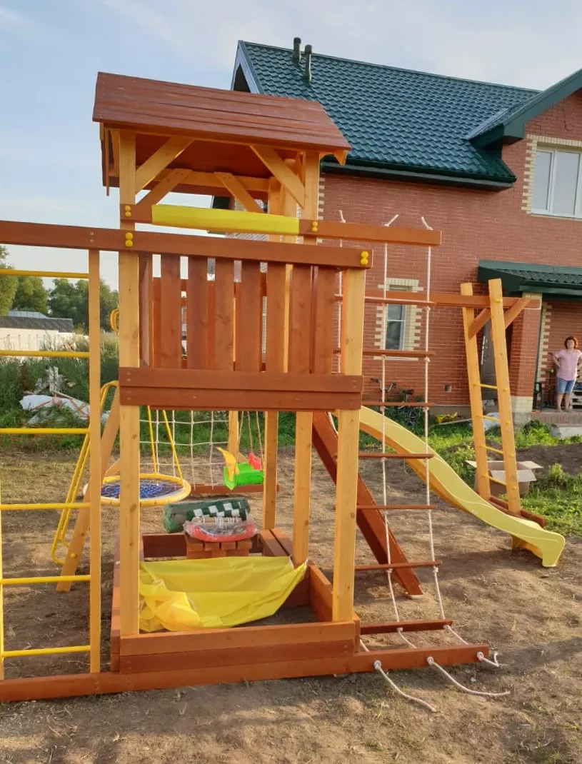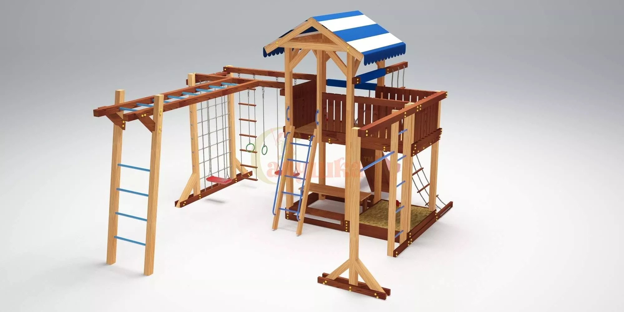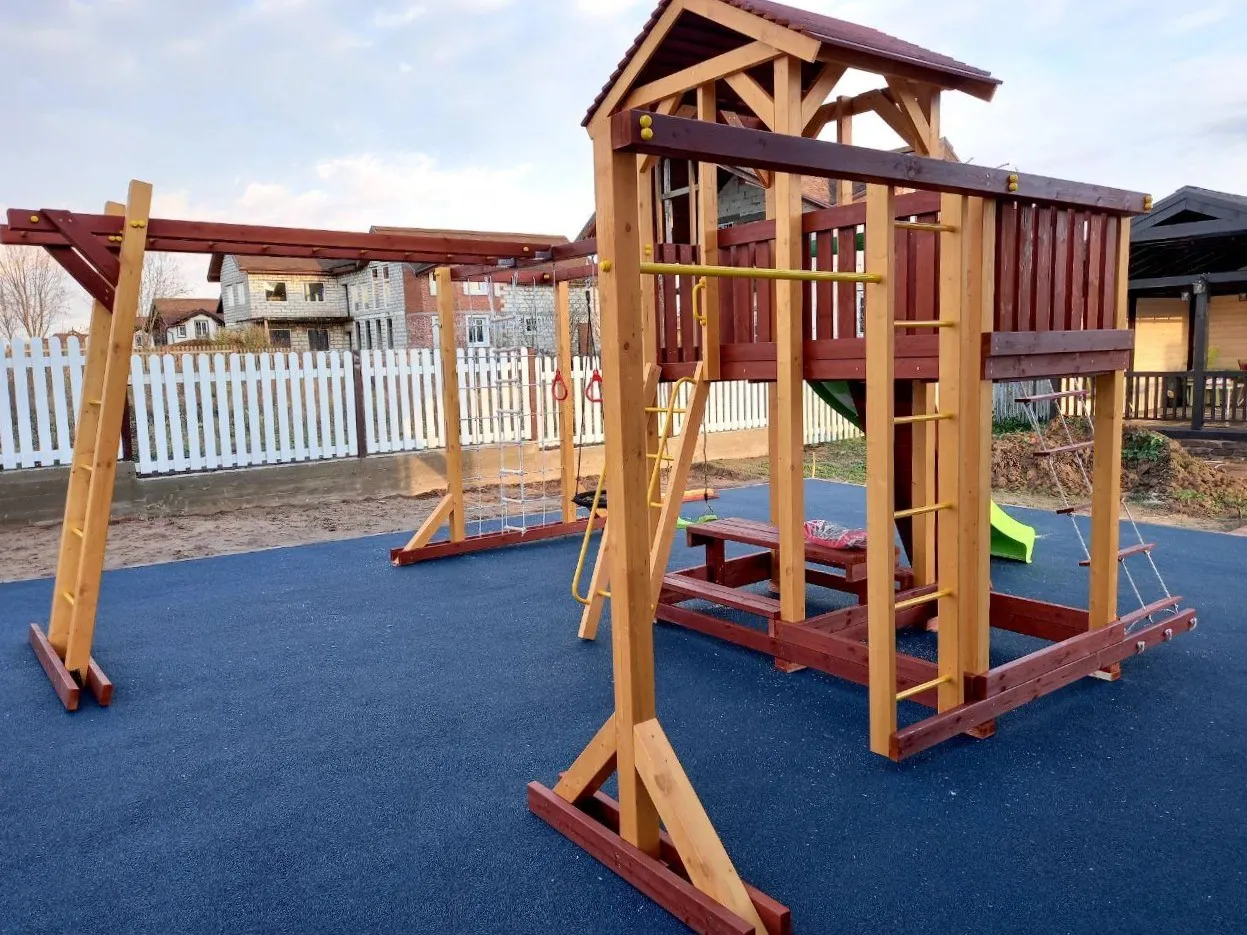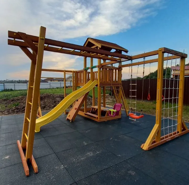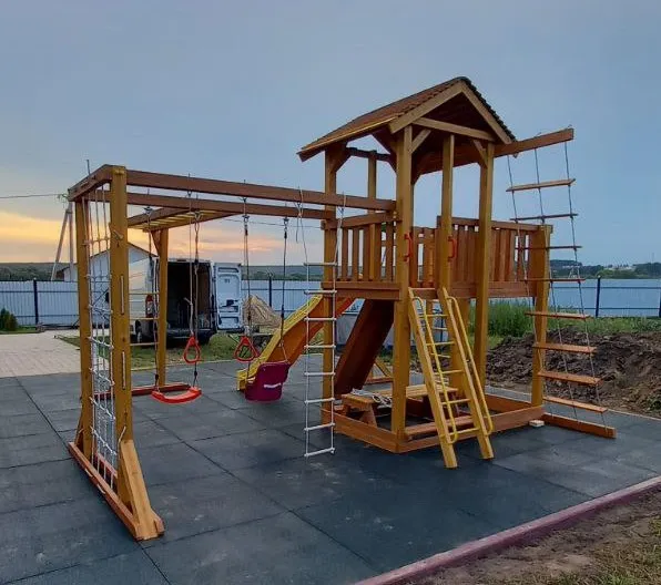 Каждый элемент этой площадки создан с максимальной заботой о безопасности. Все детали тщательно шлифованы, а острые углы скруглены, чтобы маленькие волшебники не повредили свои руки и ноги, а яркие пластиковые заглушки на крепежах защищают от травм, словно магический щит.