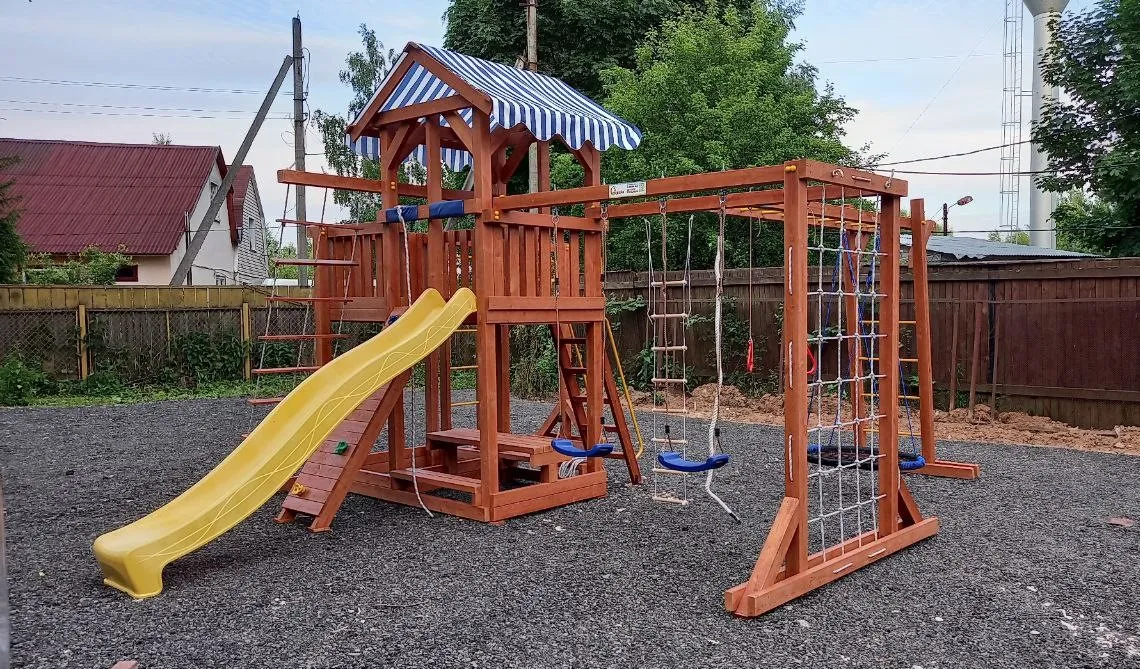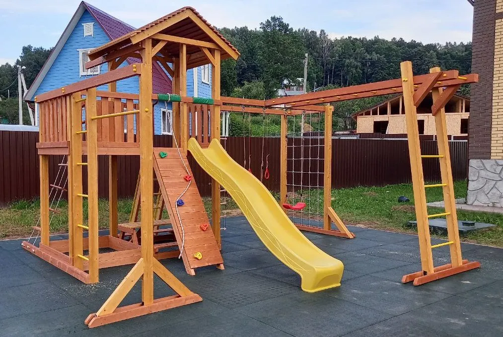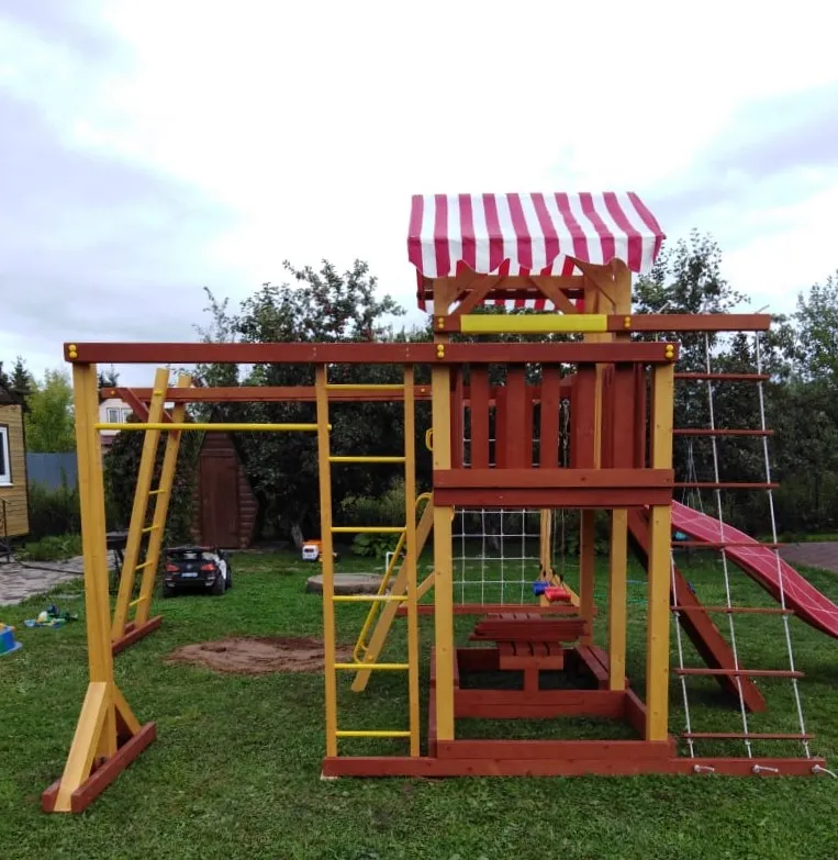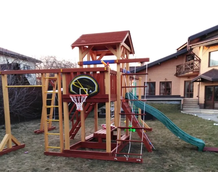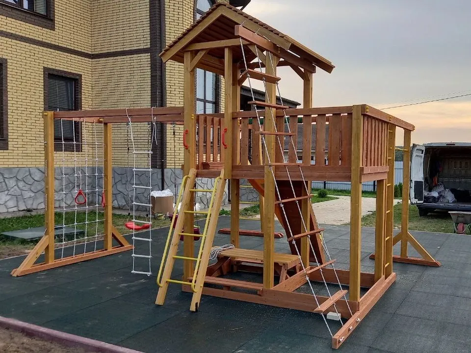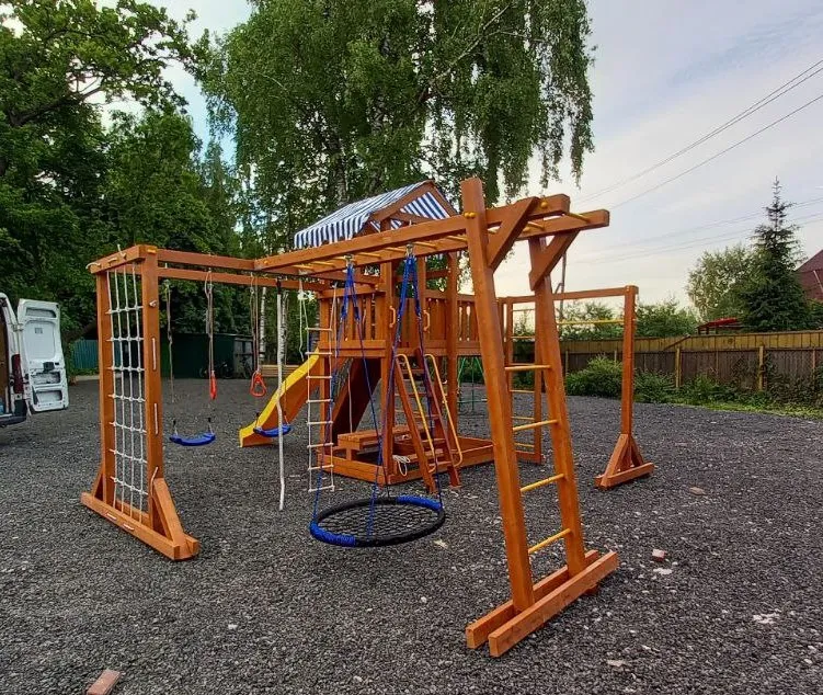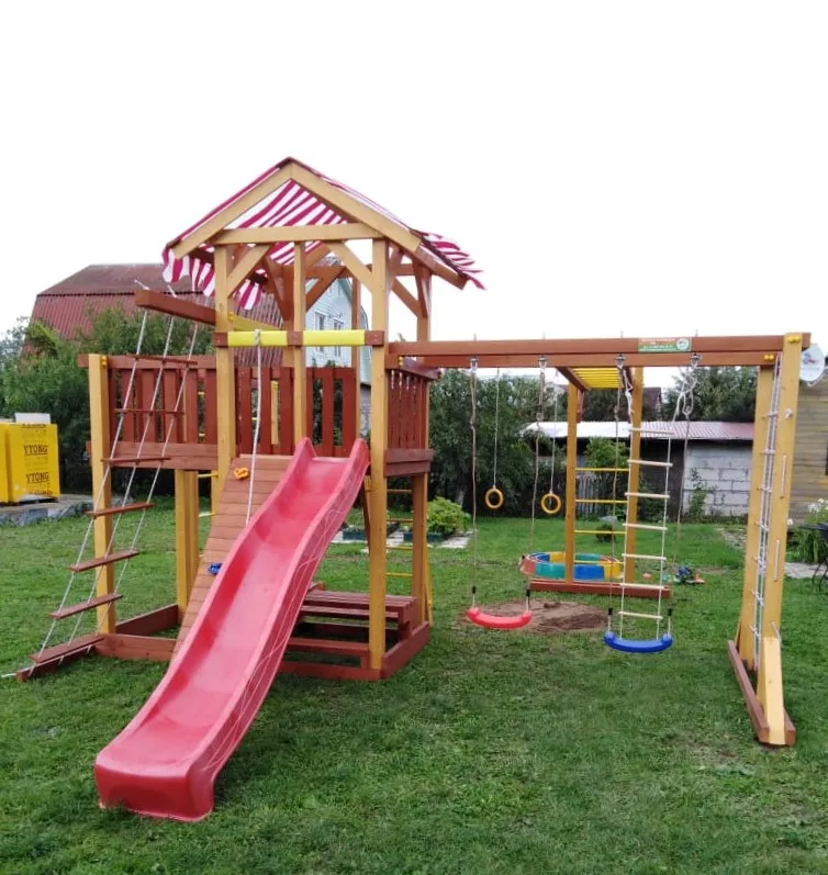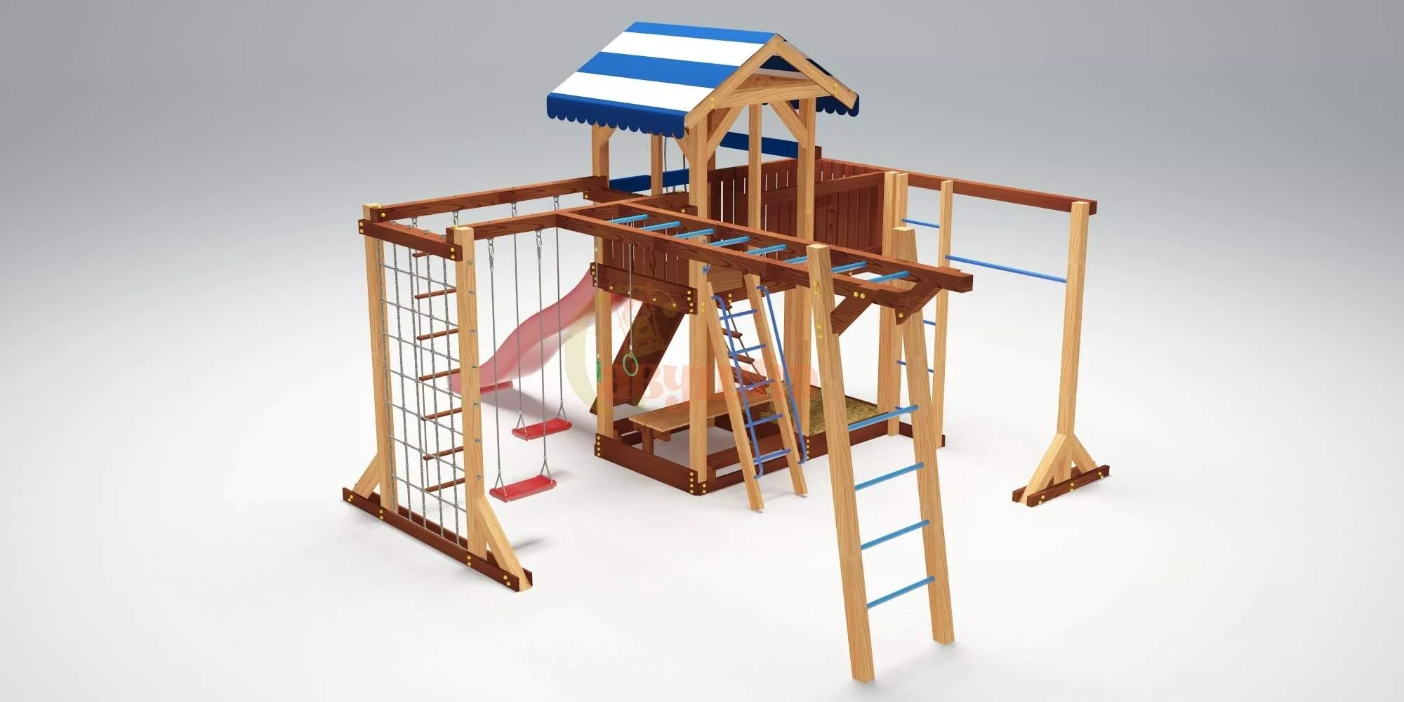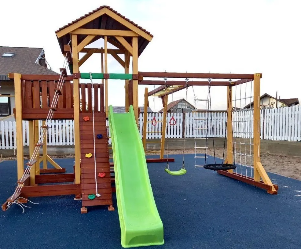Каждый элемент этой площадки создан с максимальной заботой о безопасности. Все детали тщательно шлифованы, а острые углы скруглены, чтобы маленькие волшебники не повредили свои руки и ноги, а яркие пластиковые заглушки на крепежах защищают от травм, словно магический щит.
