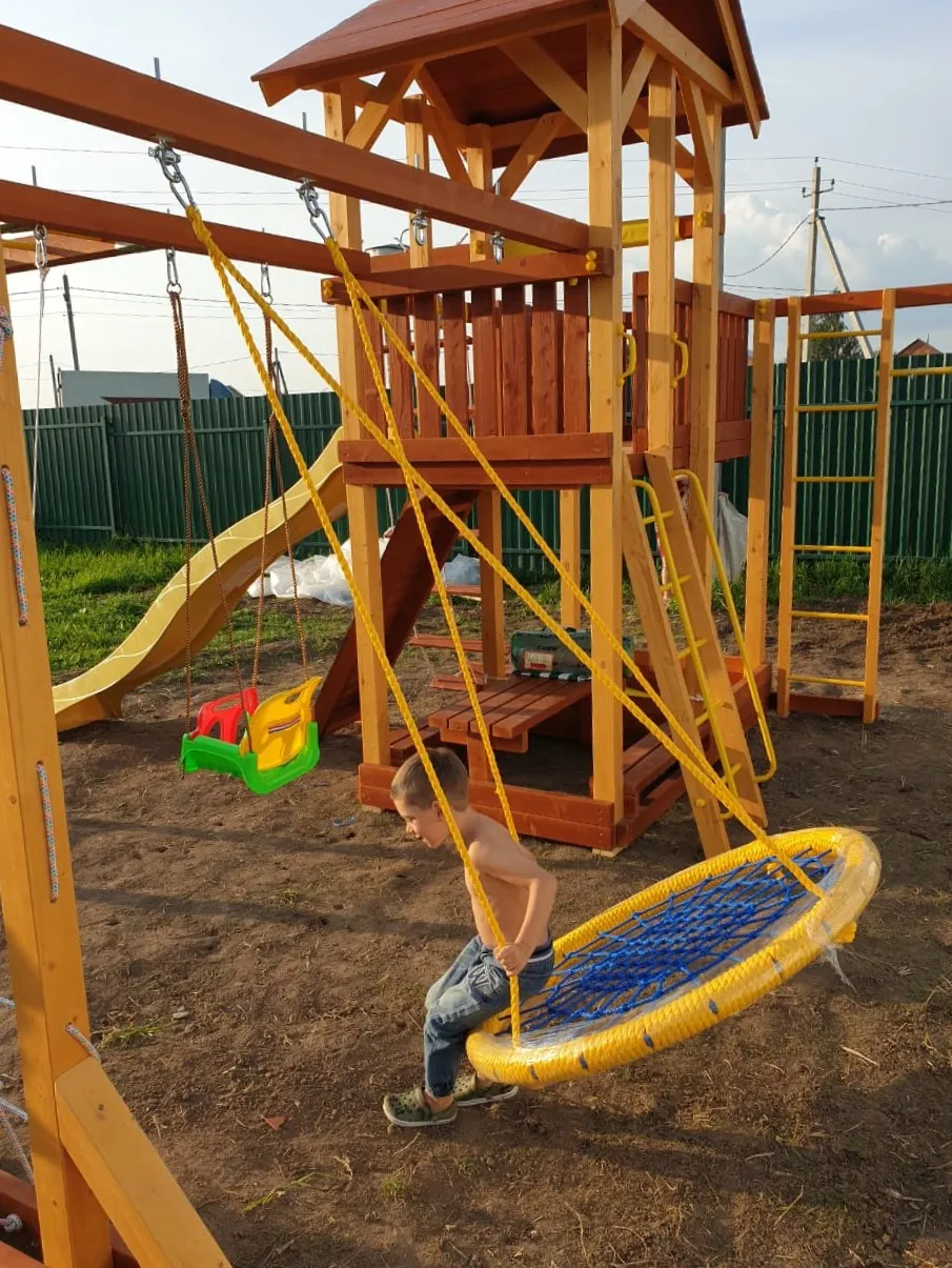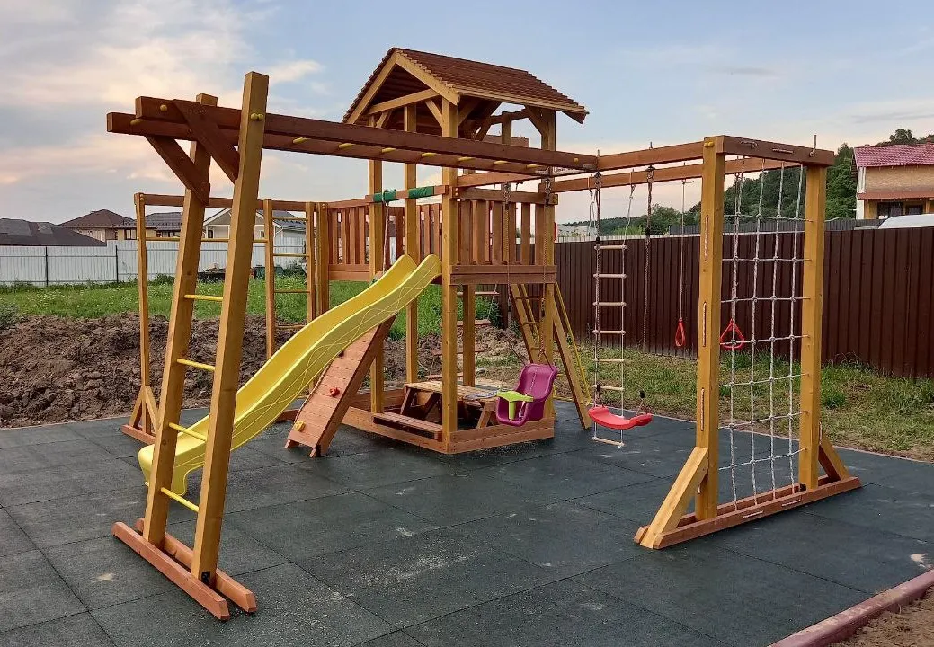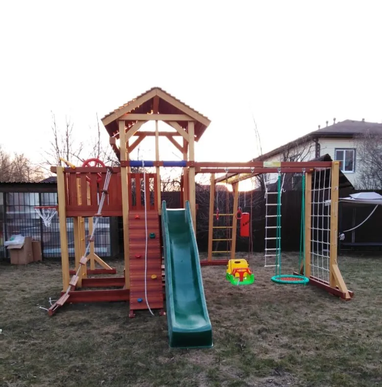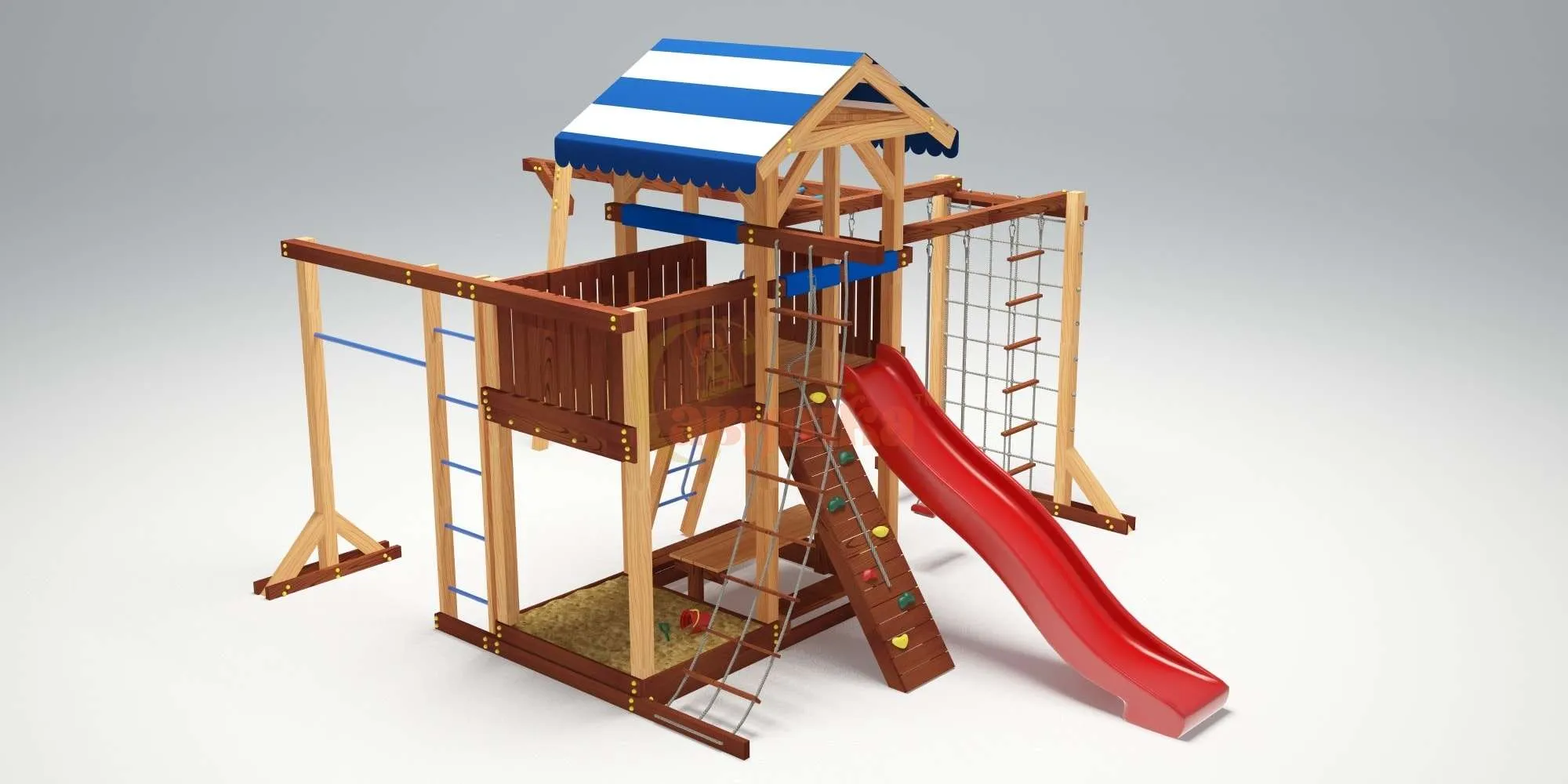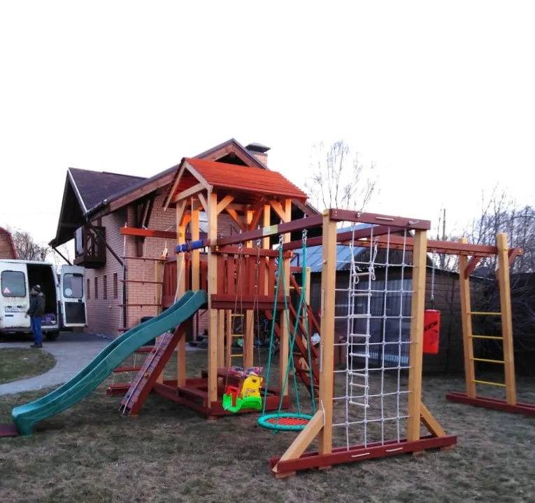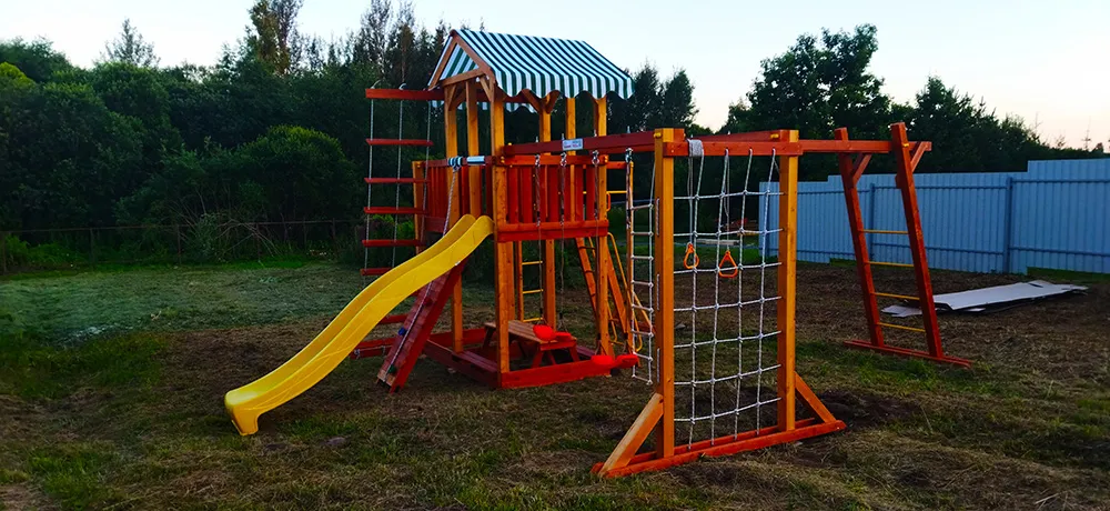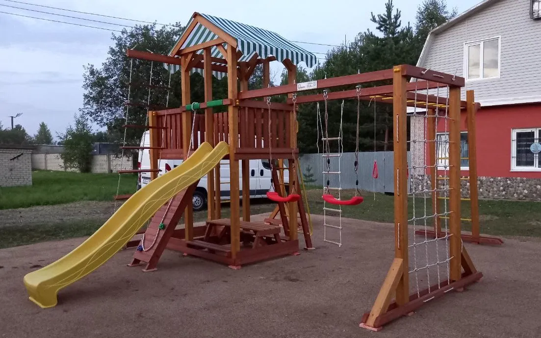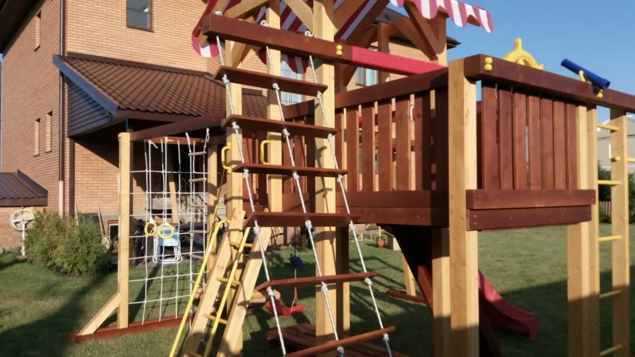 Каждый элемент этой площадки создан с максимальной заботой о безопасности. Все детали тщательно шлифованы, а острые углы скруглены, чтобы маленькие волшебники не повредили свои руки и ноги, а яркие пластиковые заглушки на крепежах защищают от травм, словно магический щит.