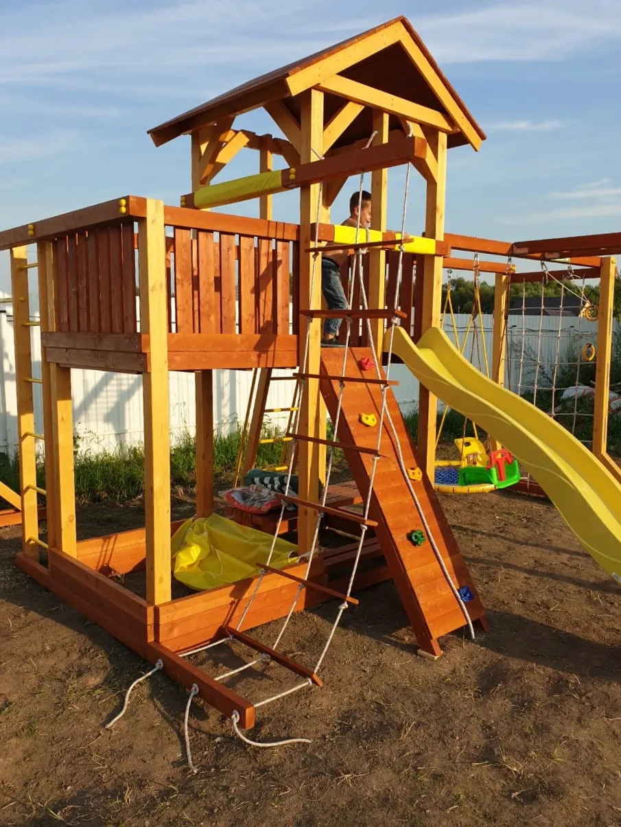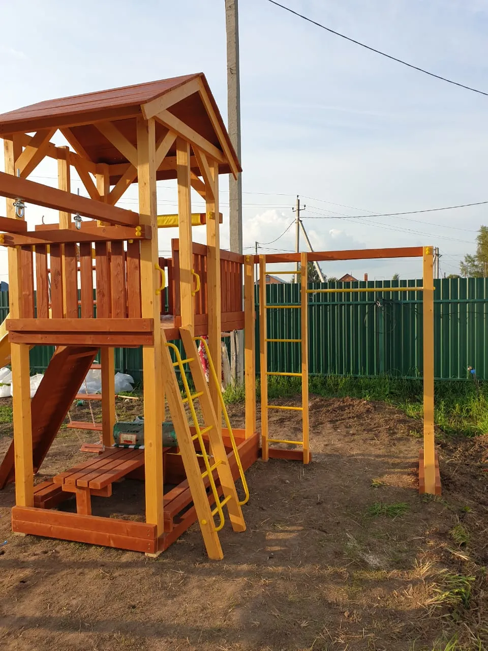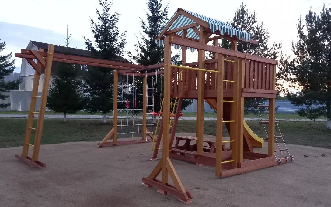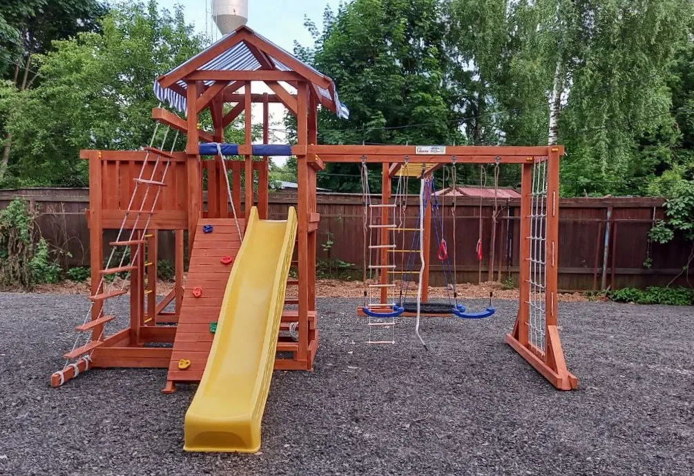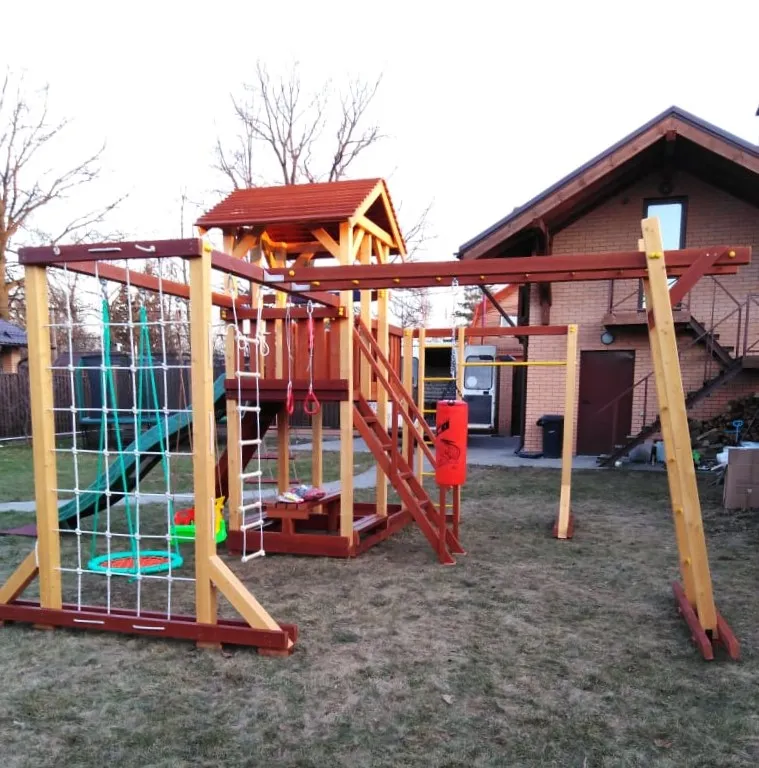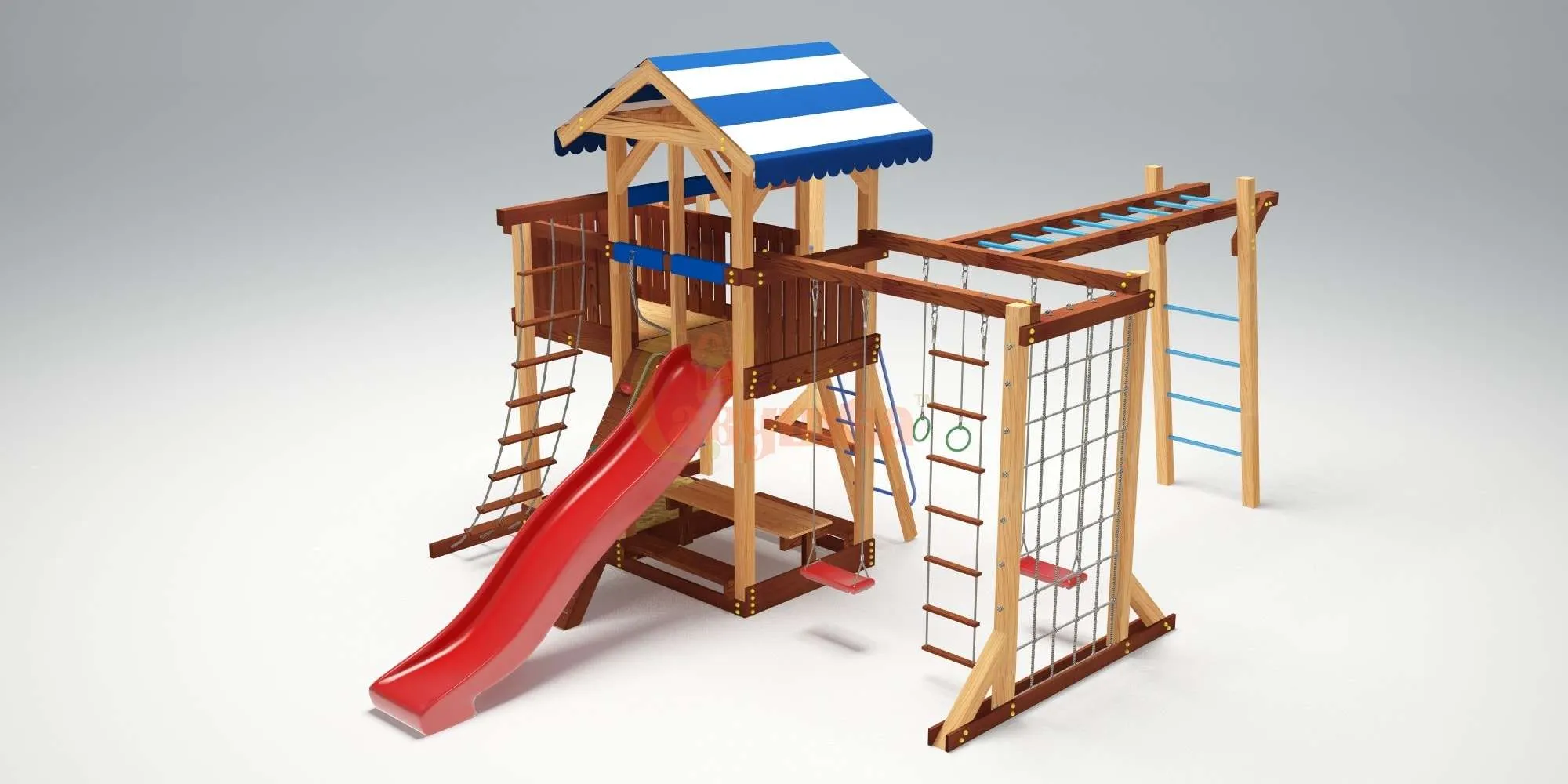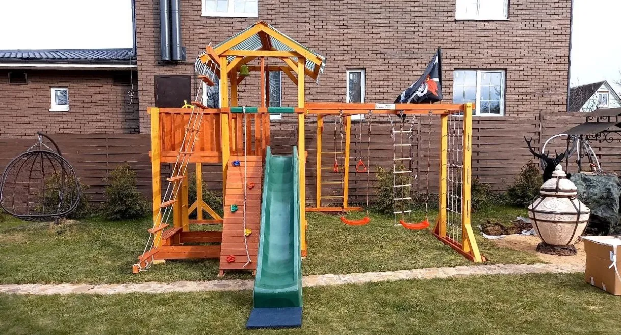 Каждый элемент этой площадки создан с максимальной заботой о безопасности. Все детали тщательно шлифованы, а острые углы скруглены, чтобы маленькие волшебники не повредили свои руки и ноги, а яркие пластиковые заглушки на крепежах защищают от травм, словно магический щит.