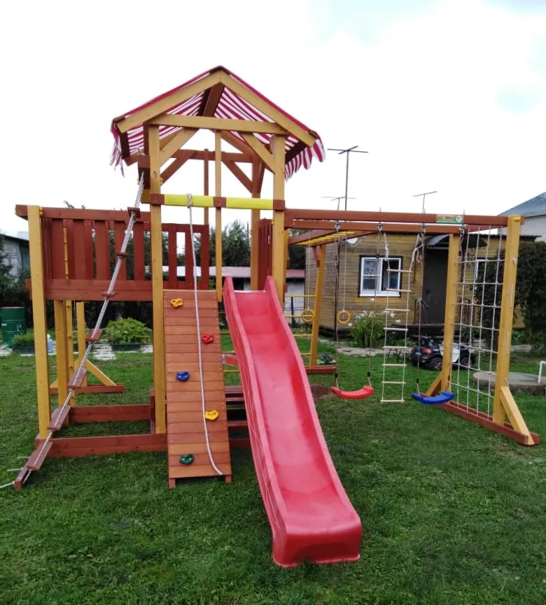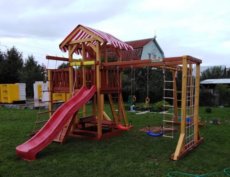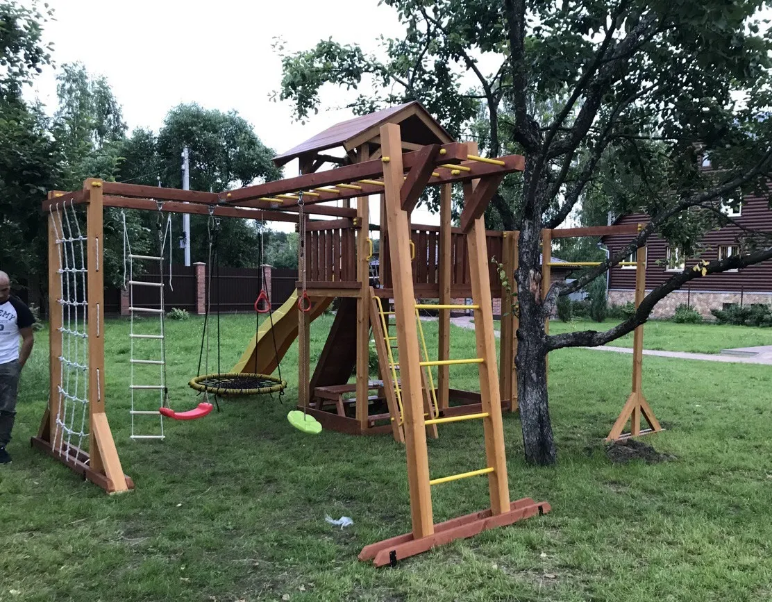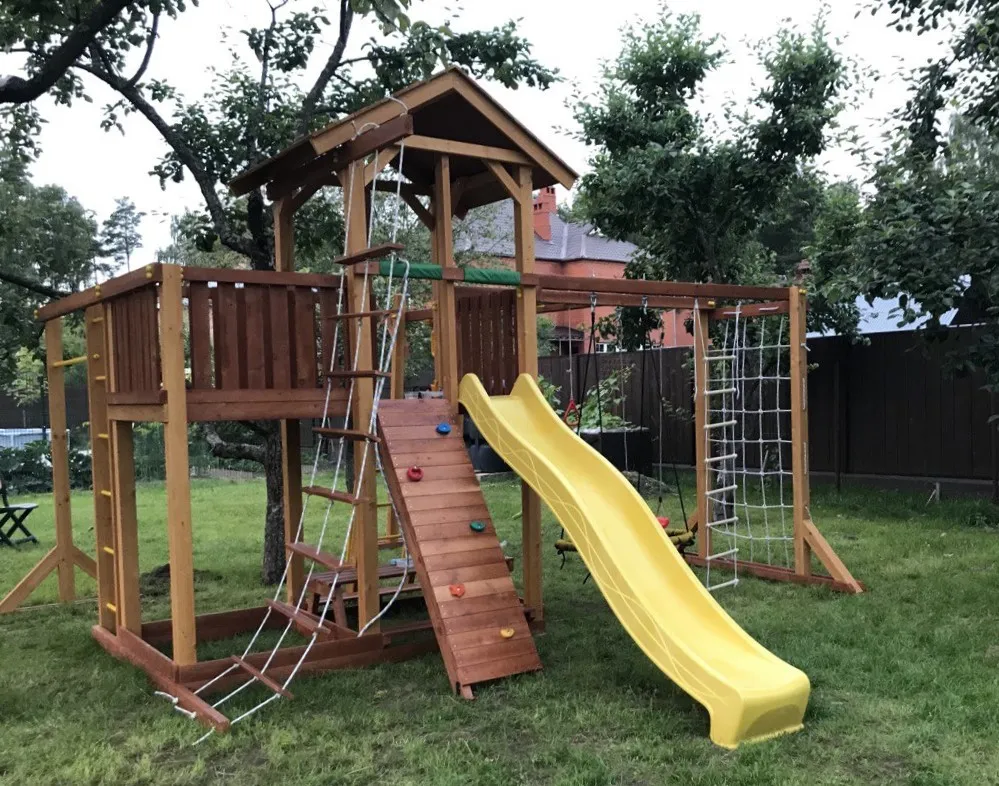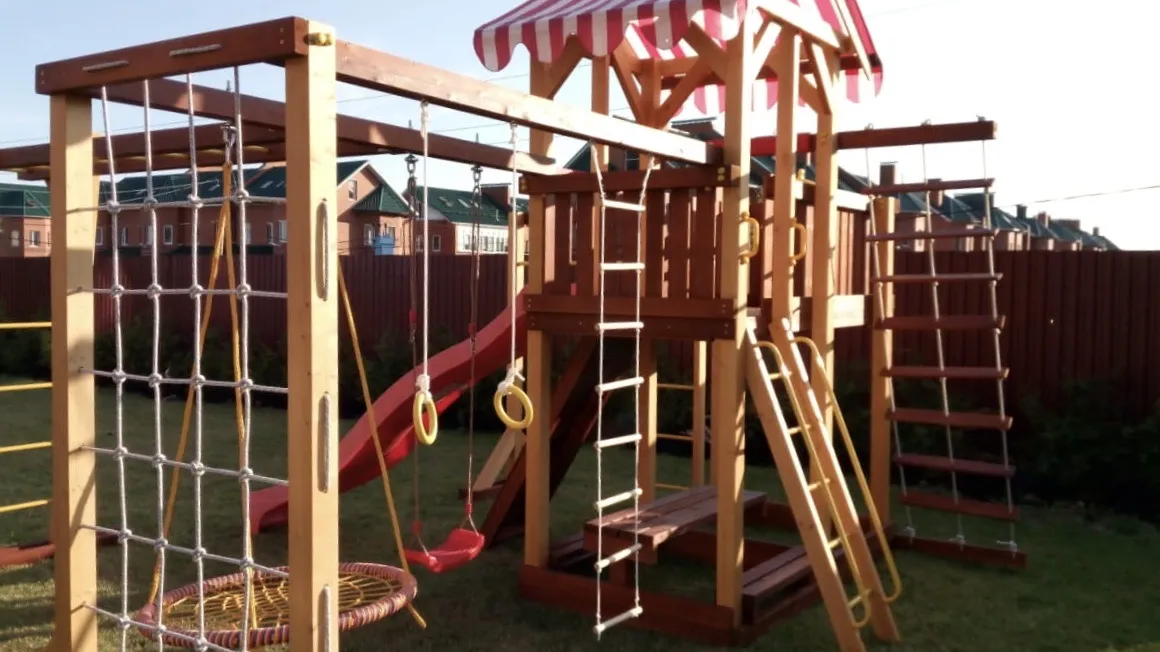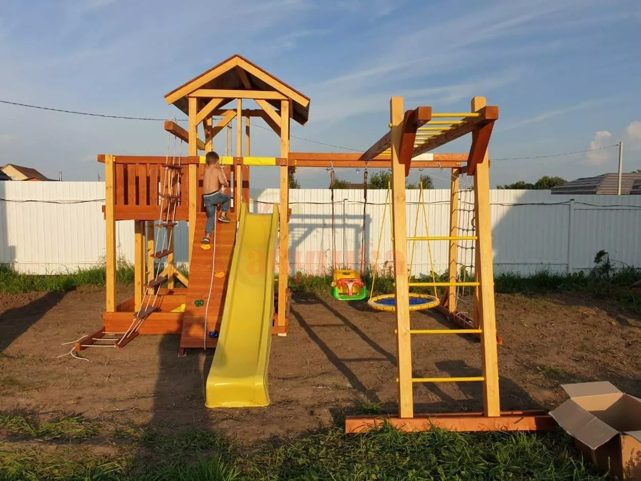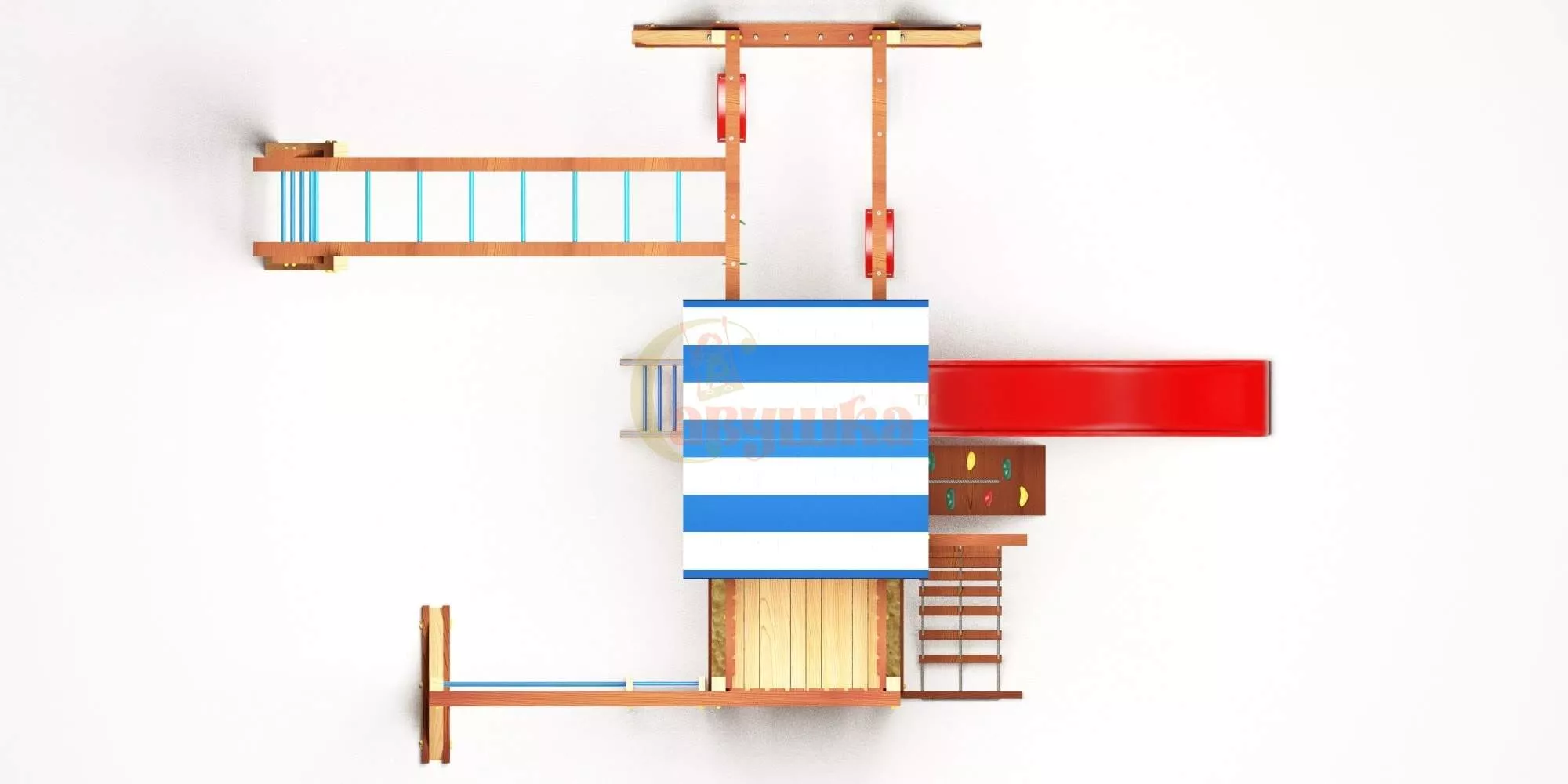 Каждый элемент этой площадки создан с максимальной заботой о безопасности. Все детали тщательно шлифованы, а острые углы скруглены, чтобы маленькие волшебники не повредили свои руки и ноги, а яркие пластиковые заглушки на крепежах защищают от травм, словно магический щит.