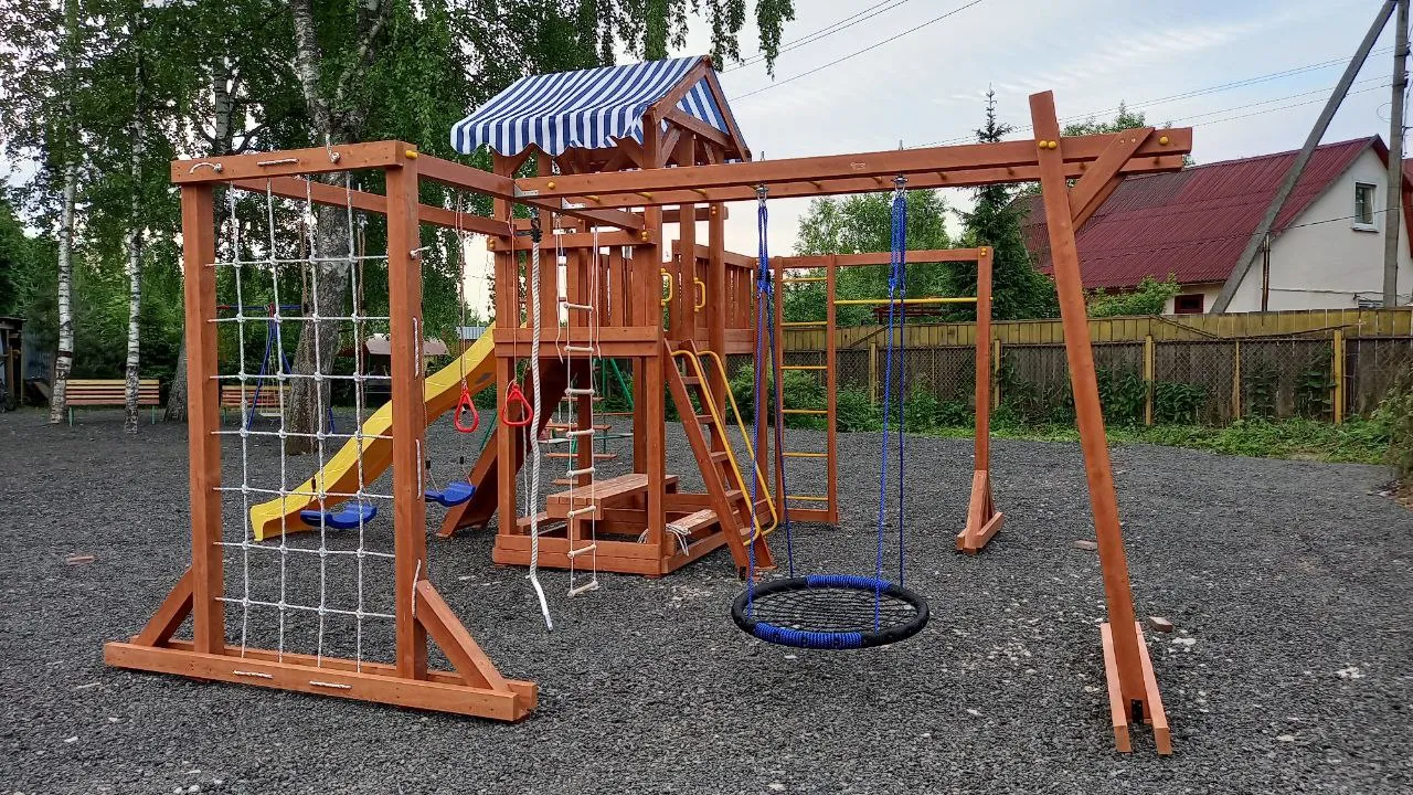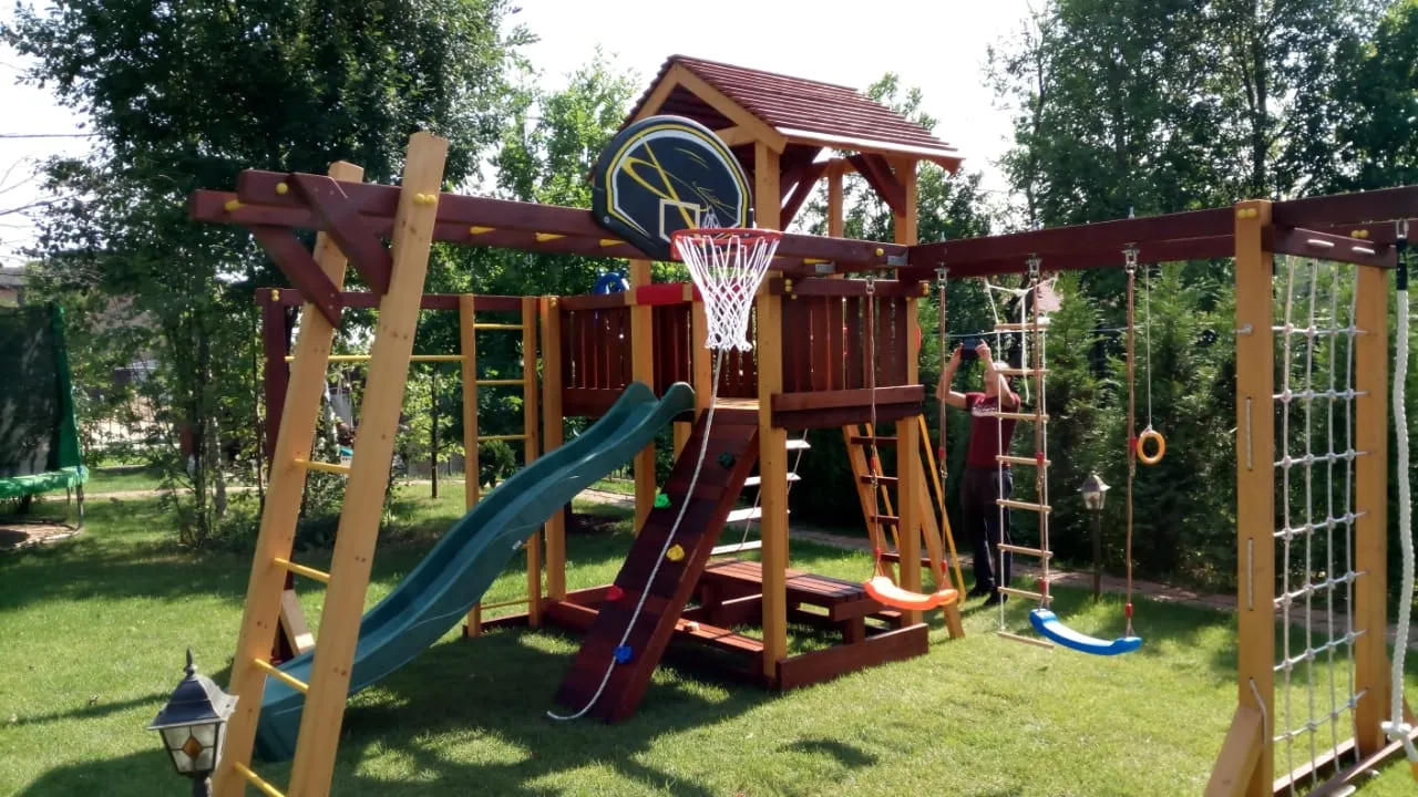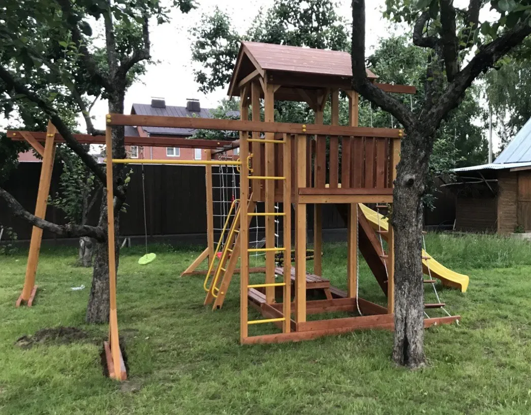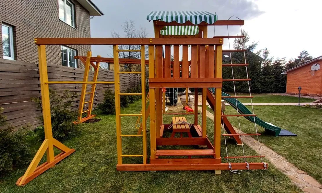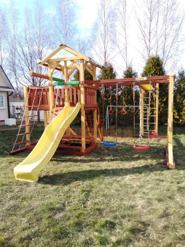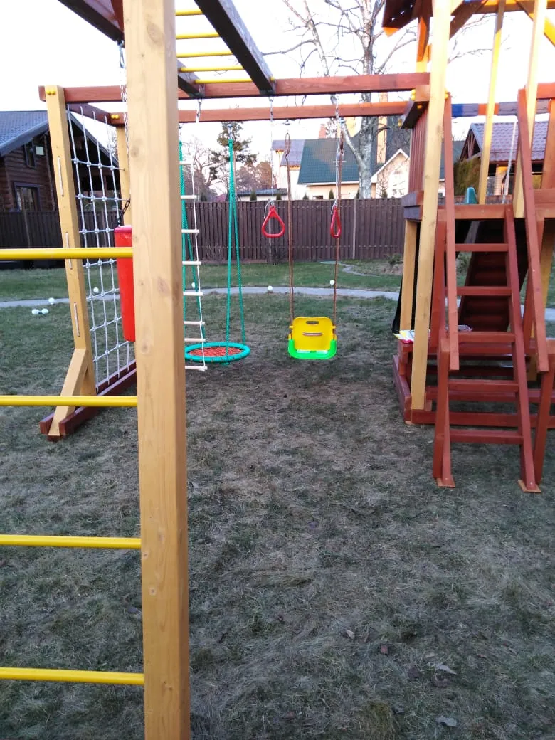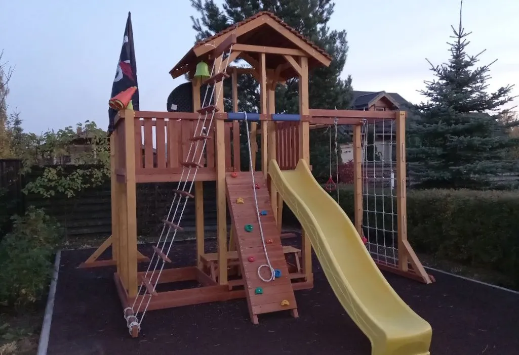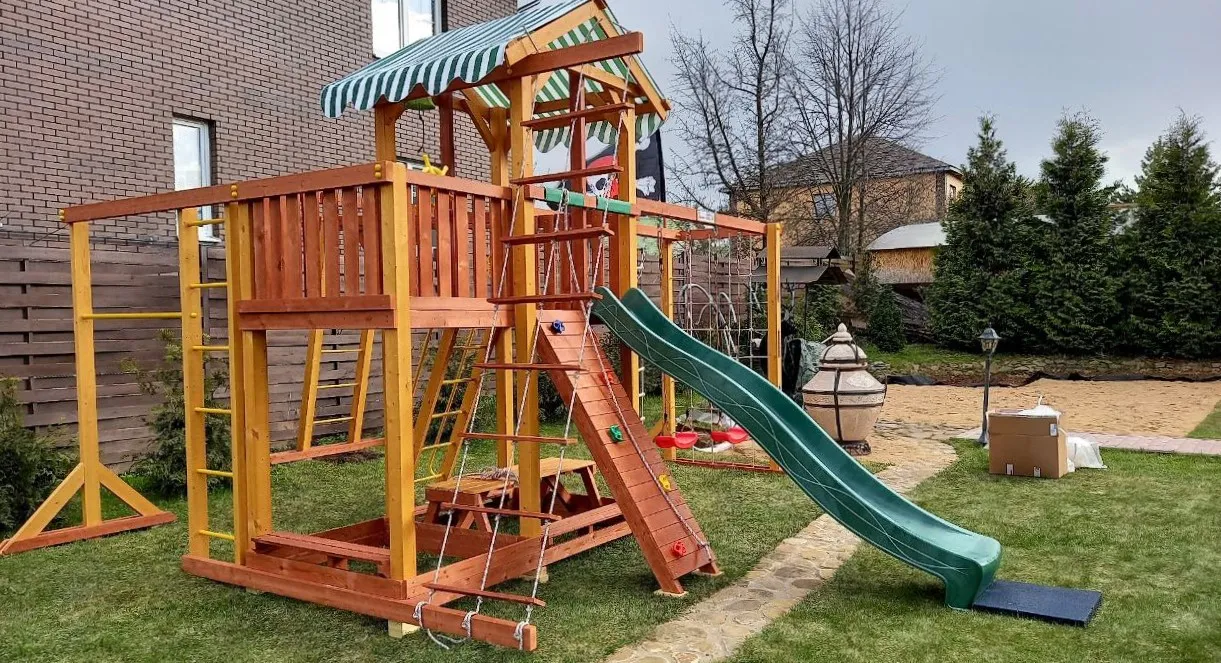 Каждый элемент этой площадки создан с максимальной заботой о безопасности. Все детали тщательно шлифованы, а острые углы скруглены, чтобы маленькие волшебники не повредили свои руки и ноги, а яркие пластиковые заглушки на крепежах защищают от травм, словно магический щит.