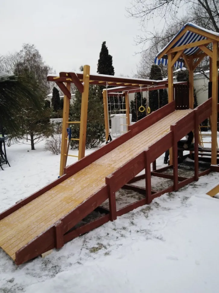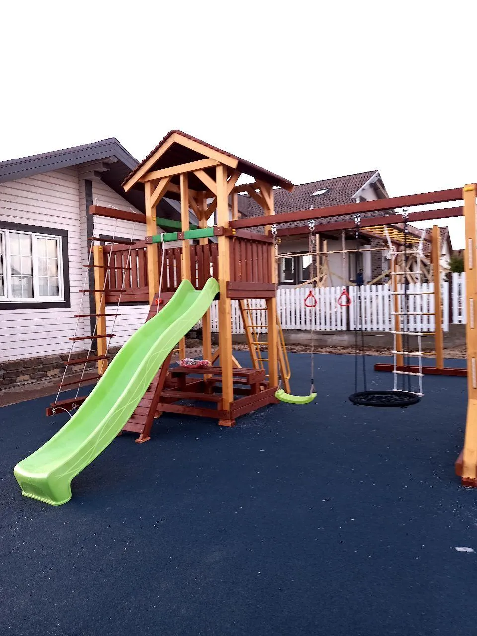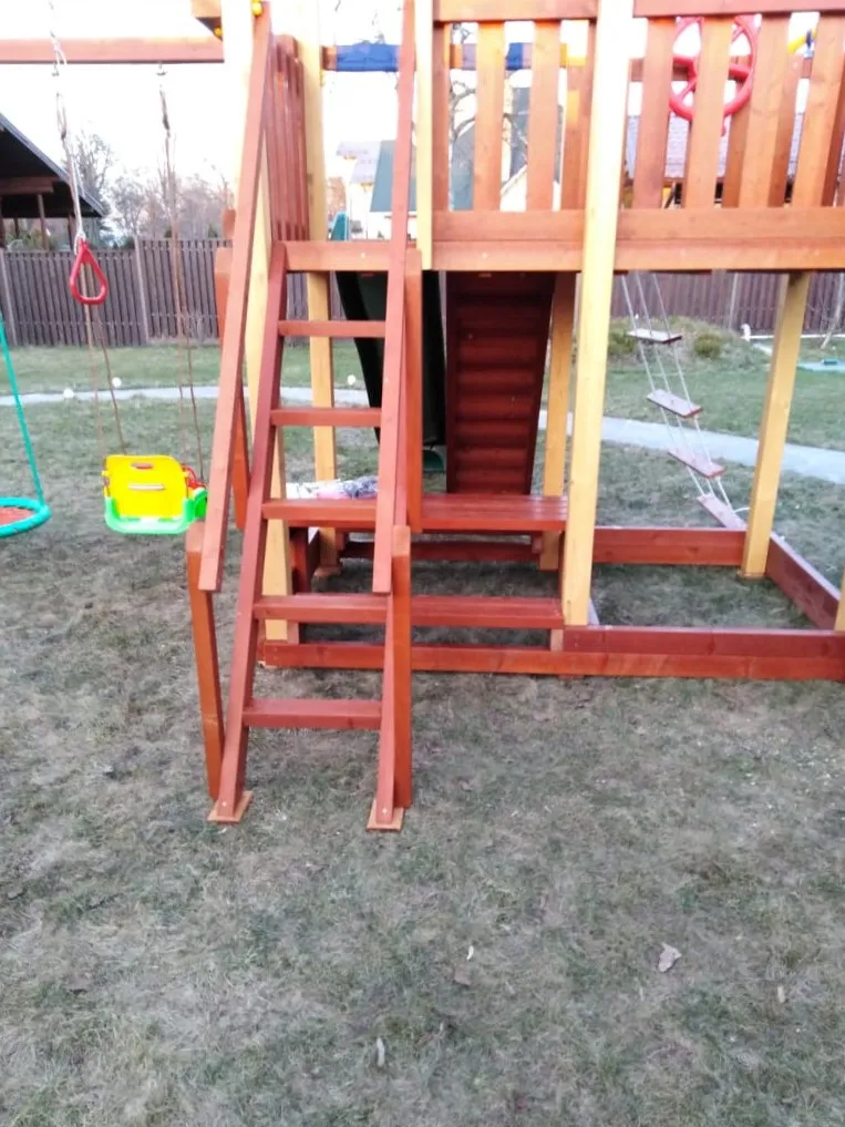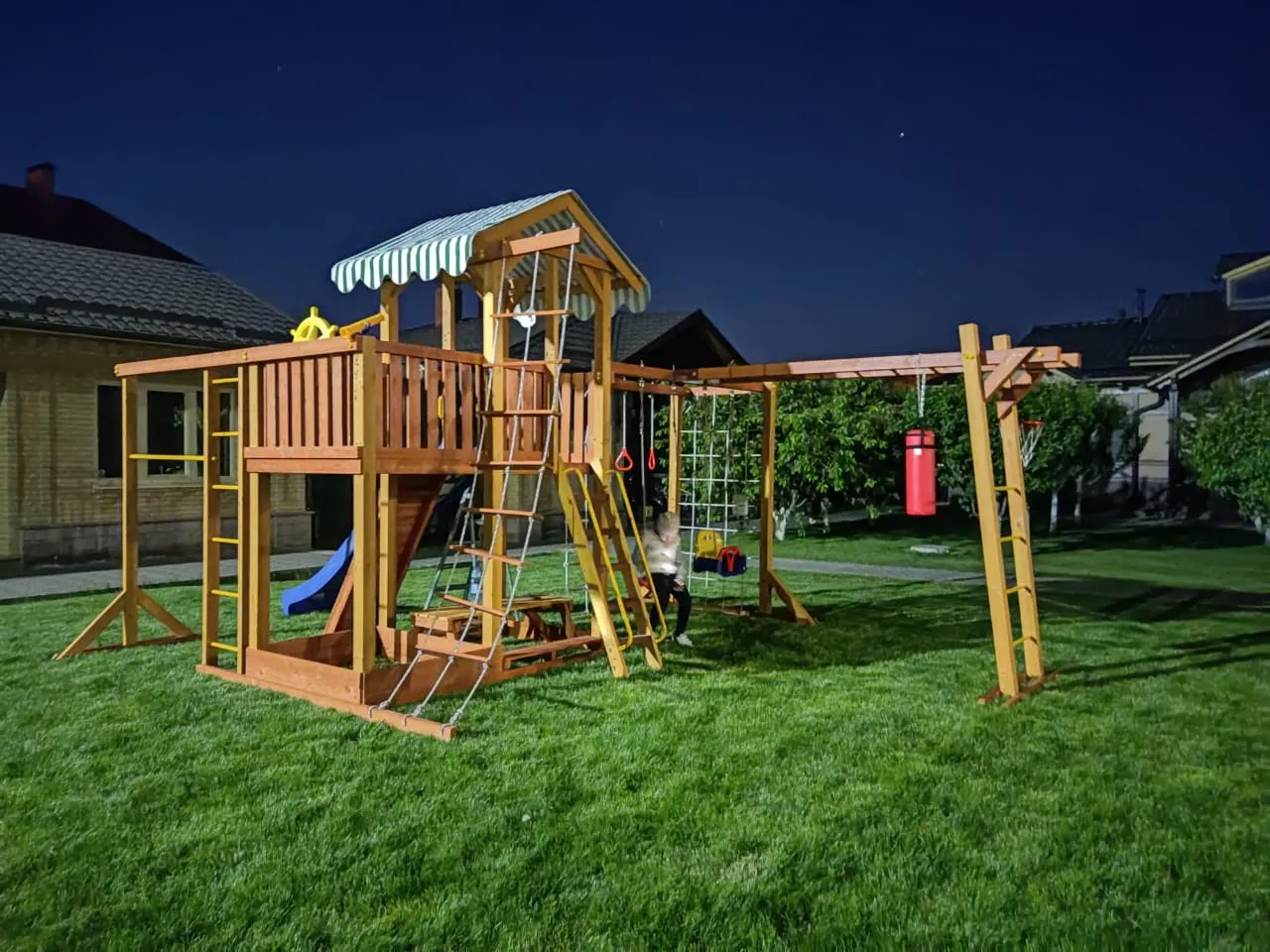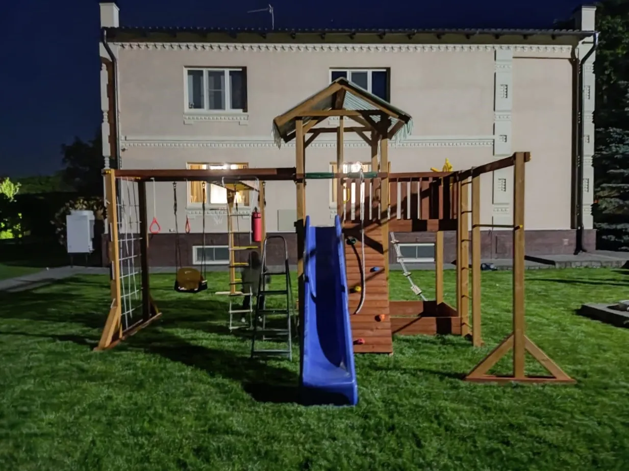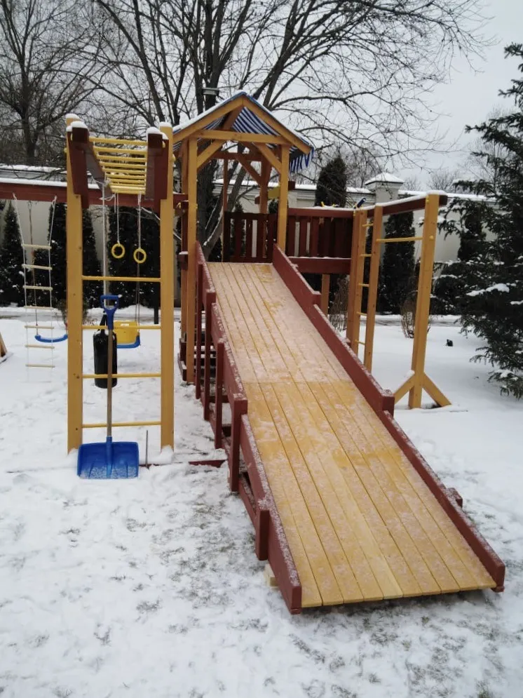 Каждый элемент этой площадки создан с максимальной заботой о безопасности. Все детали тщательно шлифованы, а острые углы скруглены, чтобы маленькие волшебники не повредили свои руки и ноги, а яркие пластиковые заглушки на крепежах защищают от травм, словно магический щит.