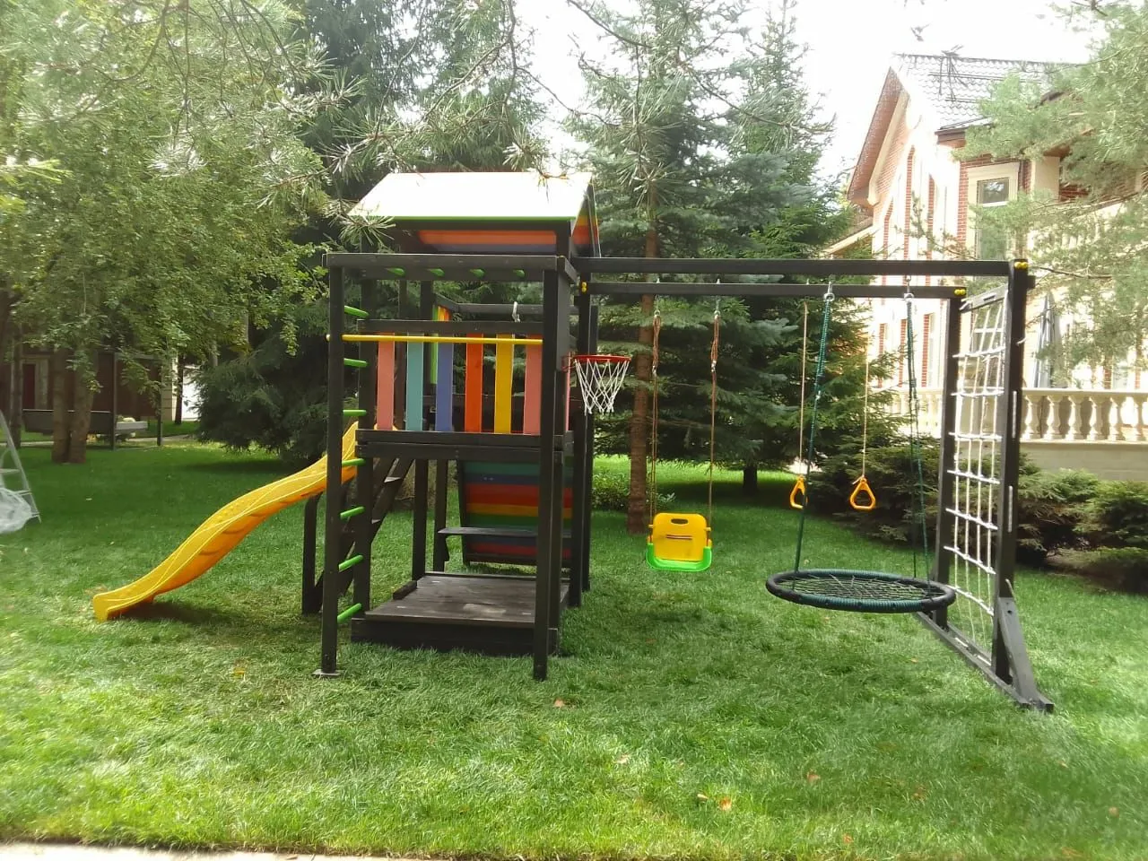 Детская площадка Савушка 4 (BLACK) — это универсальный игровой комплекс, созданный для активных и развивающих игр на свежем воздухе. Современный дизайн и продуманная конструкция обеспечивают максимальную функциональность, а разнообразие игровых и спортивных элементов способствует физическому развитию ребенка, улучшает координацию, ловкость и выносливость. Площадка сочетает зоны для лазания, качания, гимнастики и командных игр, создавая безопасное пространство для веселого и полезного досуга. Надежные материалы и прочная конструкция гарантируют долговечность и устойчивость даже при высокой нагрузке.Детские площадки Савушка Black/Black Edition