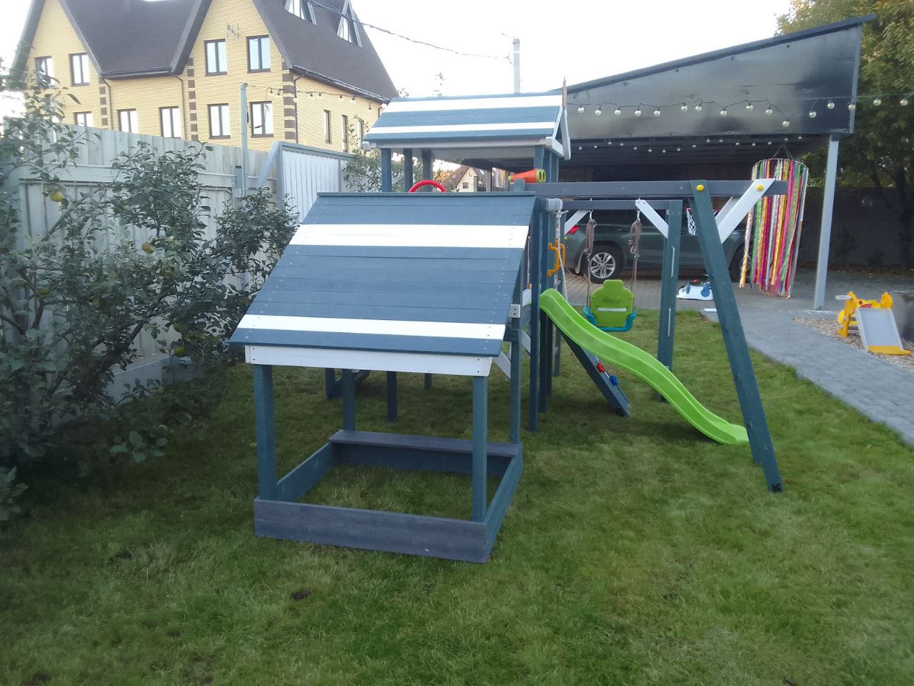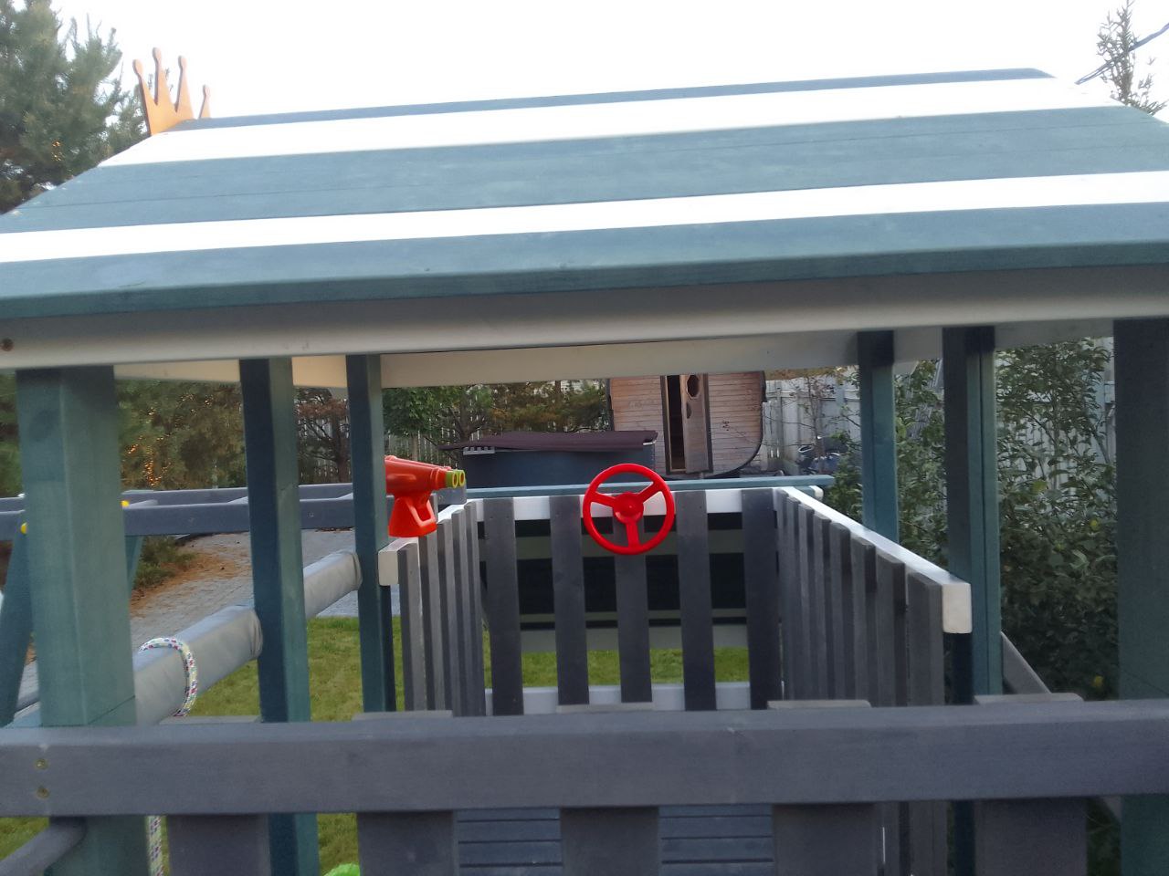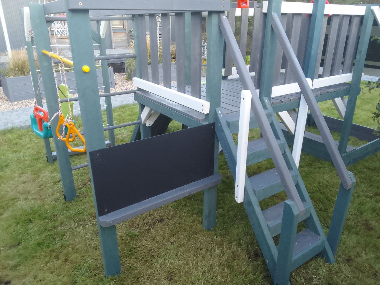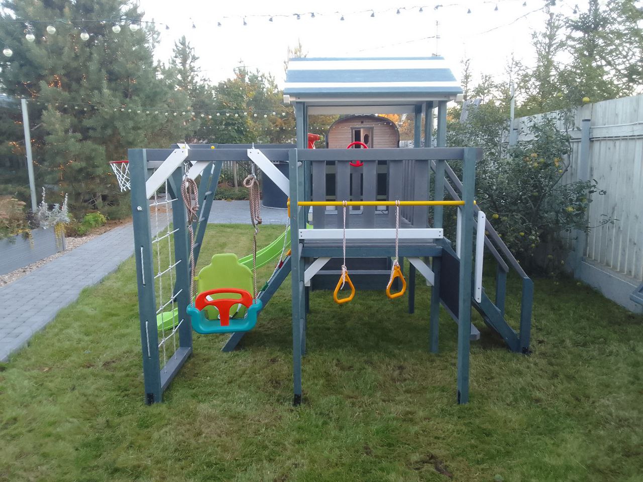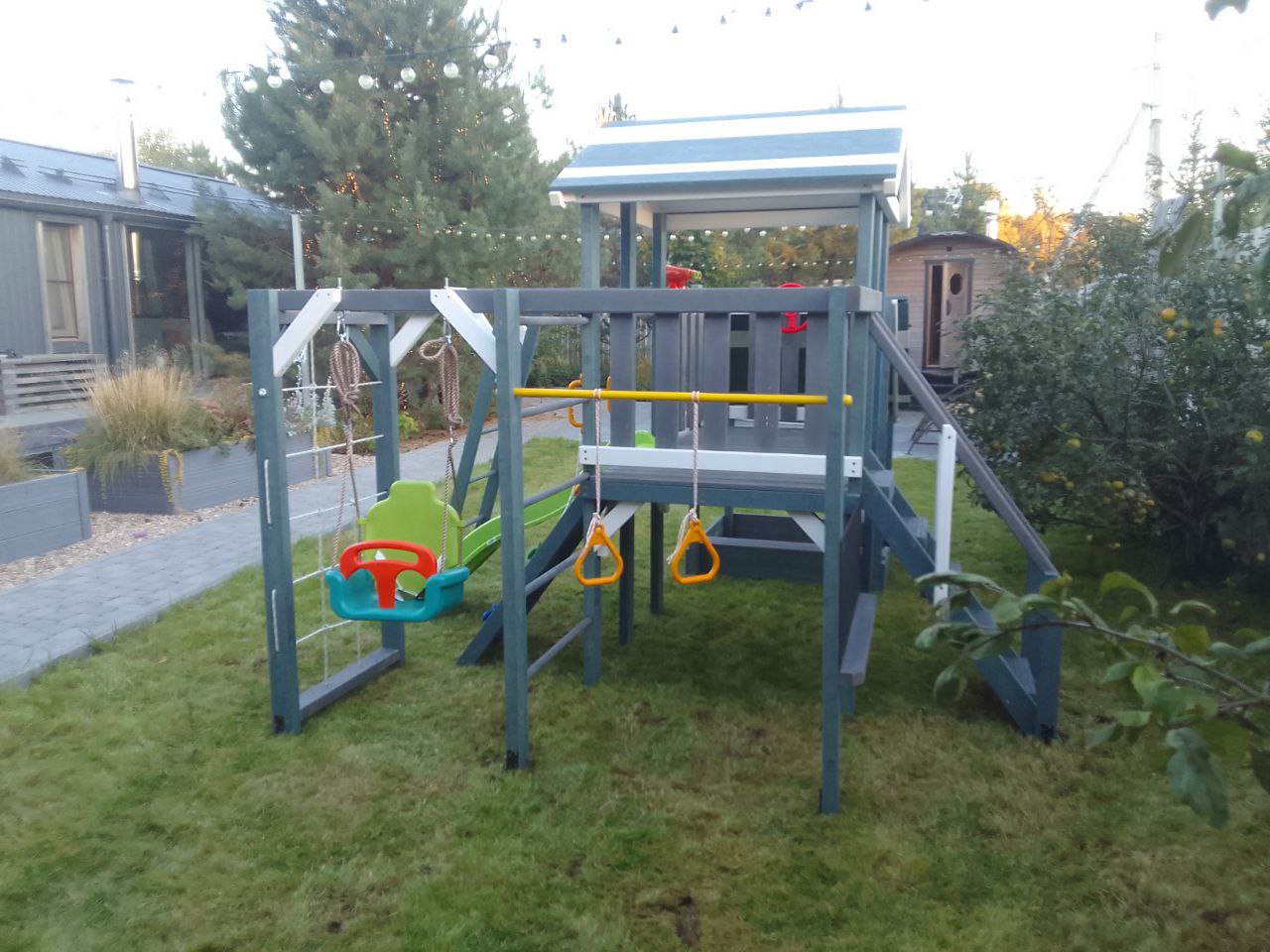 - Игровой домик с крышей на верхнем уровне (высота платформы 900 мм)