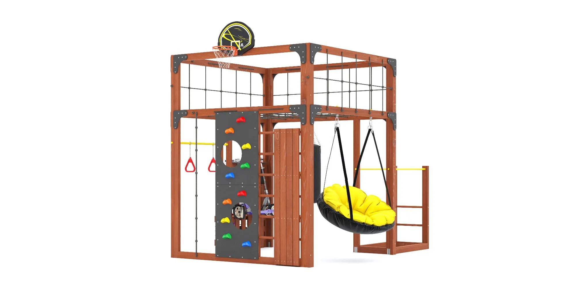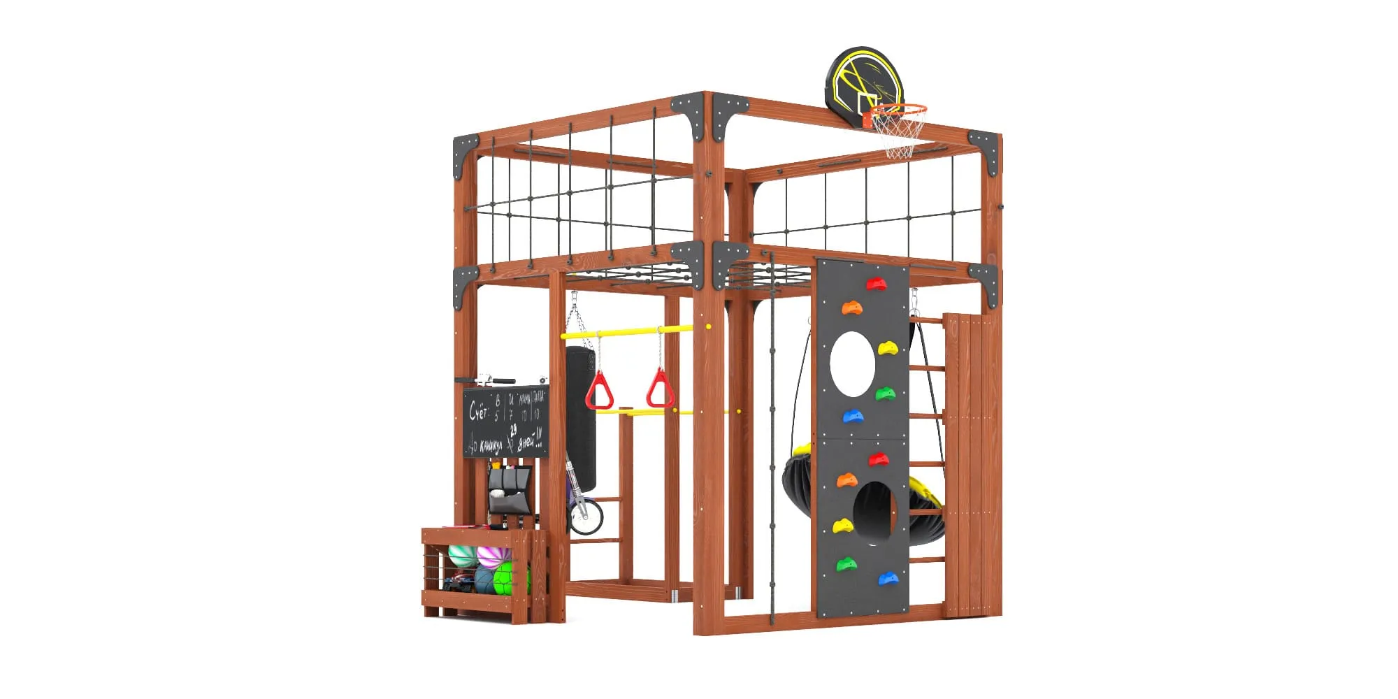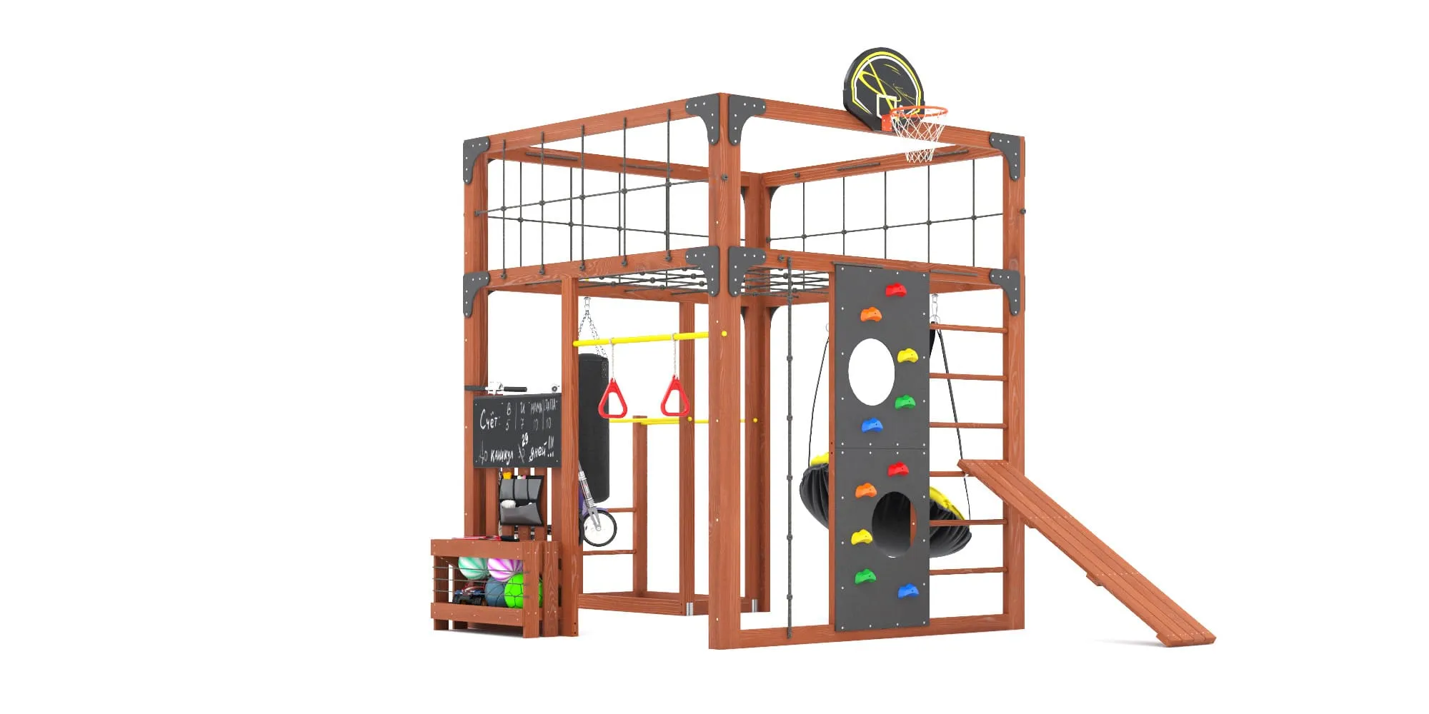 Представляем детскую игровую площадку Савушка КУБ-1 в цвете Махагон— инновационный комплекс, объединяющий спорт, игру и отдых для всей семьи. Этот многофункциональный комплекс создан для гармоничного физического развития детей и активного семейного досуга.