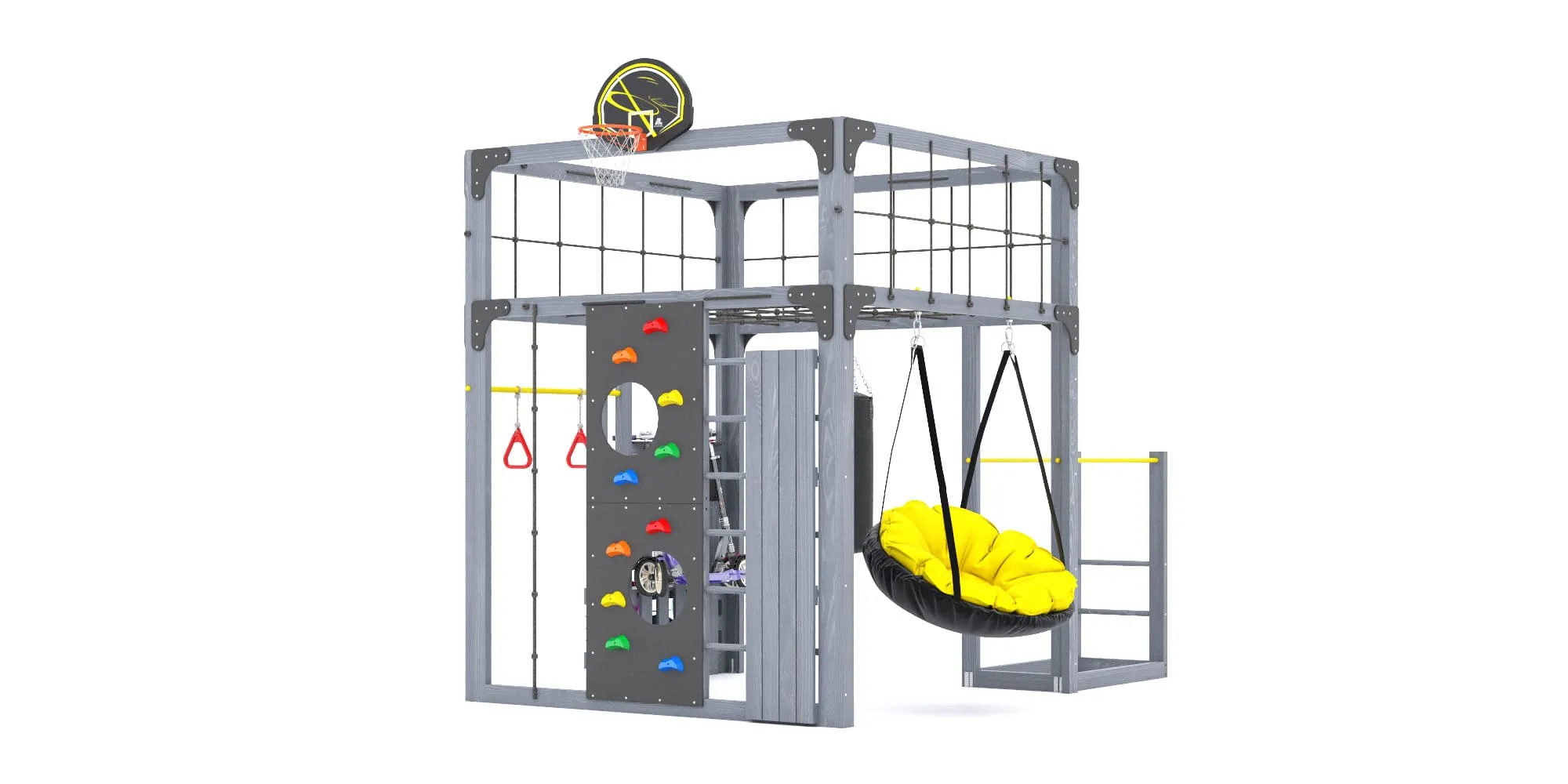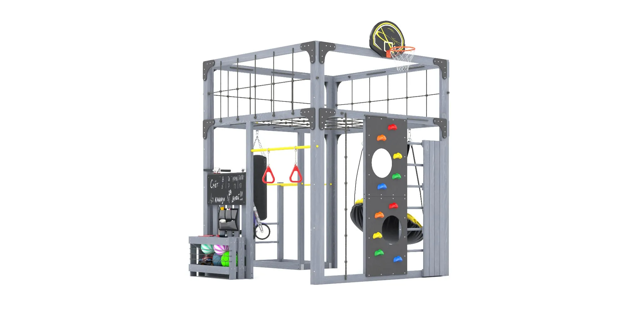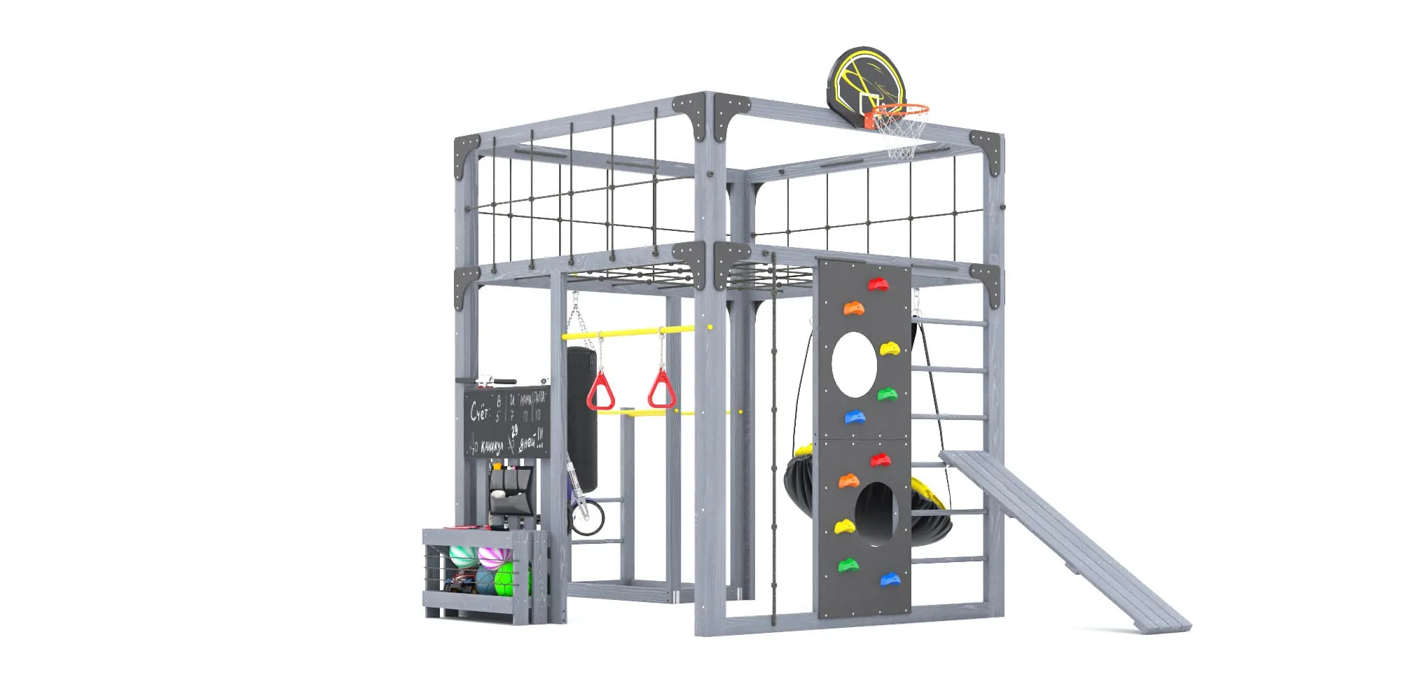 Представляем детскую игровую площадку Савушка КУБ-1 в цвете Серый— инновационный комплекс, объединяющий спорт, игру и отдых для всей семьи. Этот многофункциональный комплекс создан для гармоничного физического развития детей и активного семейного досуга.