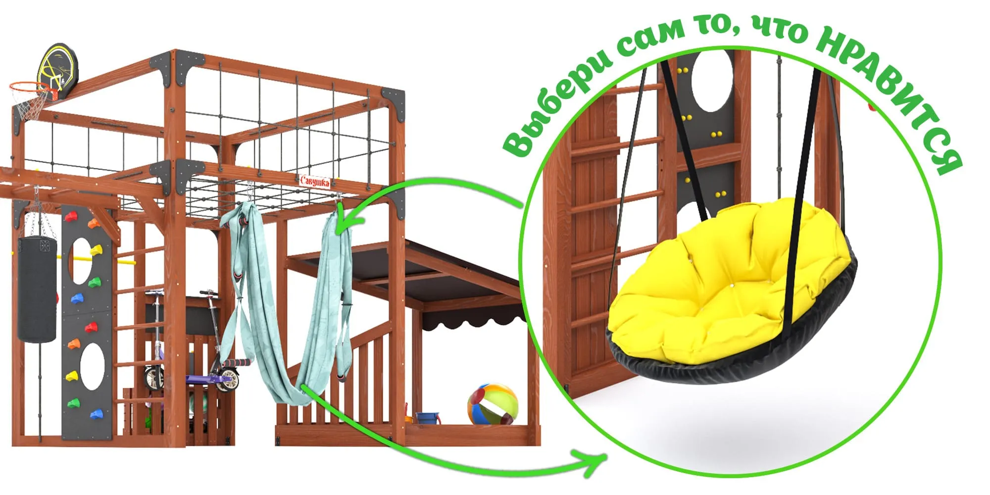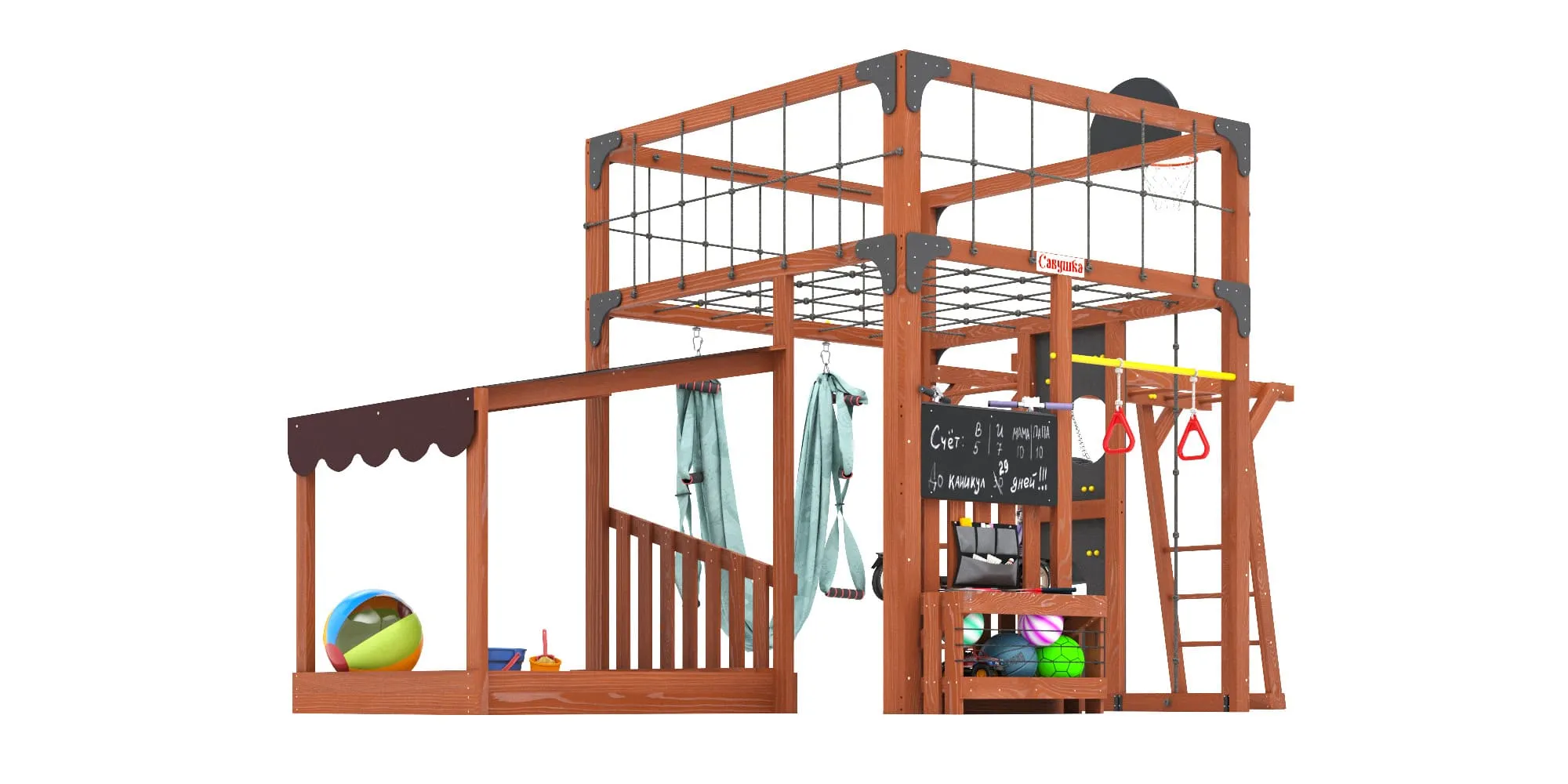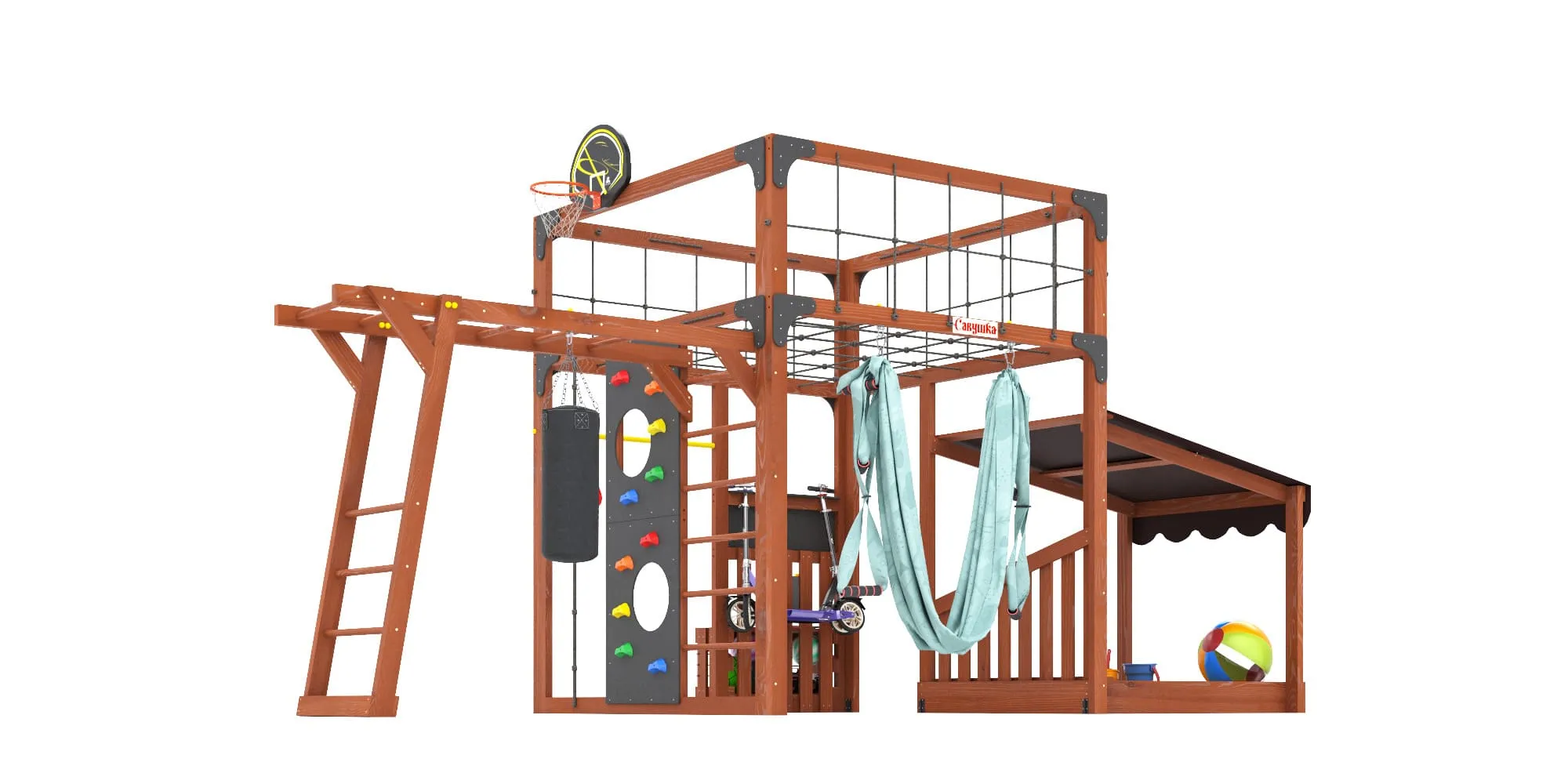 Детская площадка Савушка КУБ-4 (Махагон) с гамаком для йоги — безопасный и функциональный комплекс для активного детства
