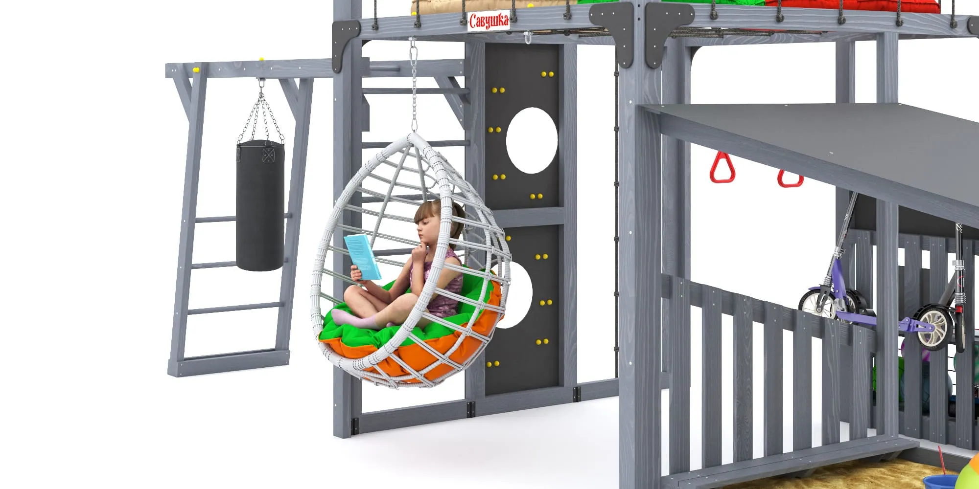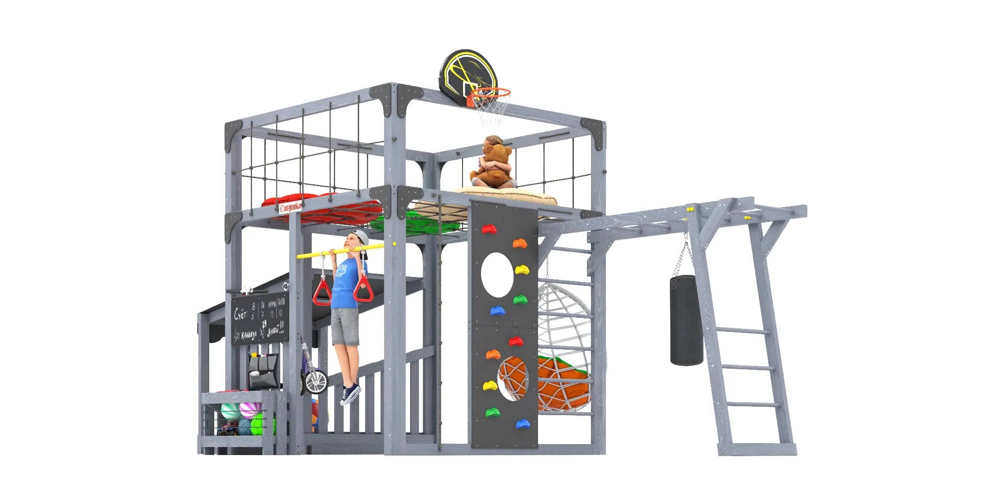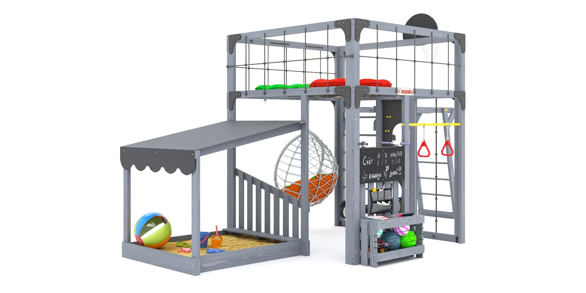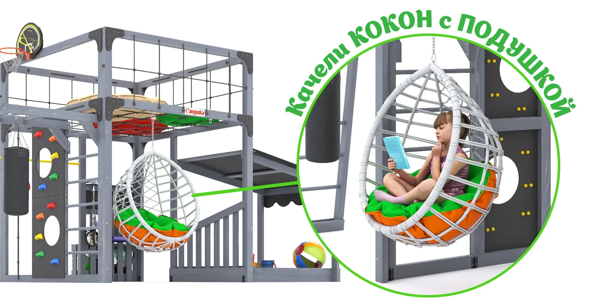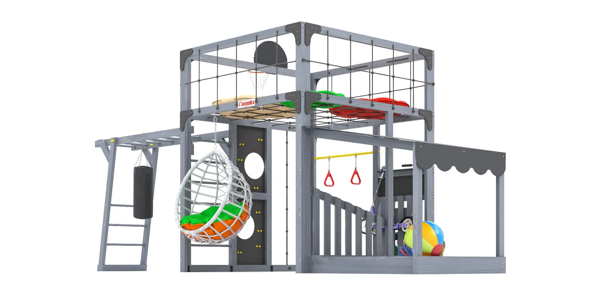 Детская площадка Савушка КУБ-4 (Серый) подушками и коконом — безопасный и функциональный комплекс для активного детства