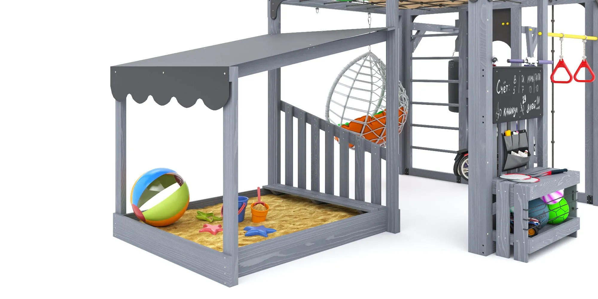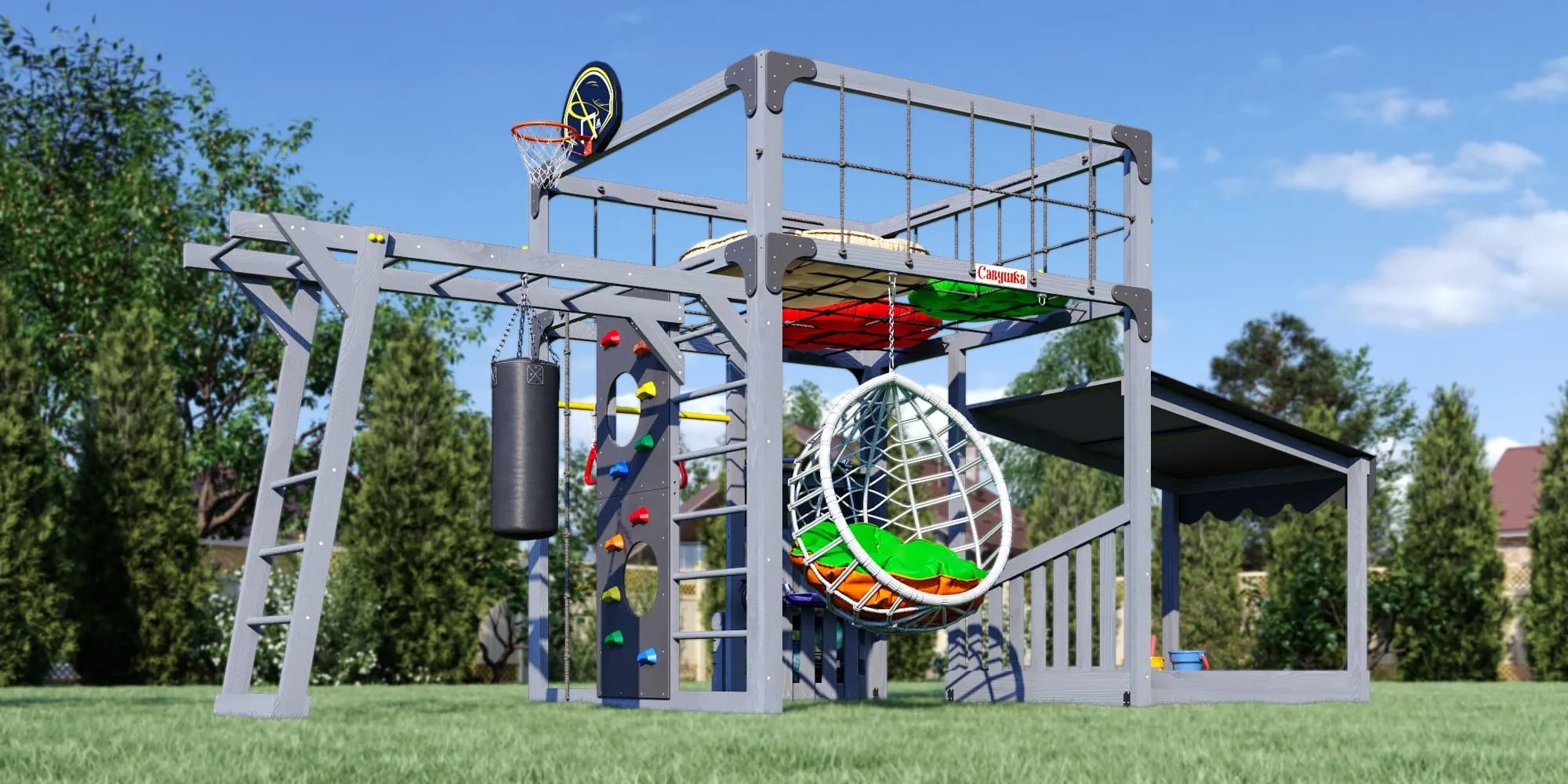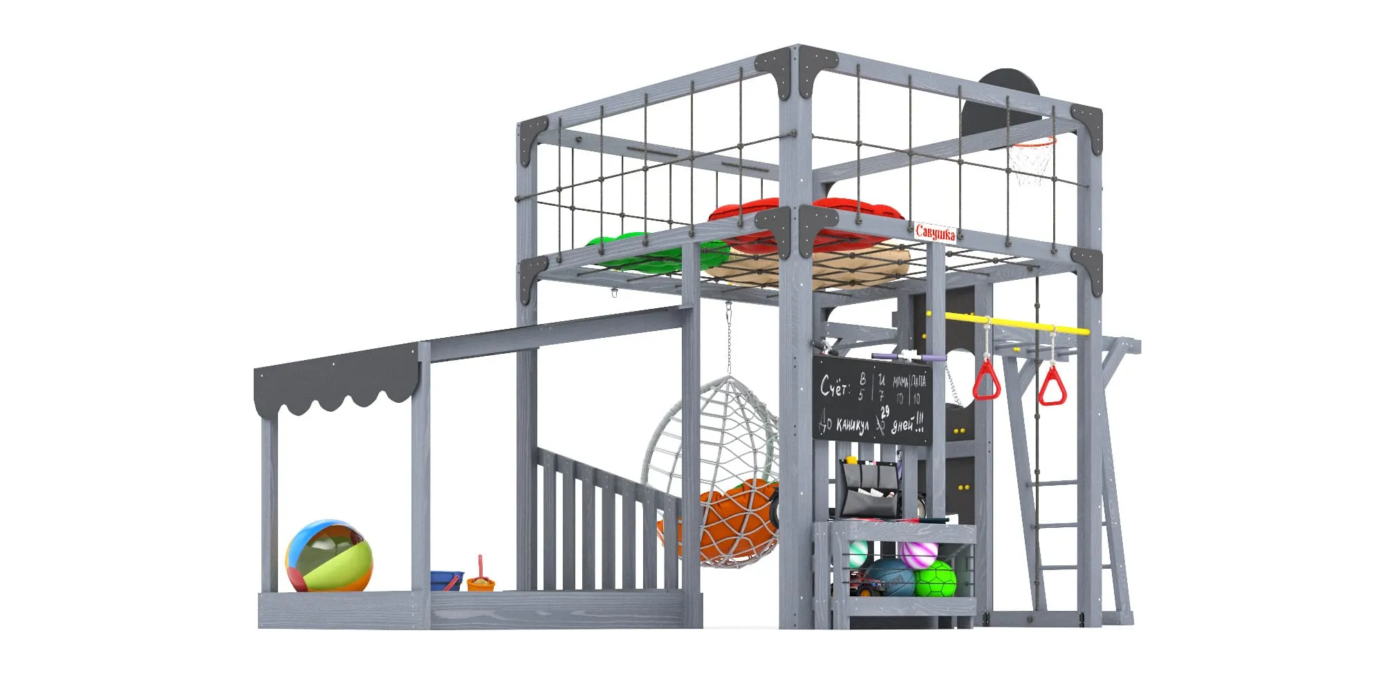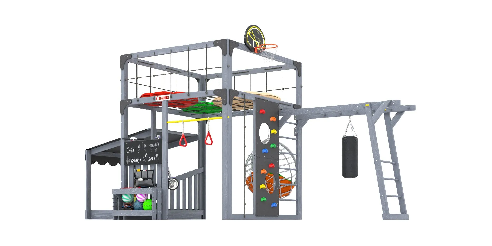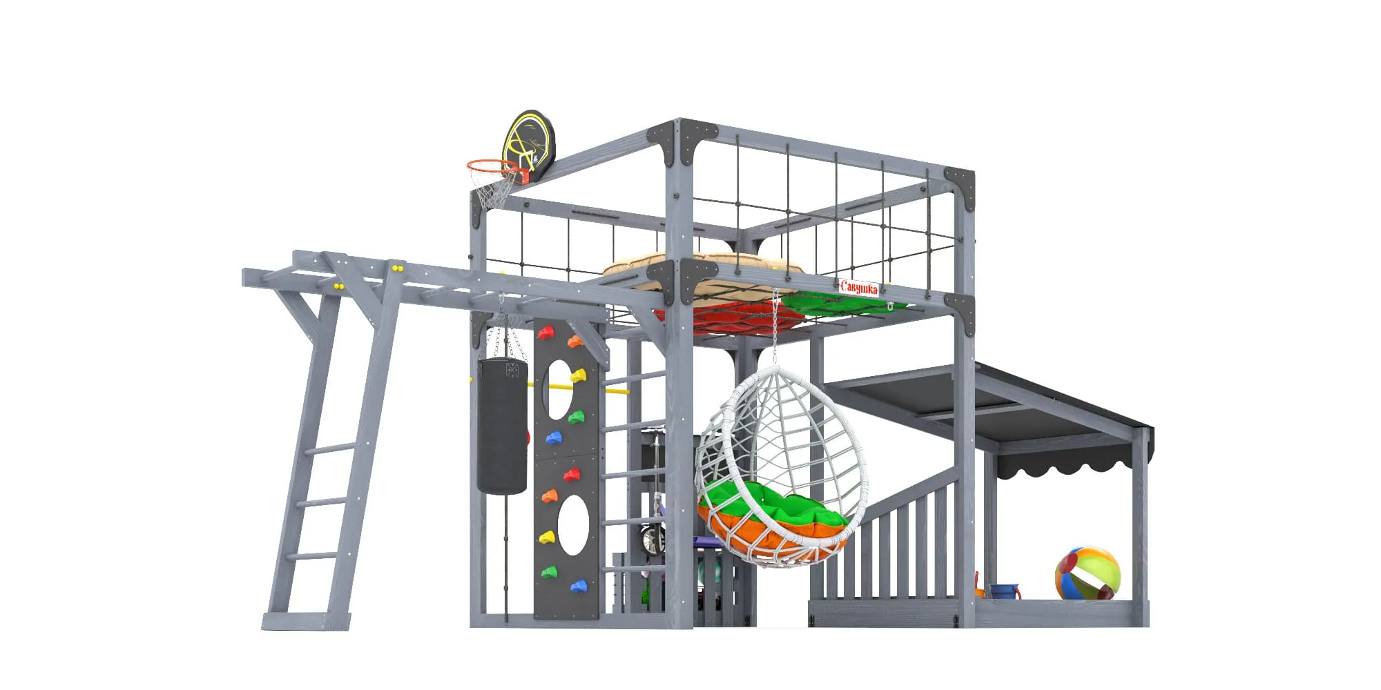 Детская площадка Савушка КУБ-4 (Серый) подушками и коконом — безопасный и функциональный комплекс для активного детства