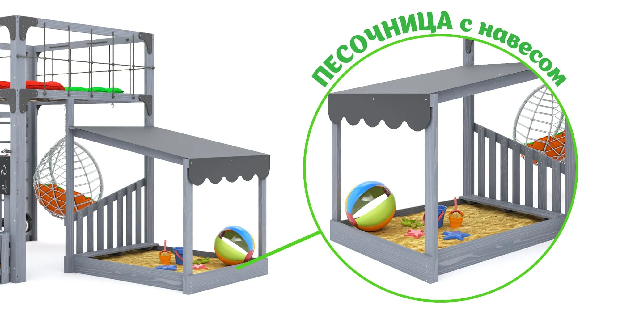 - Песочница — личное пространство малыша для игры, фантазии и спокойствия, прямо во дворе.
