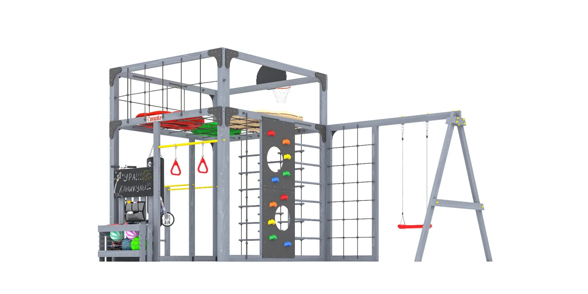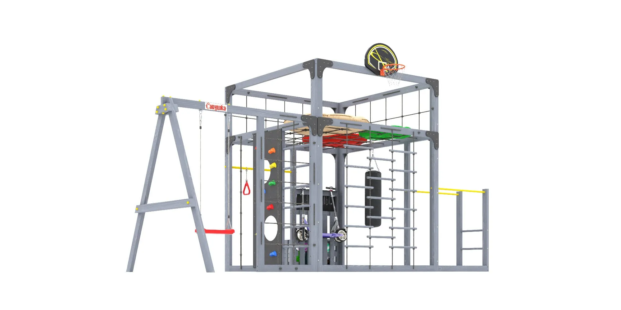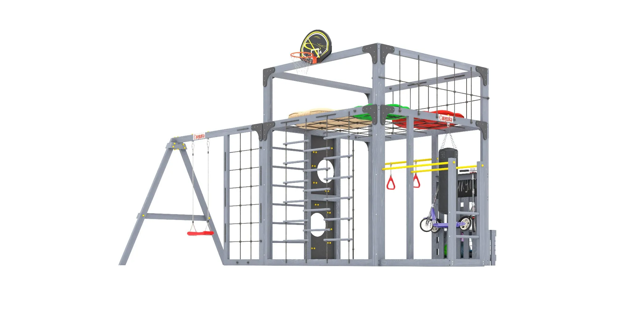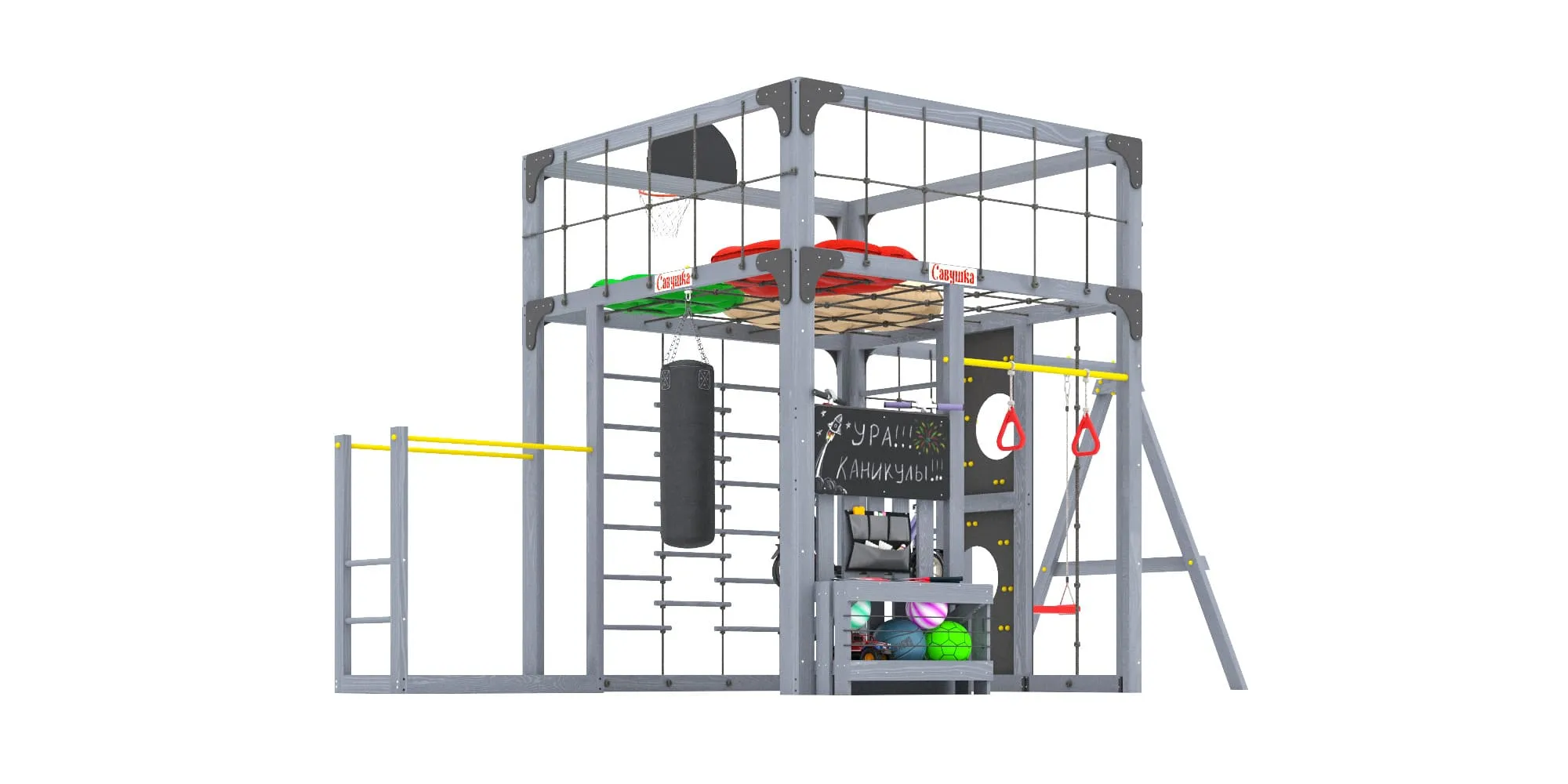 Представляем детскую игровую площадку Савушка КУБ-6 с подушками в цвете Серый — инновационный комплекс, объединяющий спорт, игру и отдых для всей семьи. Этот многофункциональный комплекс создан для гармоничного физического развития детей и активного семейного досуга.