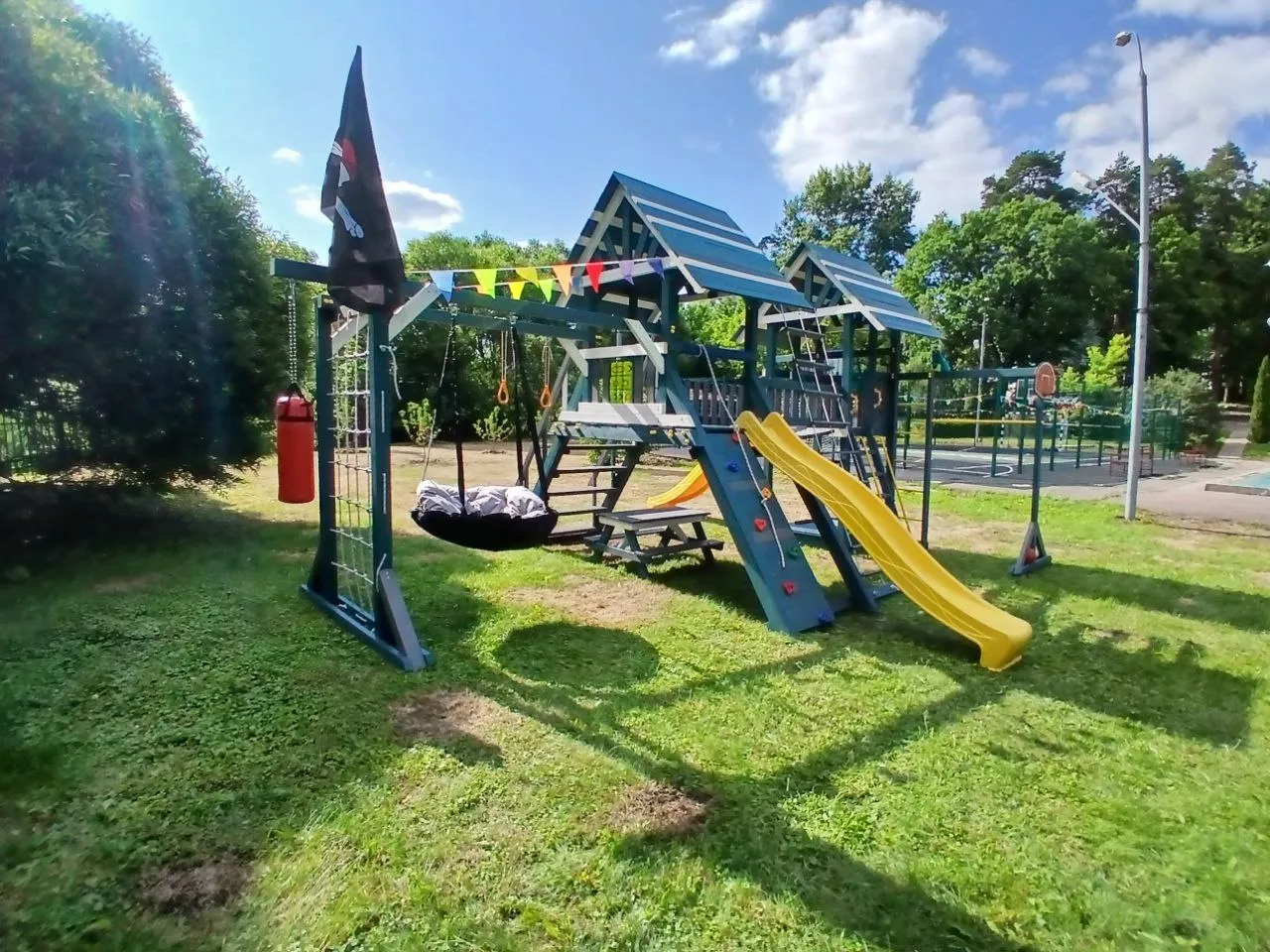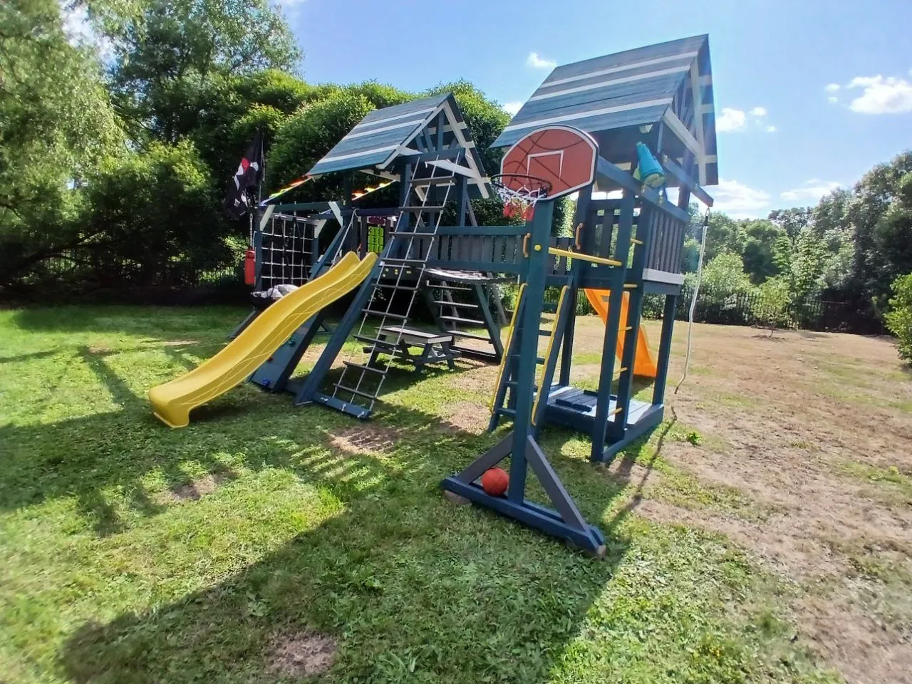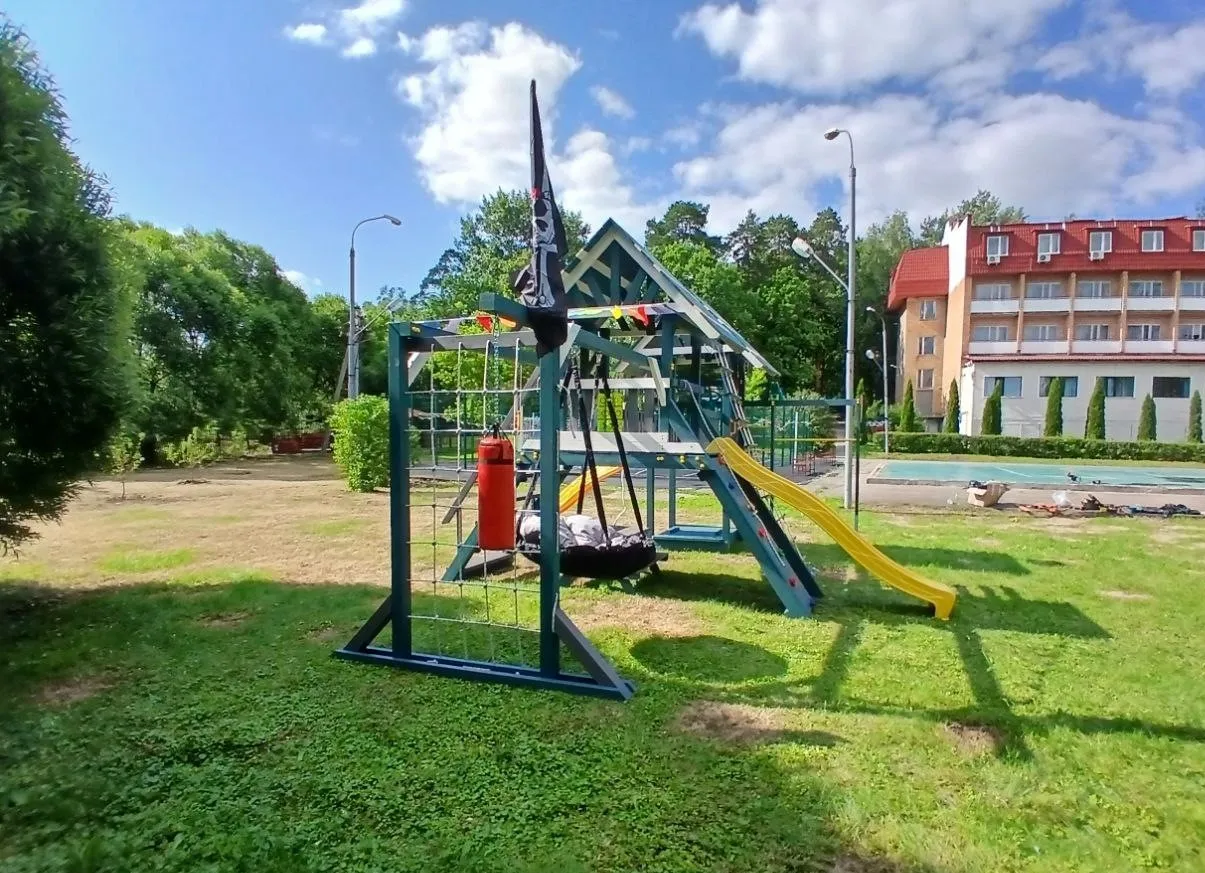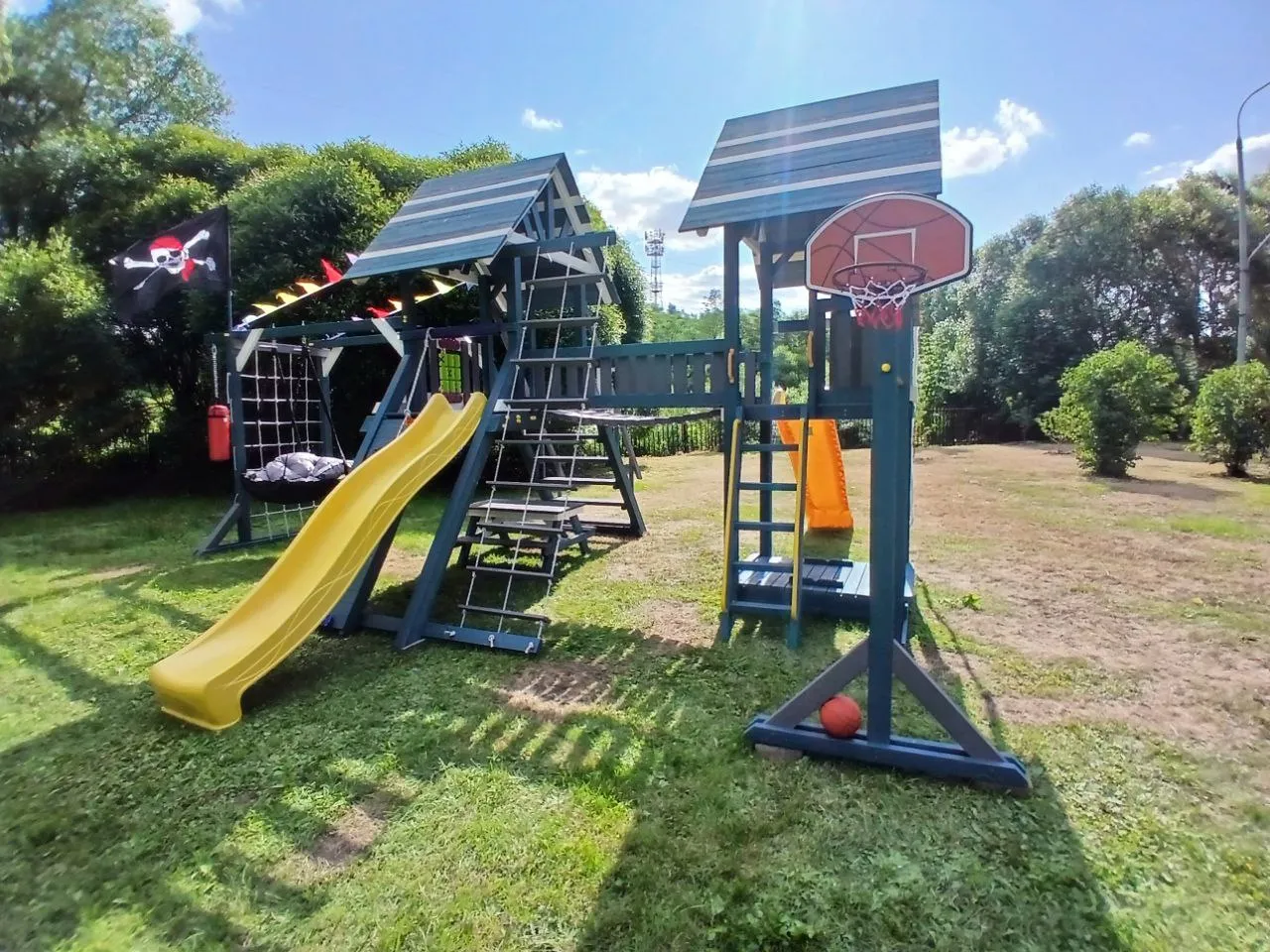 - Разнообразие развлечений: Горки, качели, скалодром, сетка-лазалка, спортивные элементы и даже баскетбольный щит.