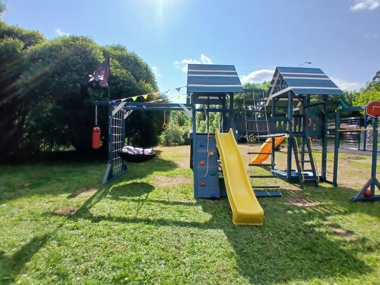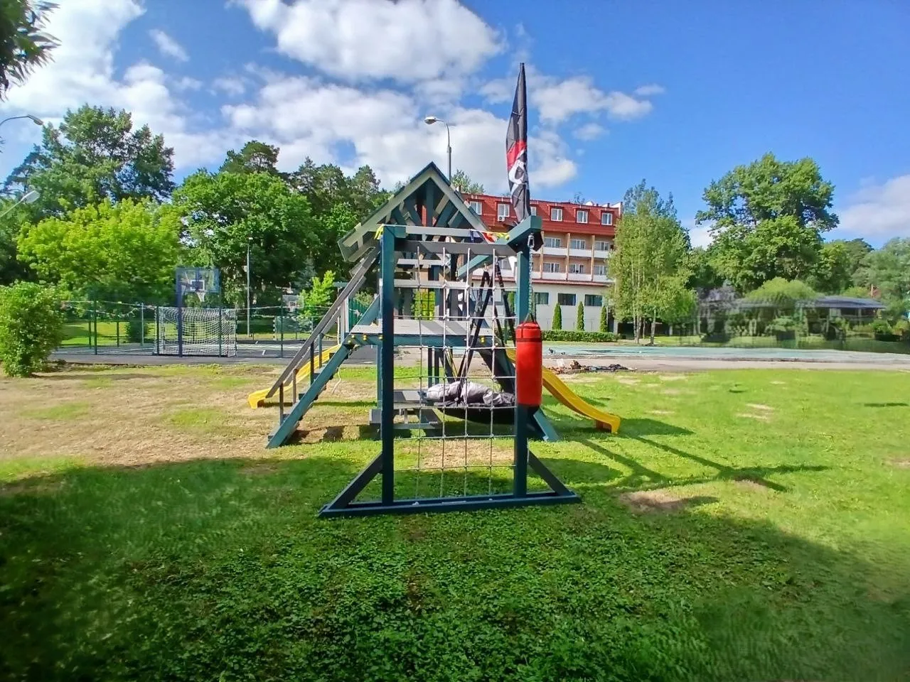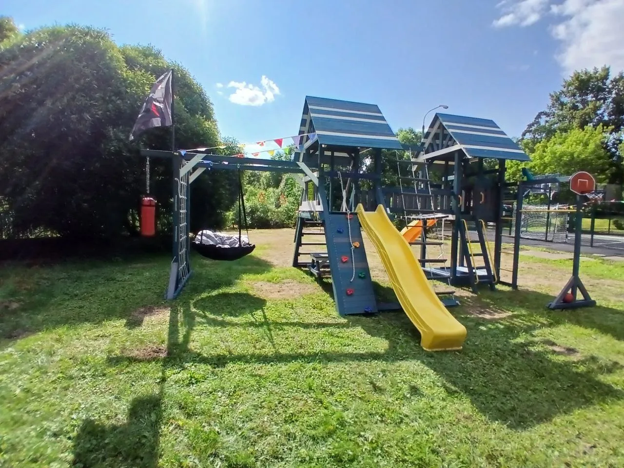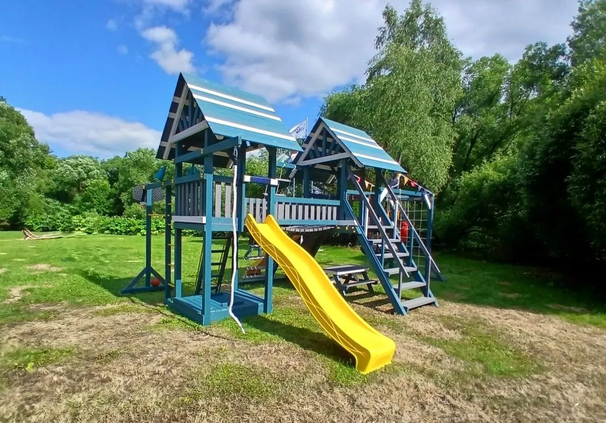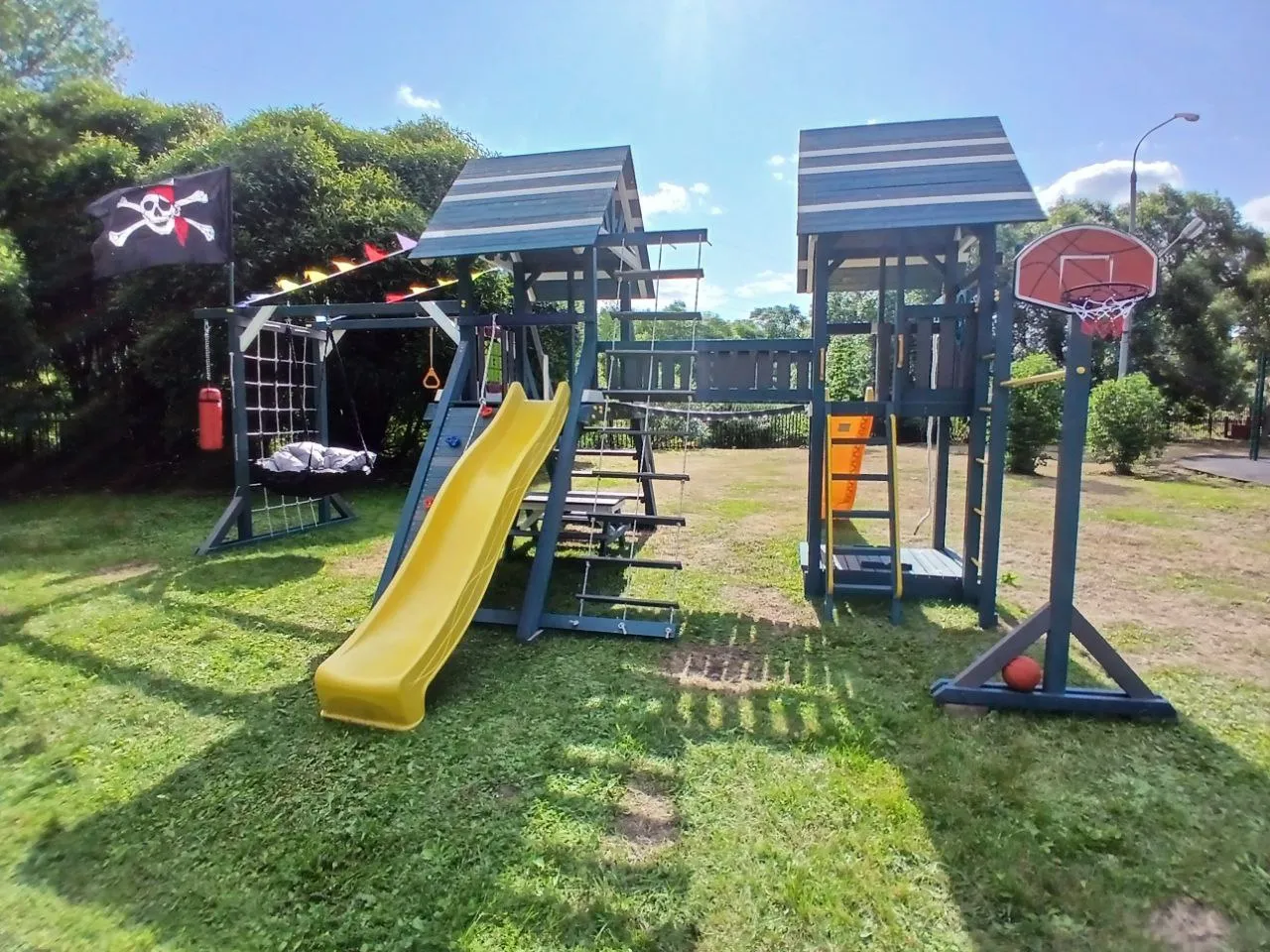 - Разнообразие развлечений: Горки, качели, скалодром, сетка-лазалка, спортивные элементы и даже баскетбольный щит.