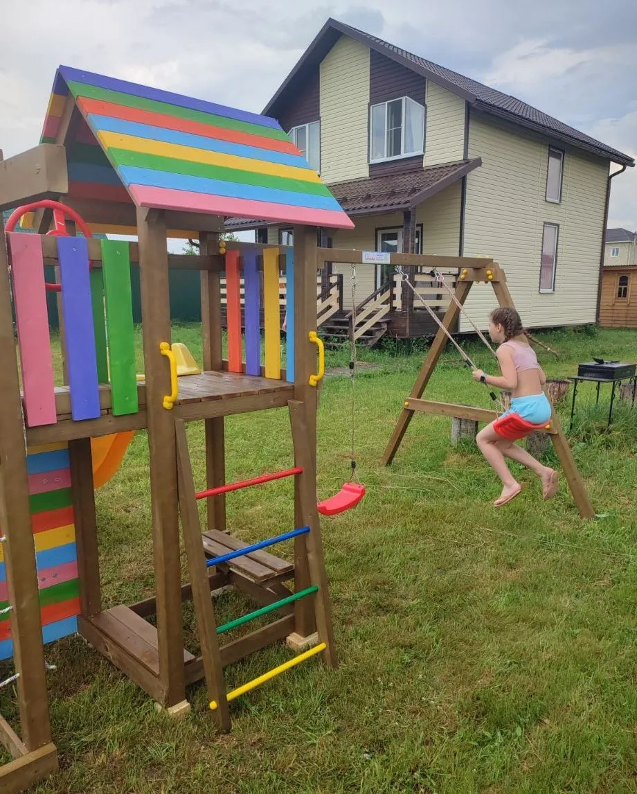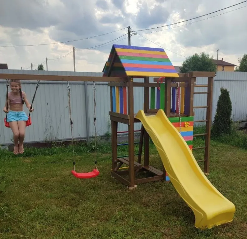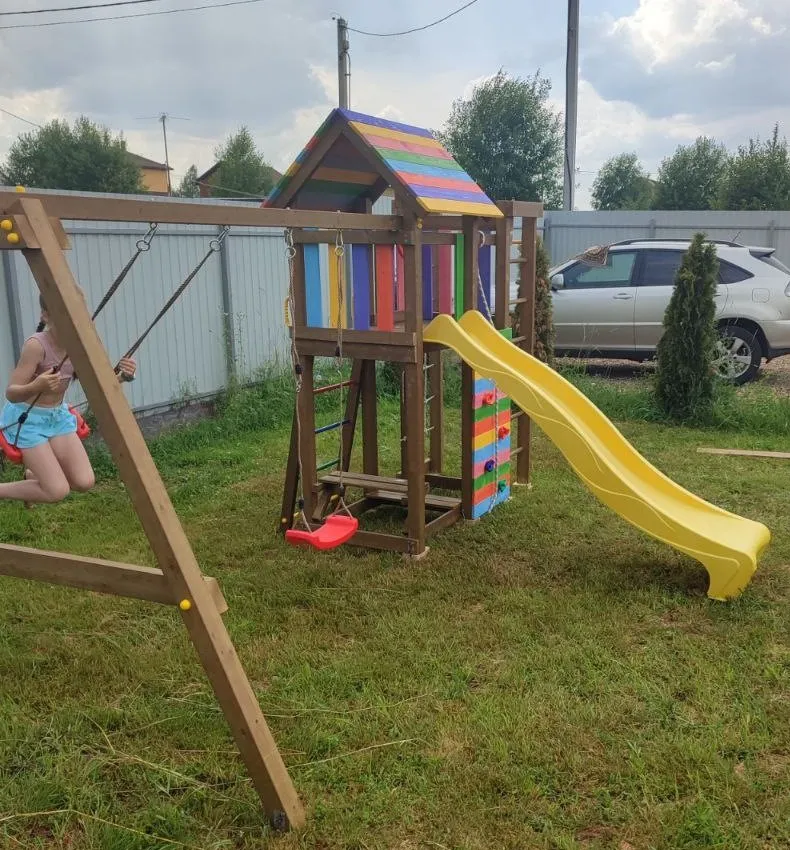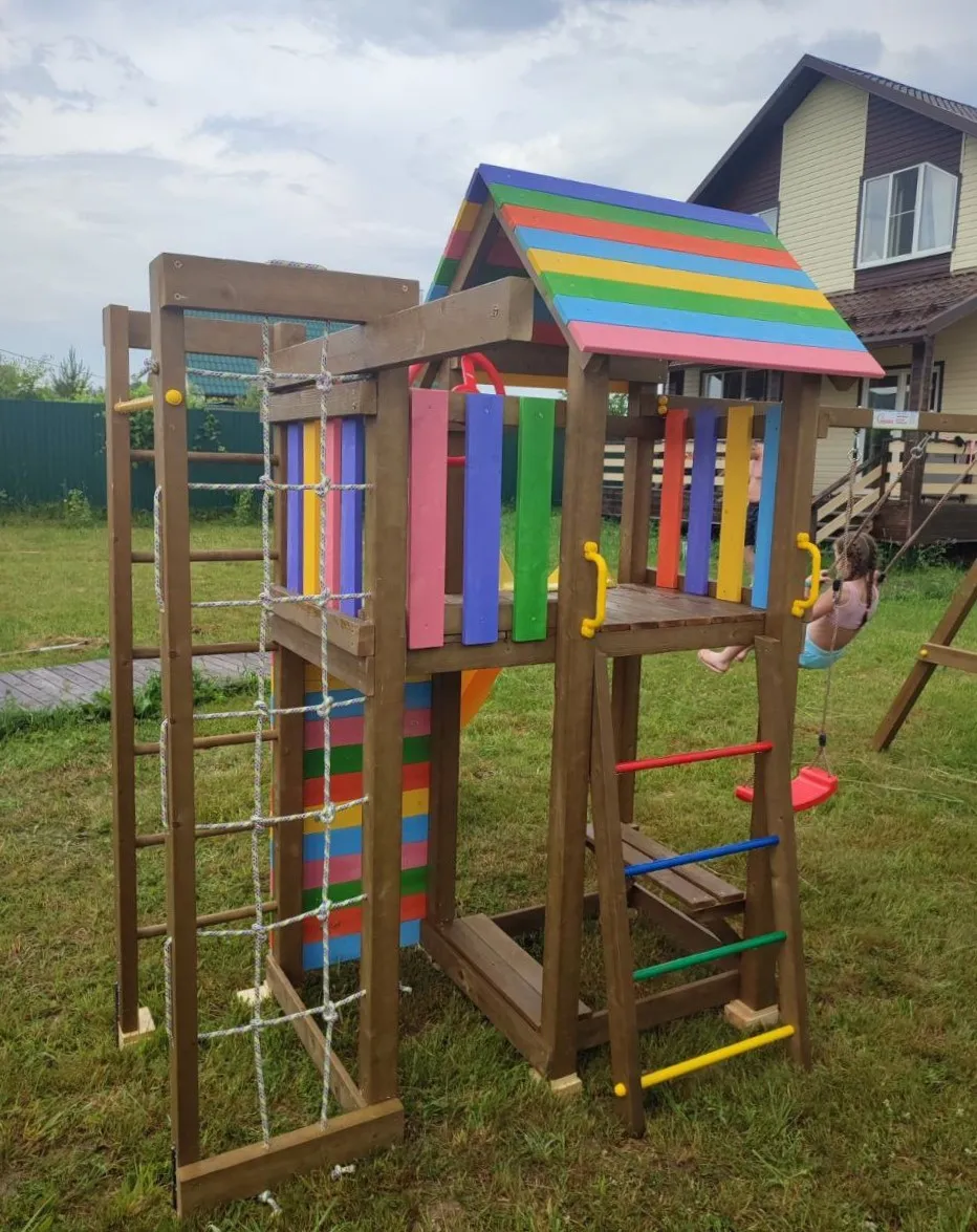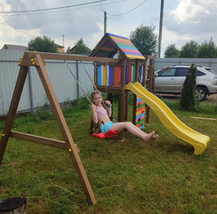 Современный детский спорткомплекс полностью из натуральных материалов готов занять достойное место на Вашем дачном участке.