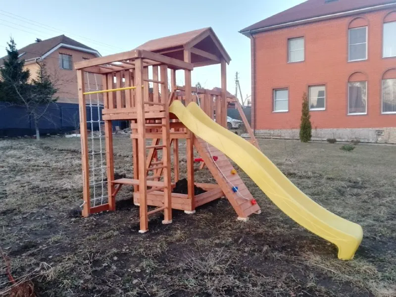 Детская площадка Савушка Мастер 3 (Махагон) приспособлена для оформления игровых площадок на улице, ей не страшен мороз или жара.