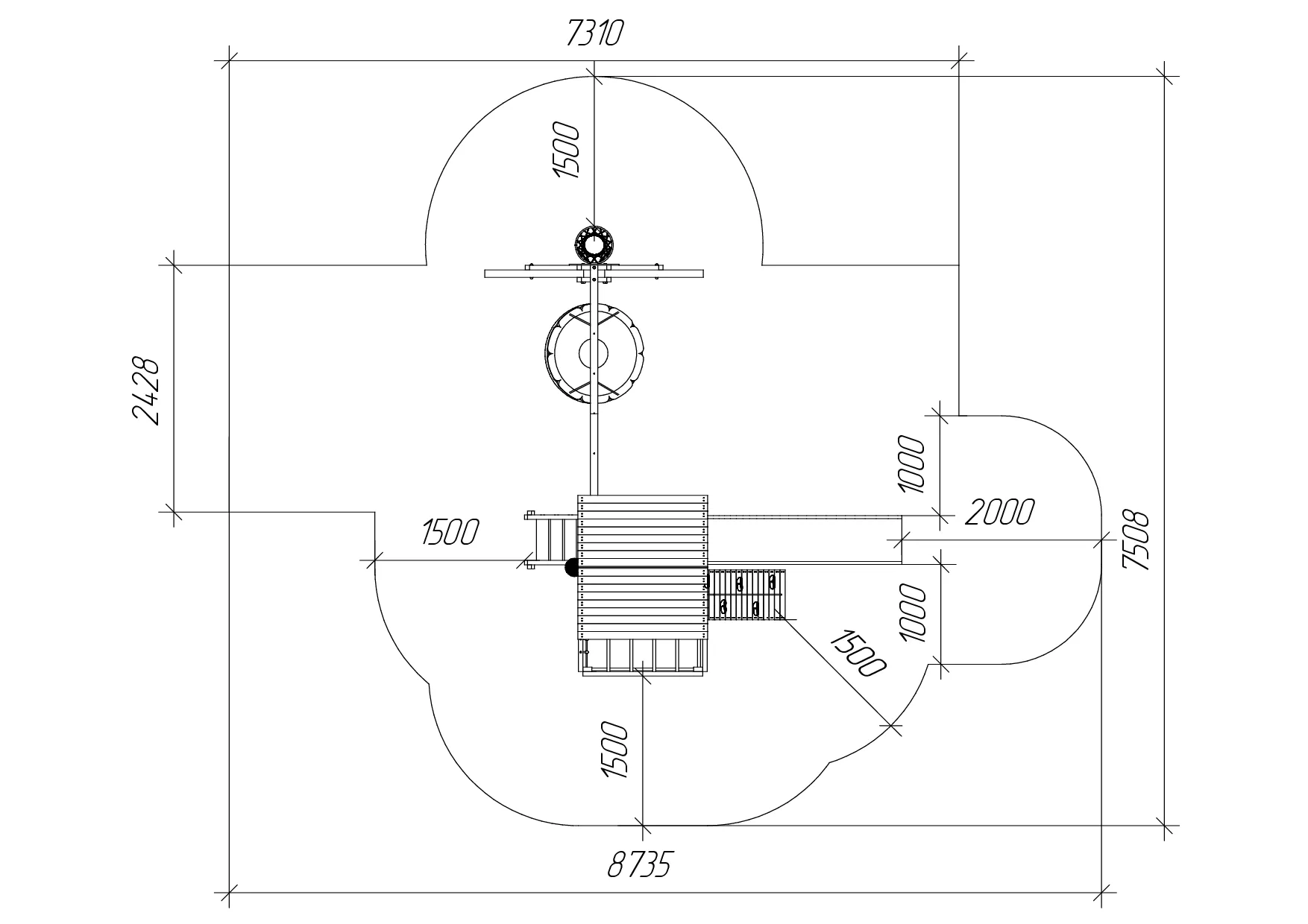 Площадки содержат 10 игровых зон, чтобы каждый ребенок нашел занятие по душе. В одном комплексе предусмотрено 8 спортивных элементов, обеспечивающих разнообразие физической активности. Высота платформы для спуска с горки: 1,2 м.