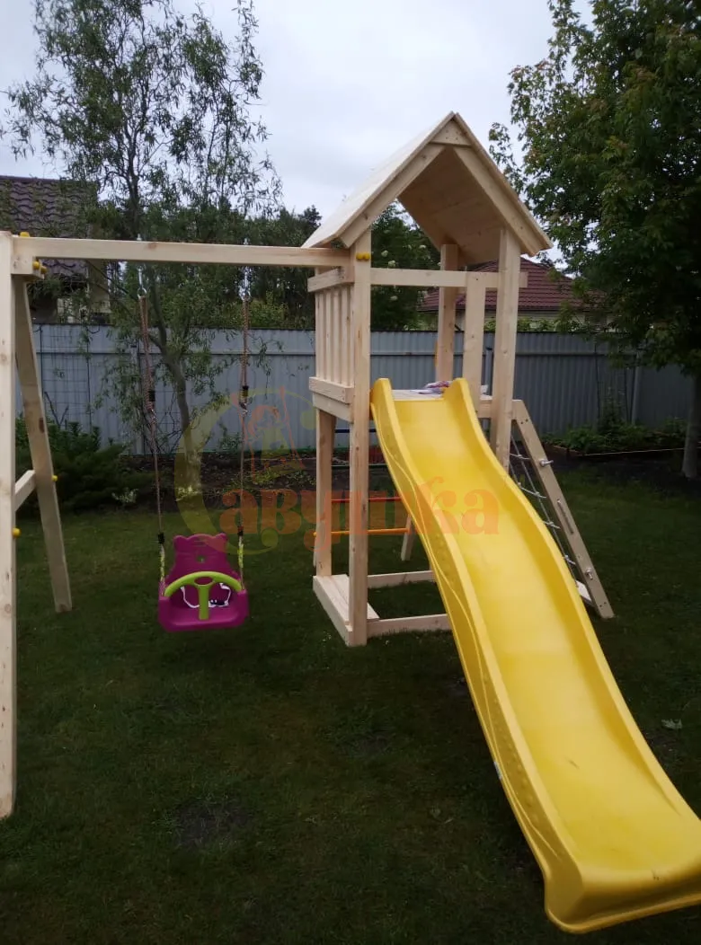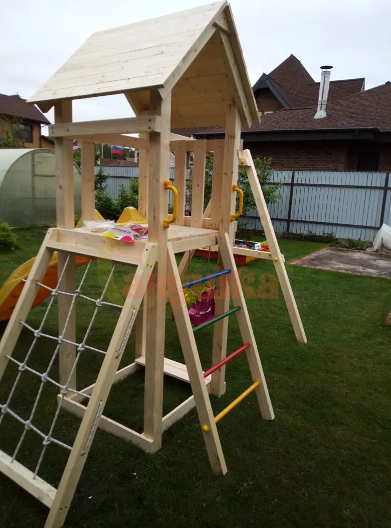 - Безопасные материалы — гладкий брус, скруглённые углы.