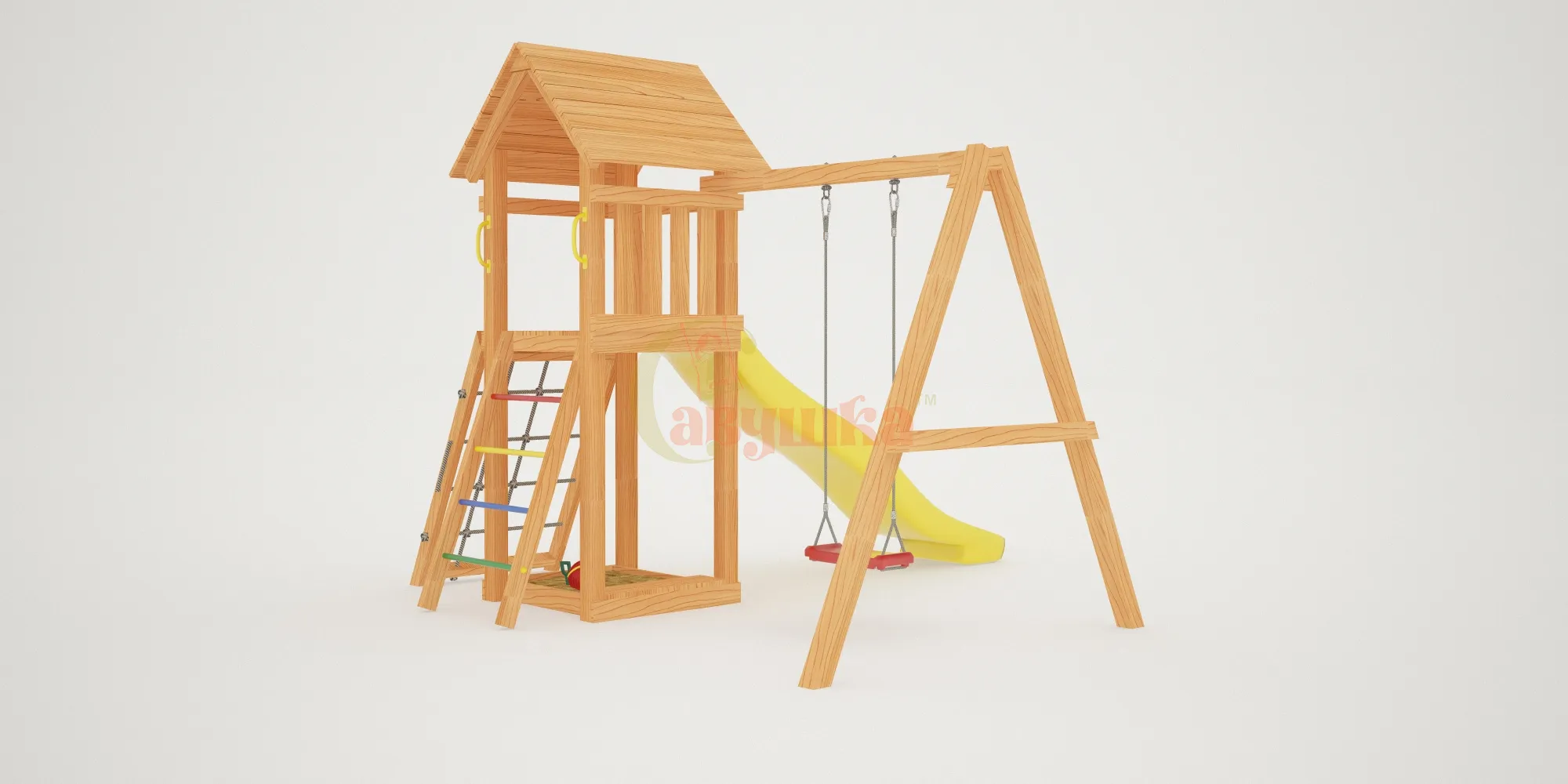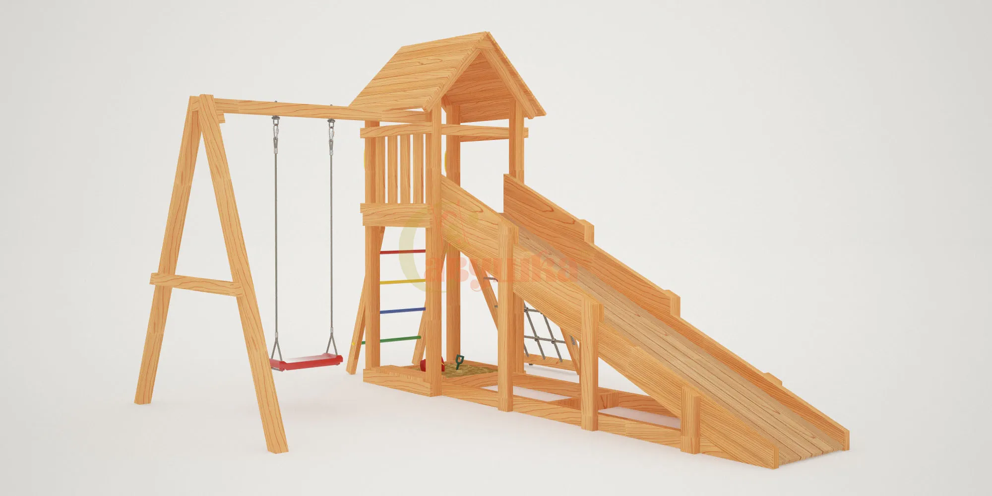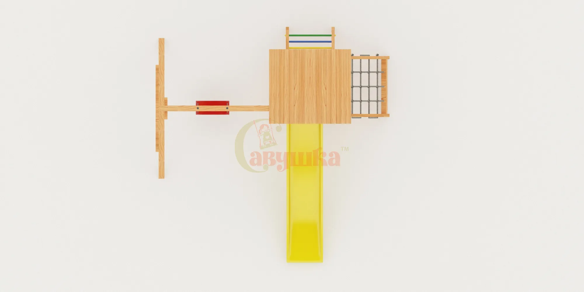 Прочная конструкция из клееного бруса, безопасные углы, сертификация по ГОСТ — это гарантия долговечности и надёжности. Площадка выдержит активные игры и любую погоду.