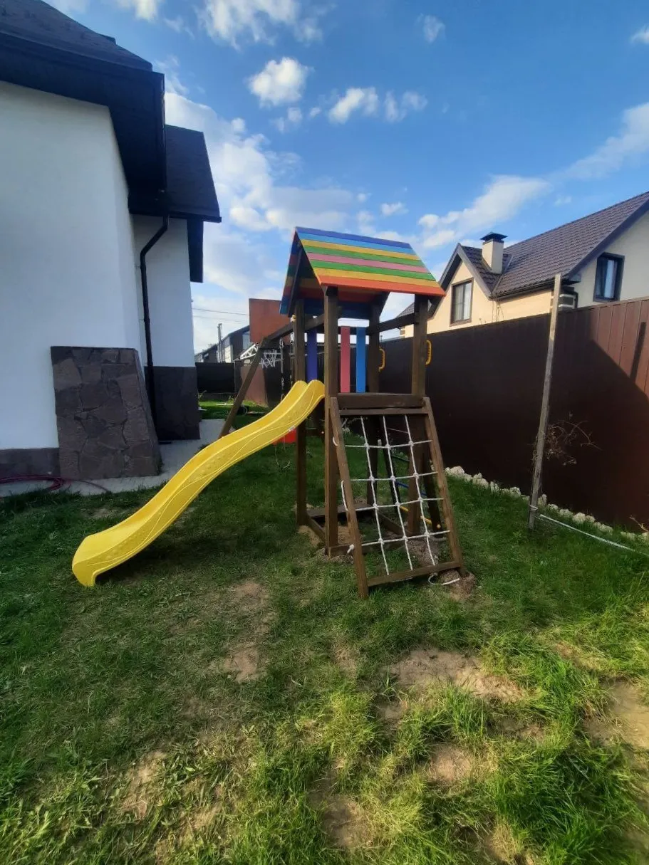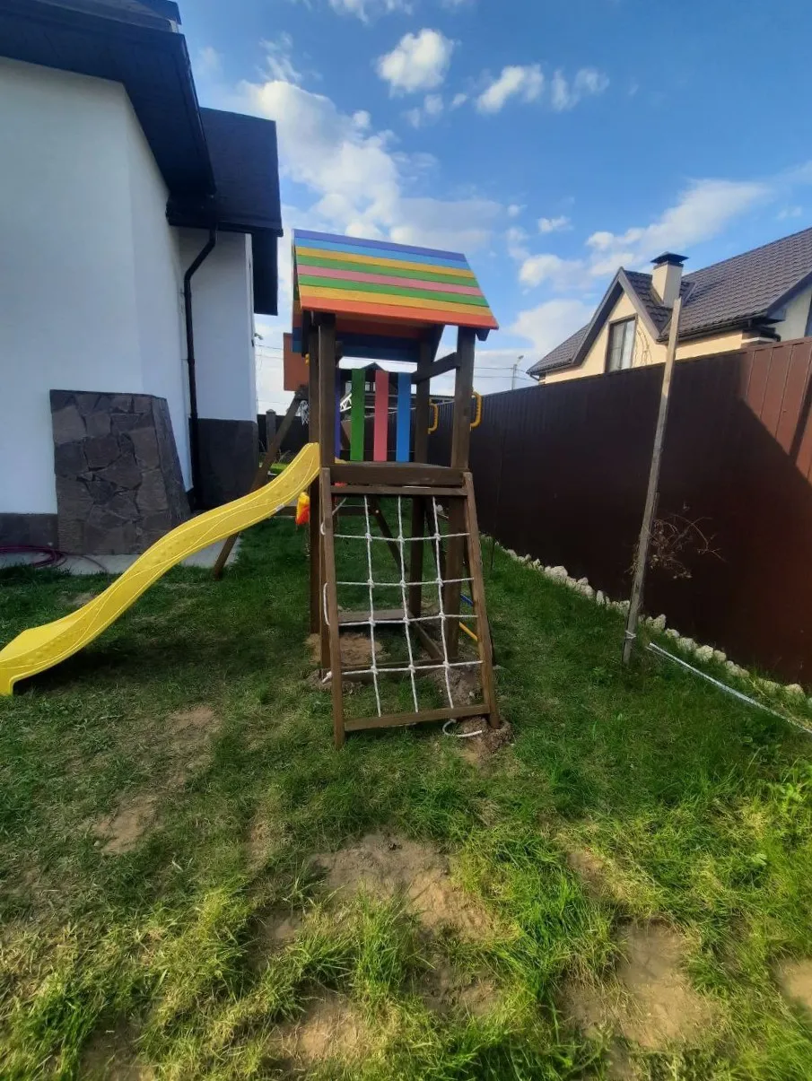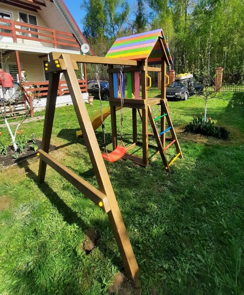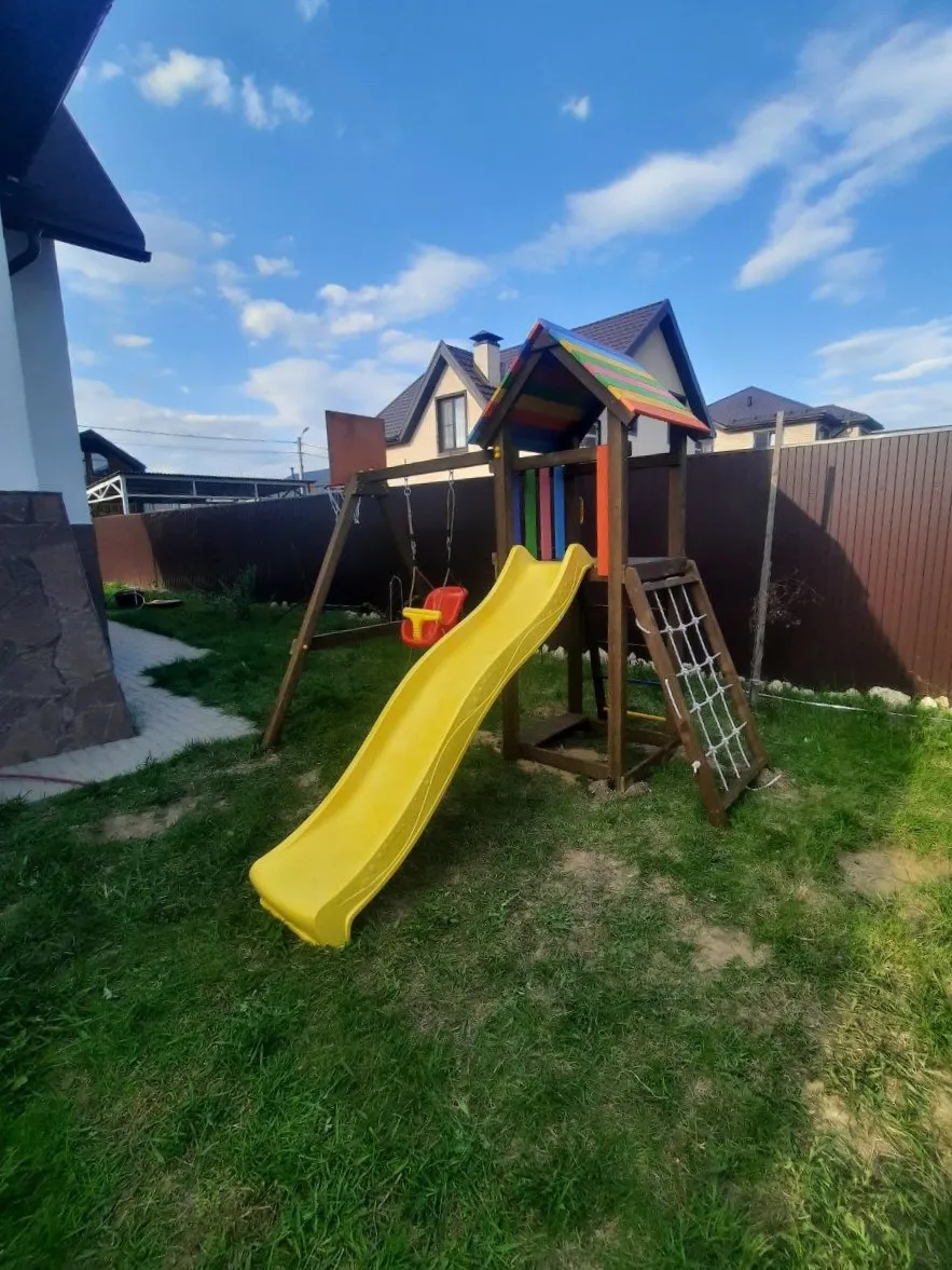 На Вашей даче или загородном участке наверняка найдется площадка в 9 м2, чтобы установить этот всепогодный уголок. Он современный и не нарушит дизайнерских задумок придомовой территории.Детская площадка Савушка Мастер 7 (Brown Color)