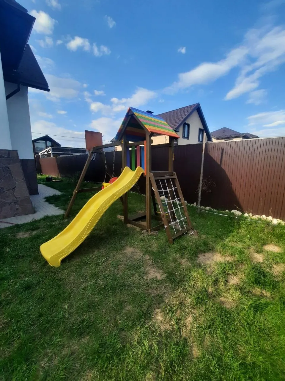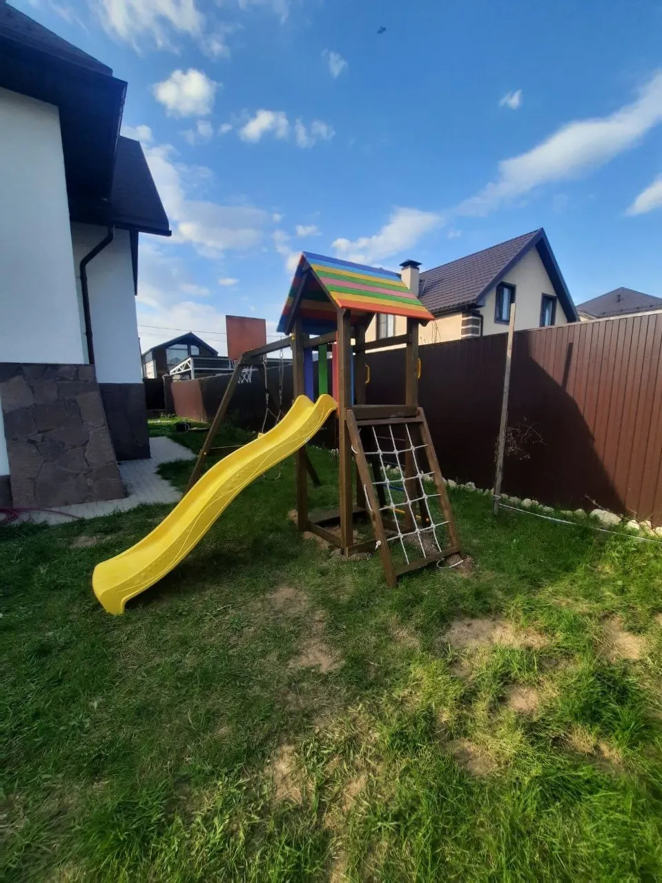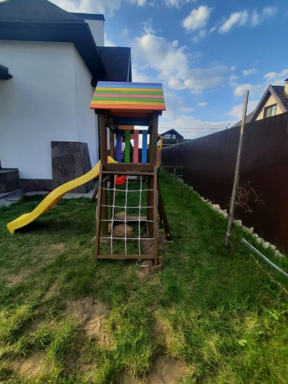 На Вашей даче или загородном участке наверняка найдется площадка в 9 м2, чтобы установить этот всепогодный уголок. Он современный и не нарушит дизайнерских задумок придомовой территории.Детская площадка Савушка Мастер 7 (Brown Color)