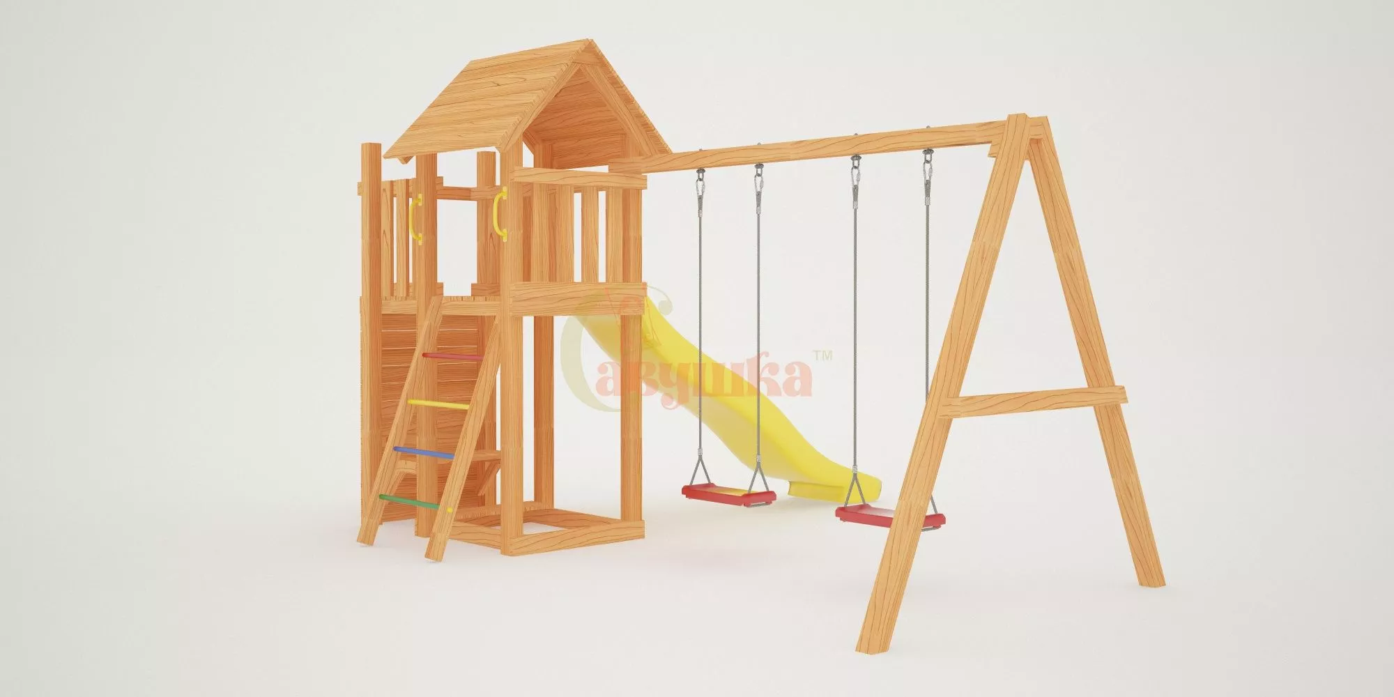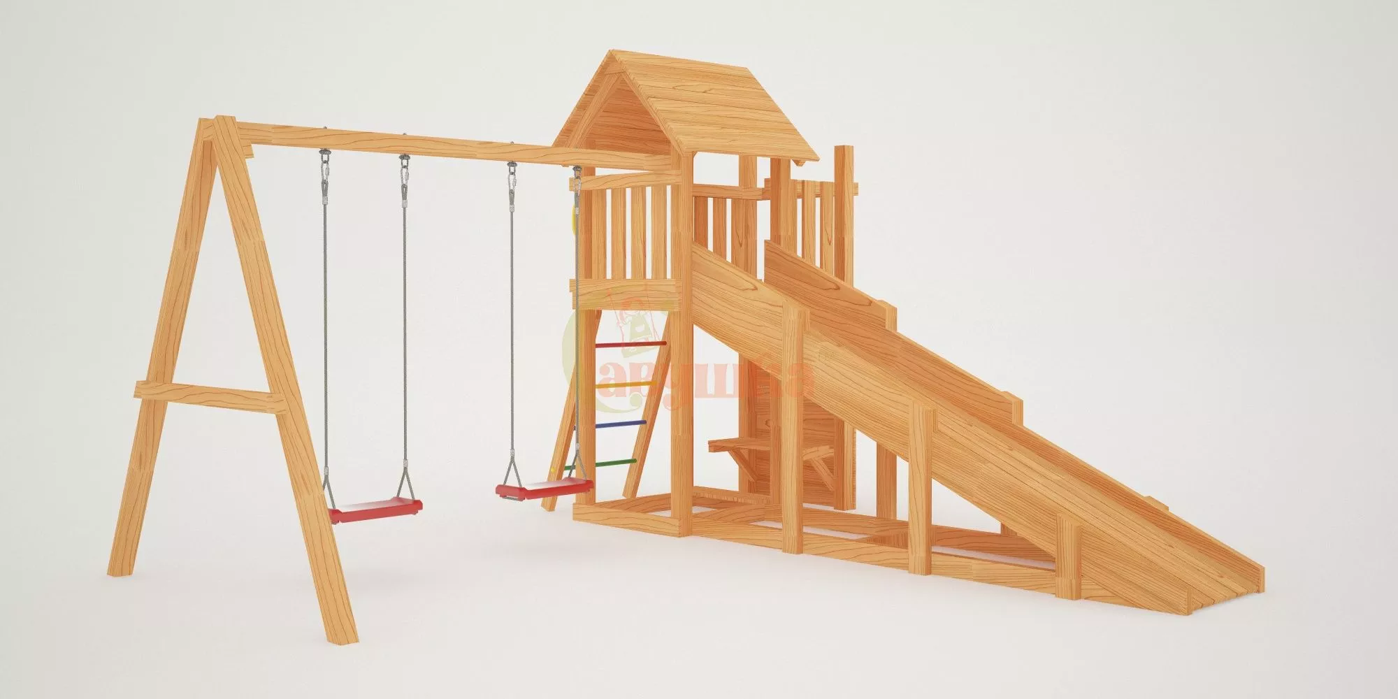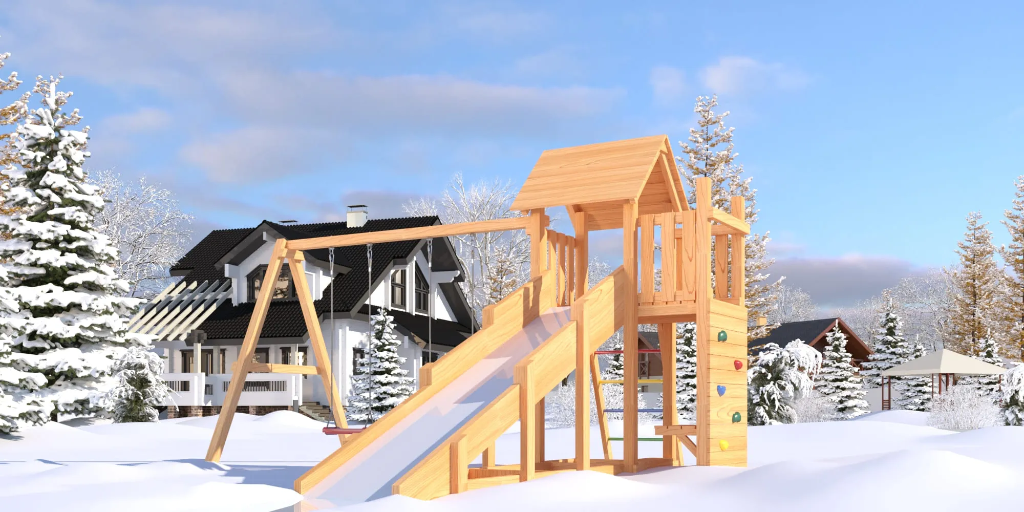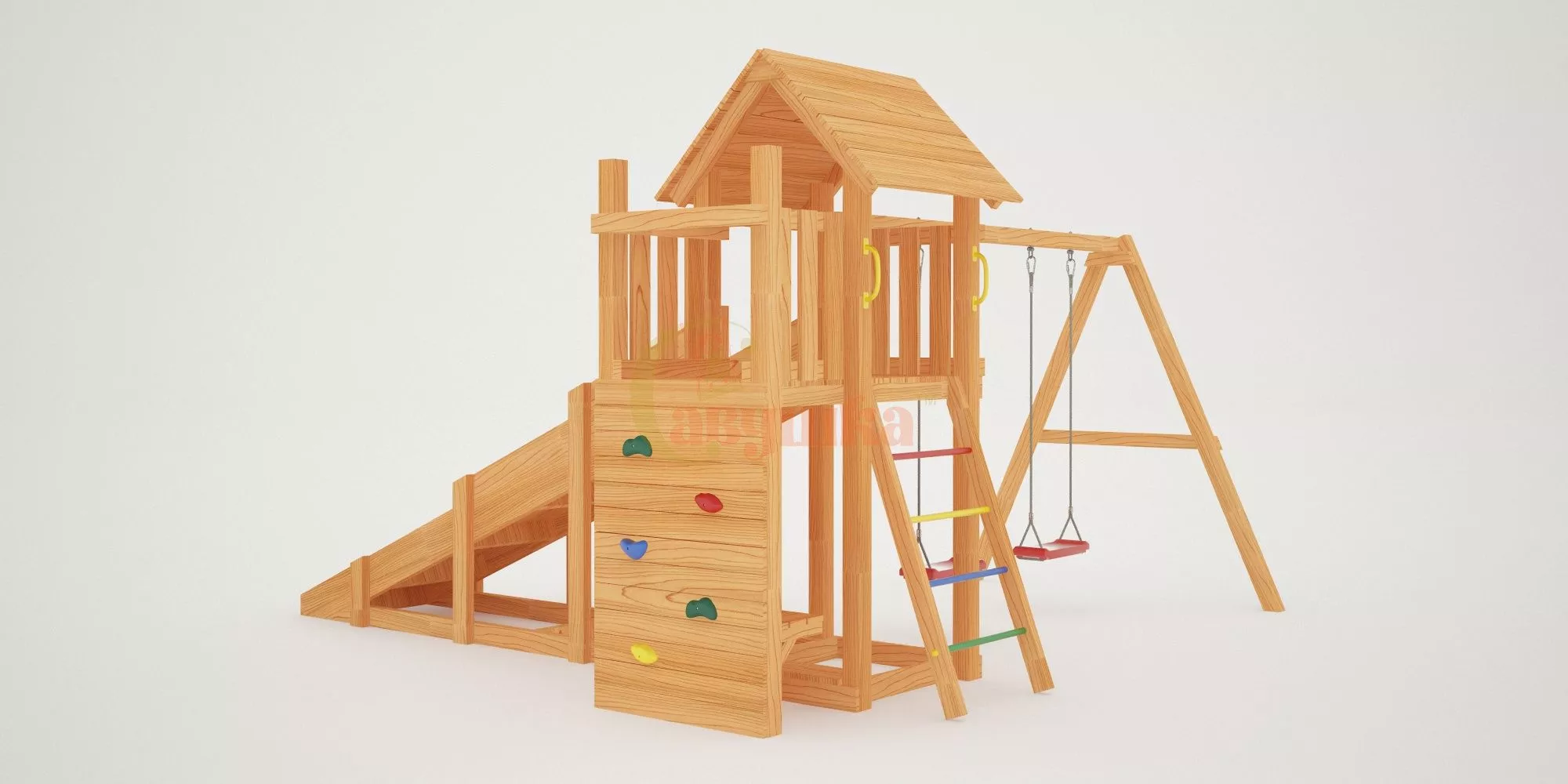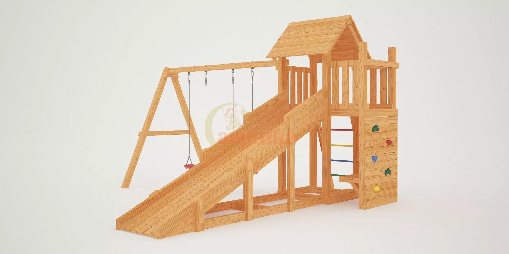 Подходит для детей разных возрастов: малыши играют в песочнице, старшие осваивают скалодром, а вся семья катается на качелях. Конструкция сертифицирована по ГОСТ и собрана из прочного клееного бруса — безопасно, надёжно и долговечно.
