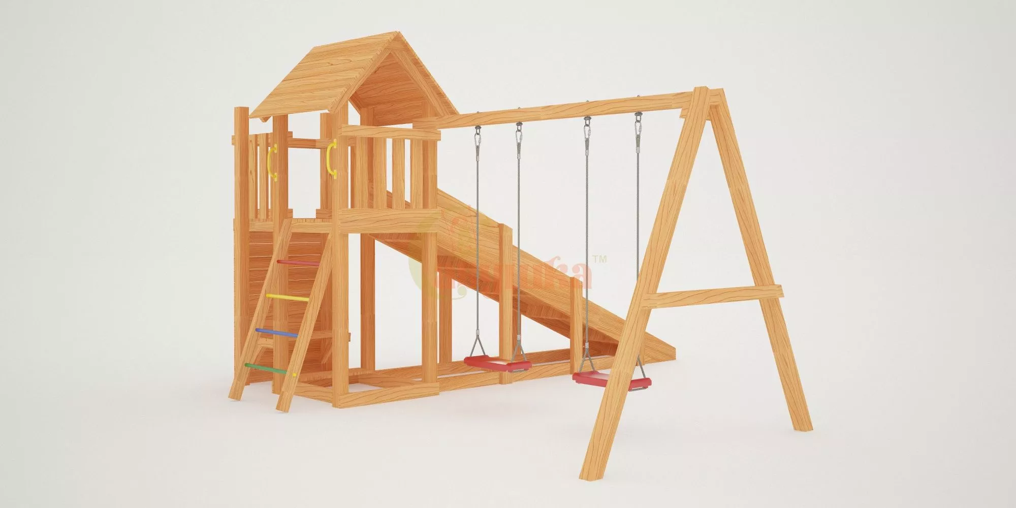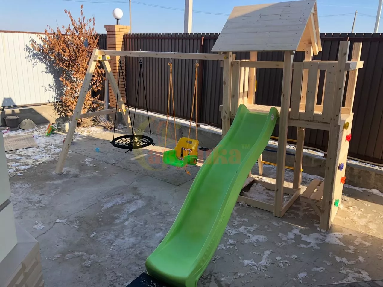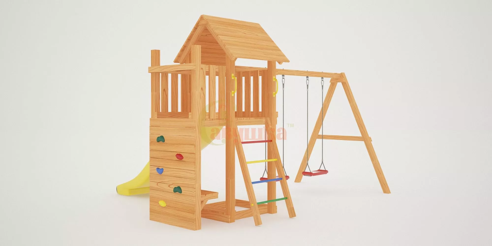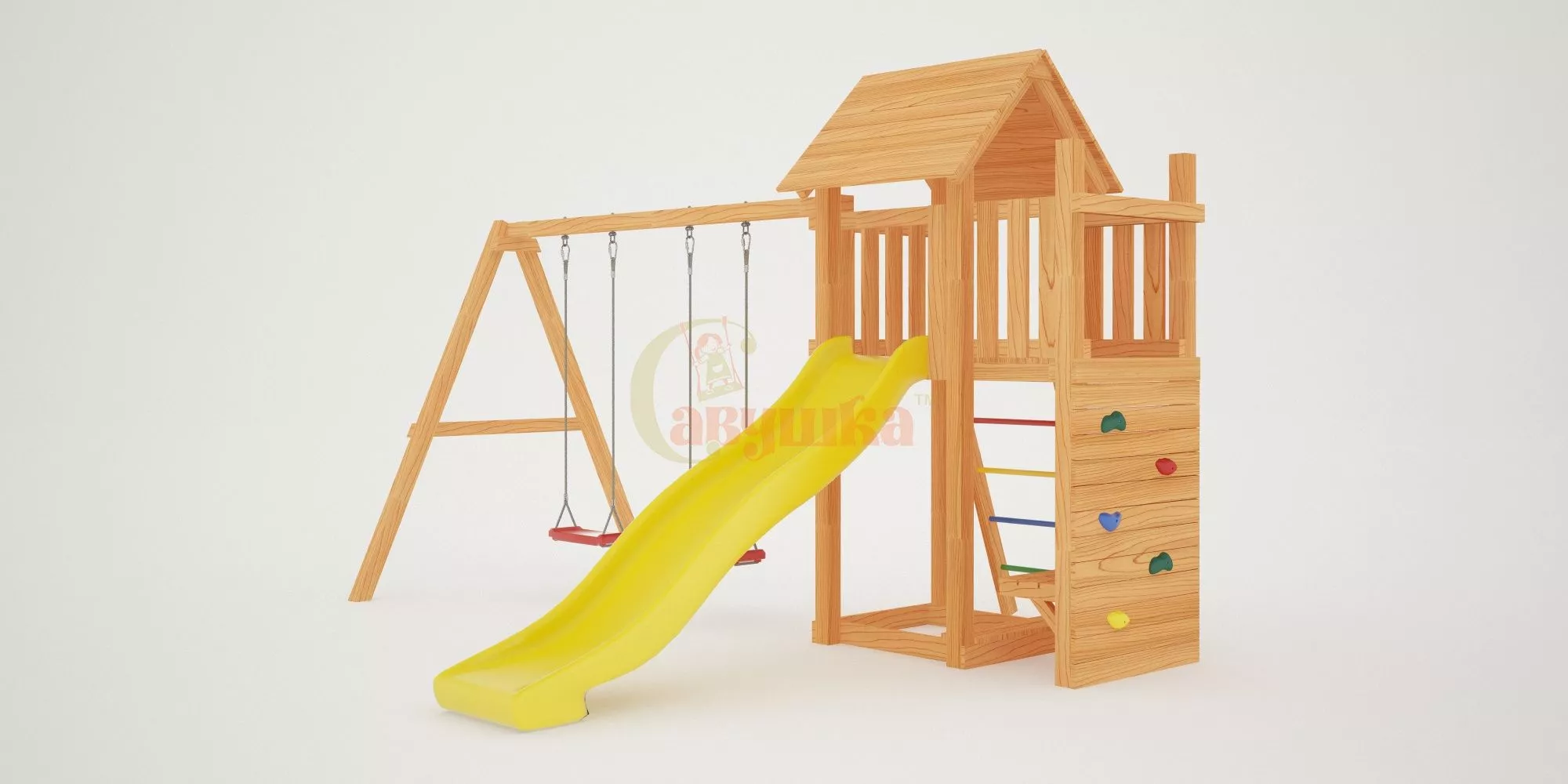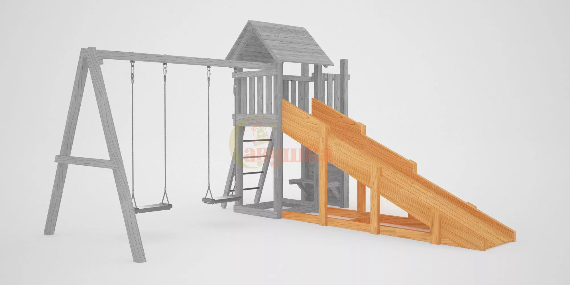 Подходит для детей разных возрастов: малыши играют в песочнице, старшие осваивают скалодром, а вся семья катается на качелях. Конструкция сертифицирована по ГОСТ и собрана из прочного клееного бруса — безопасно, надёжно и долговечно.