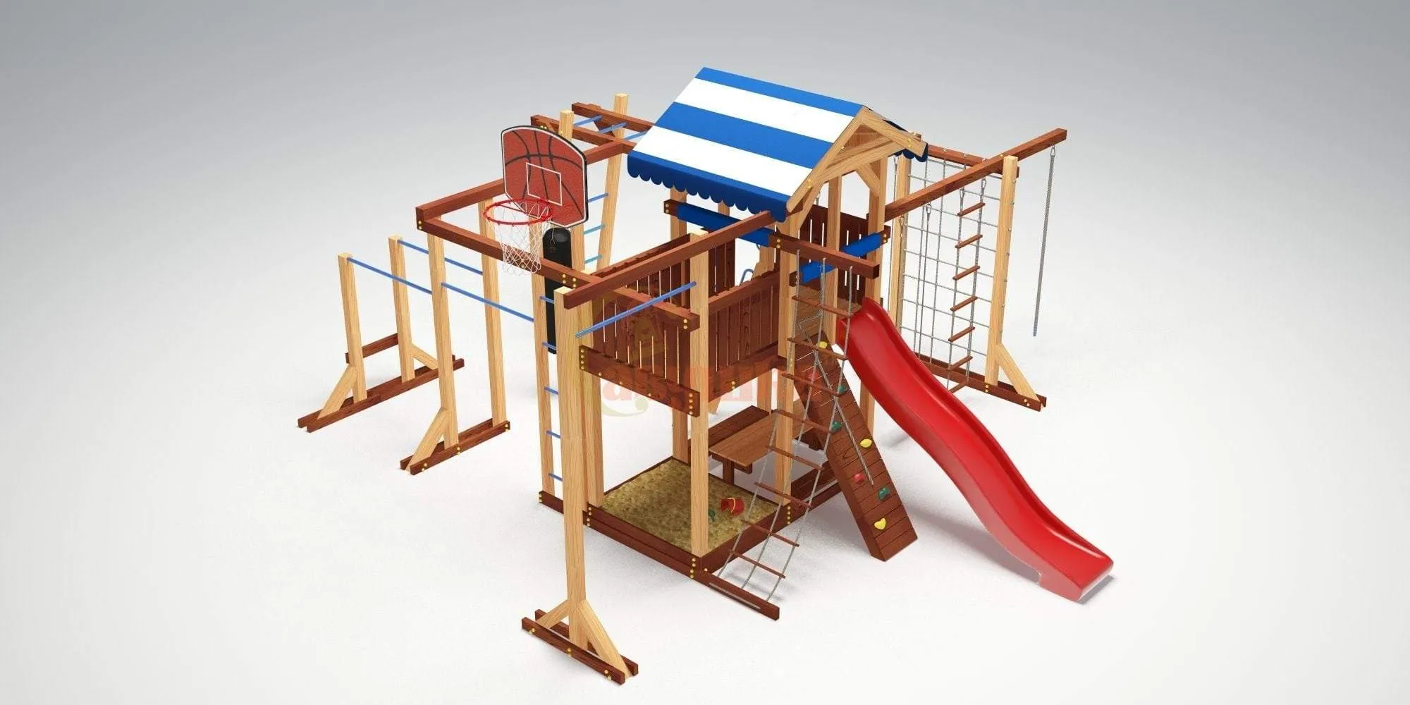 Модель Савушка Семейная смело можно назвать флагманом серии из-за больших размеров, а также богатой комплектации. По конструкции она не отличается от других площадок, предназначенных для улицы. Рама - клееный и дополнительно покрашенный брус. Сечение несущих нагрузку деталей - 90 х 90 мм (соответствует ГОСТ). Металлические элементы имеют увеличенную толщину стенок. Для их защиты от коррозии используется порошковая краска.Учитывая большую подвижность детей, мы закрыли весь крепеж пластиковыми заглушками. Деревянные детали имеют мягкие накладки, скругленные углы, а также - отшлифованную поверхность.