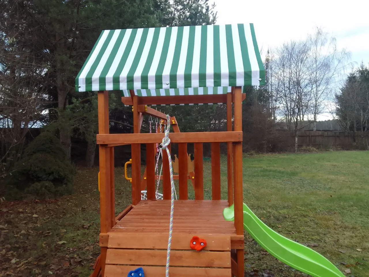 Комплекс выполнен из экологически чистых материалов и обработан лакокрасочным покрытием на водной основе, что делает его безопасным для здоровья детей. Вся конструкция детально продумана и проверена на соответствие ГОСТ, что гарантирует ее надежность и прочность.