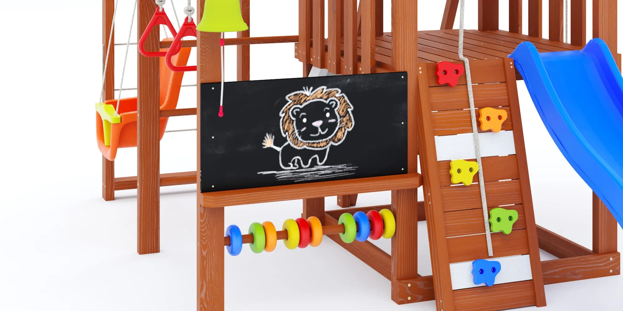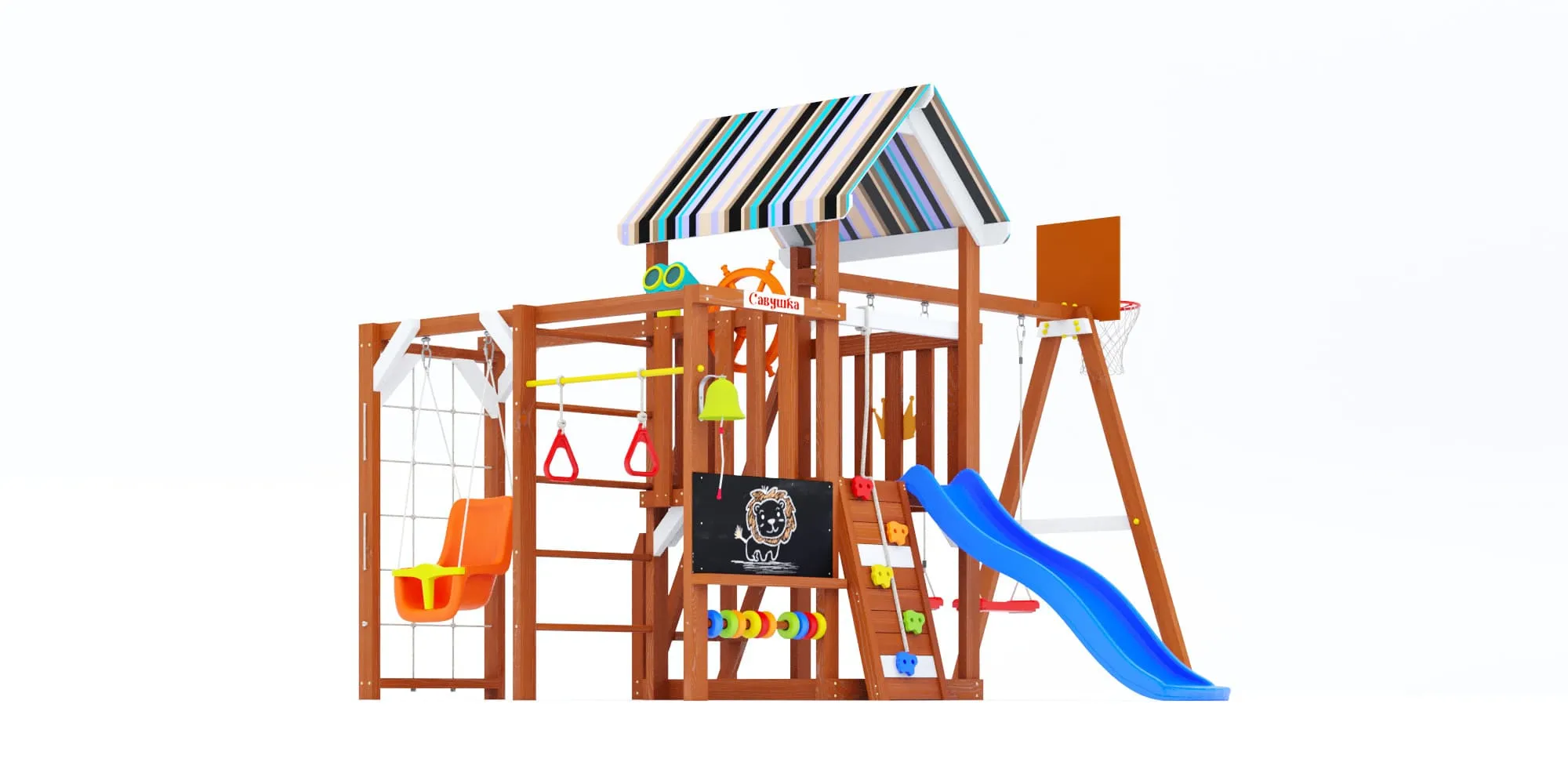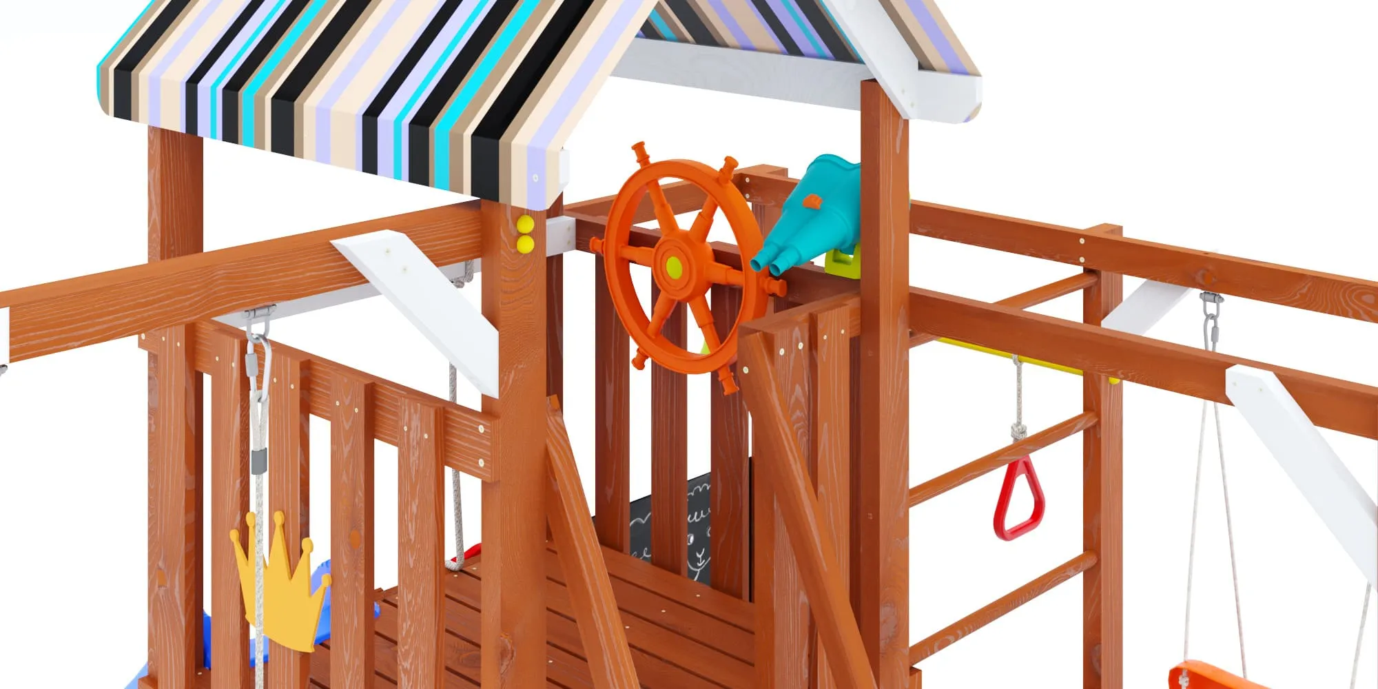 Подходит для установки в частном доме, на даче или во дворе. Благодаря двойной шлифовке и окрашиванию сертифицированными составами, конструкция безопасна даже для самых маленьких.