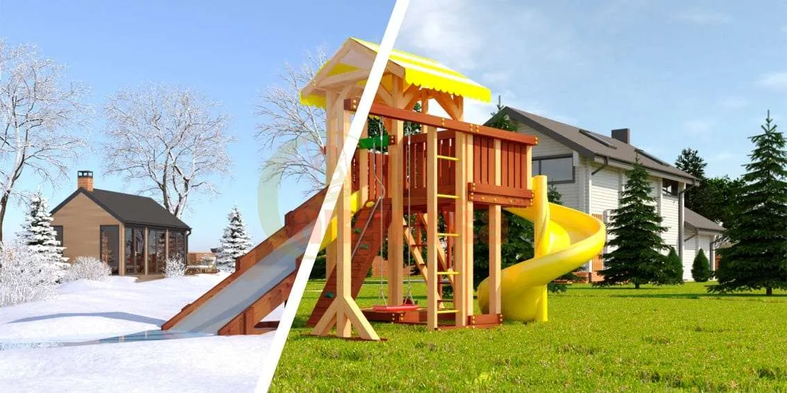- Круглогодичное использование — дети играют на улице и летом, и зимой.