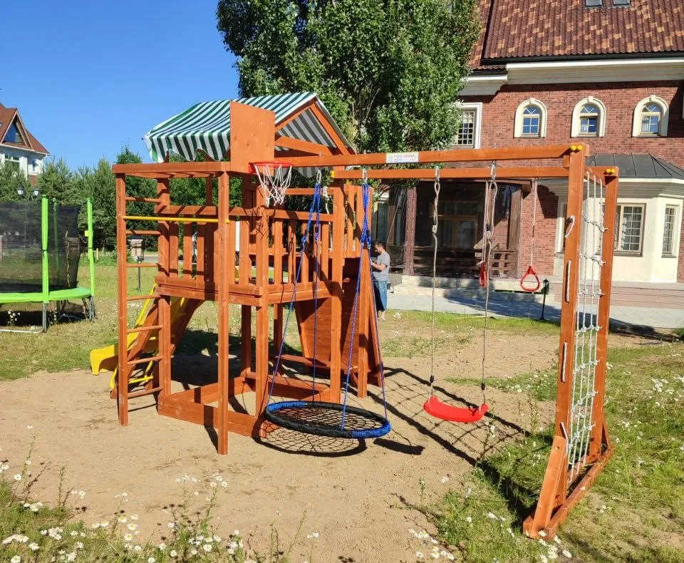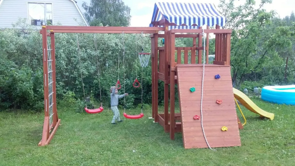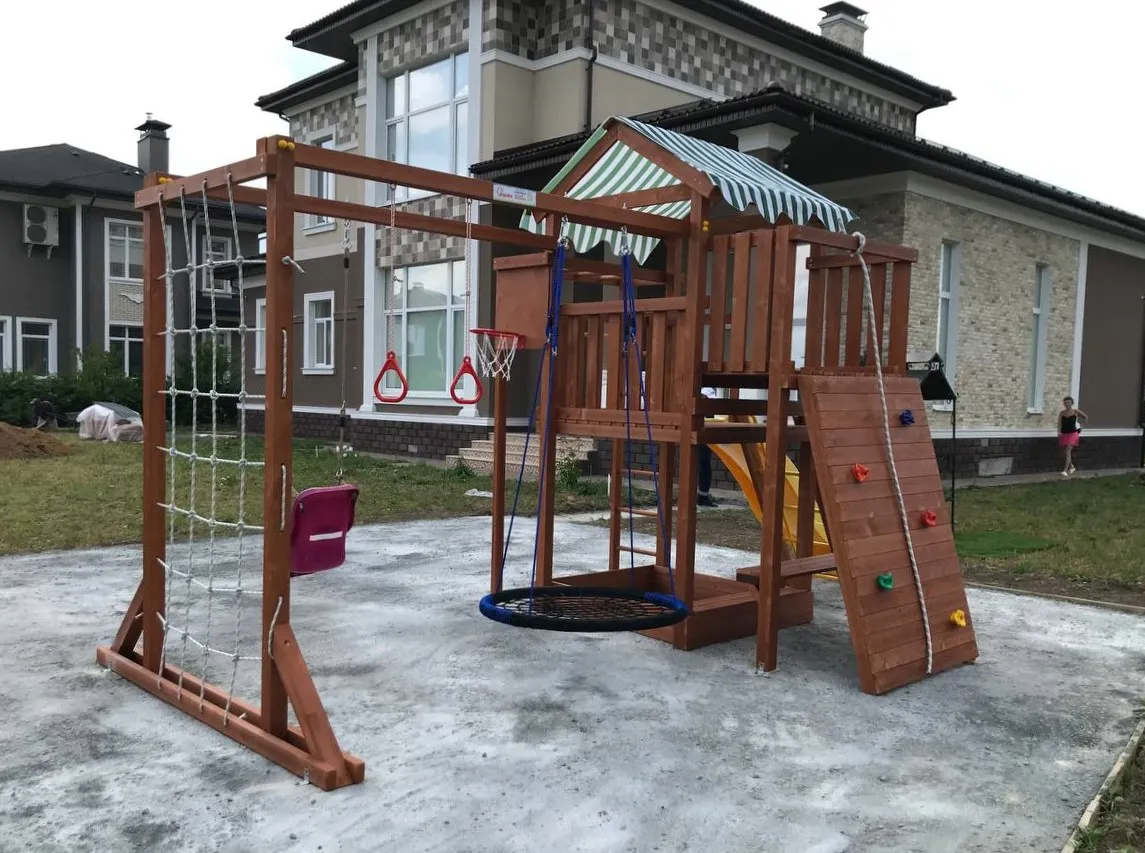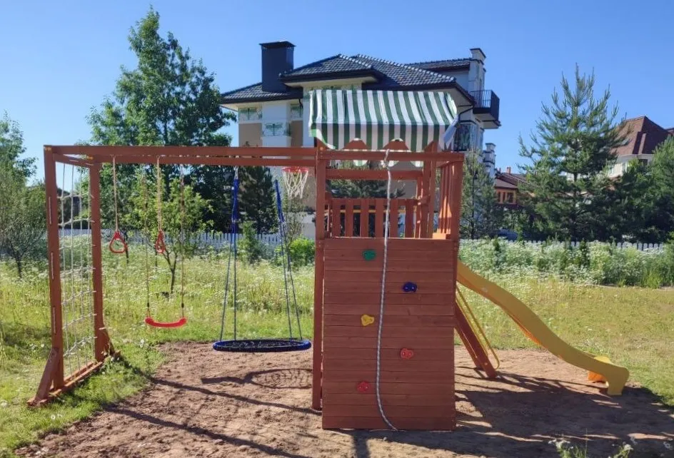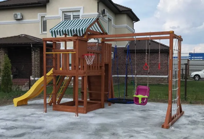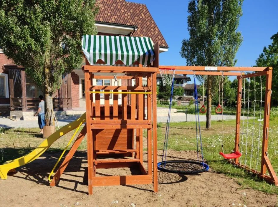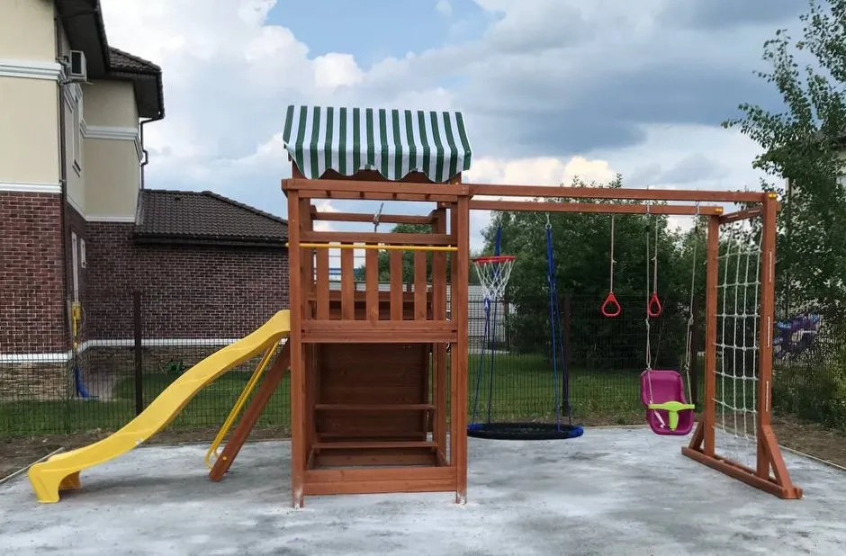 Качели, баскетбольное кольцо, увеличенный балкон и столик позволяют создать игровое пространство, где ребенок сможет не только заниматься спортом, но и придумывать увлекательные истории, играть с друзьями и отдыхать.