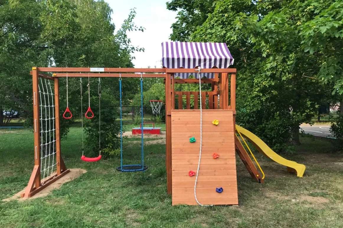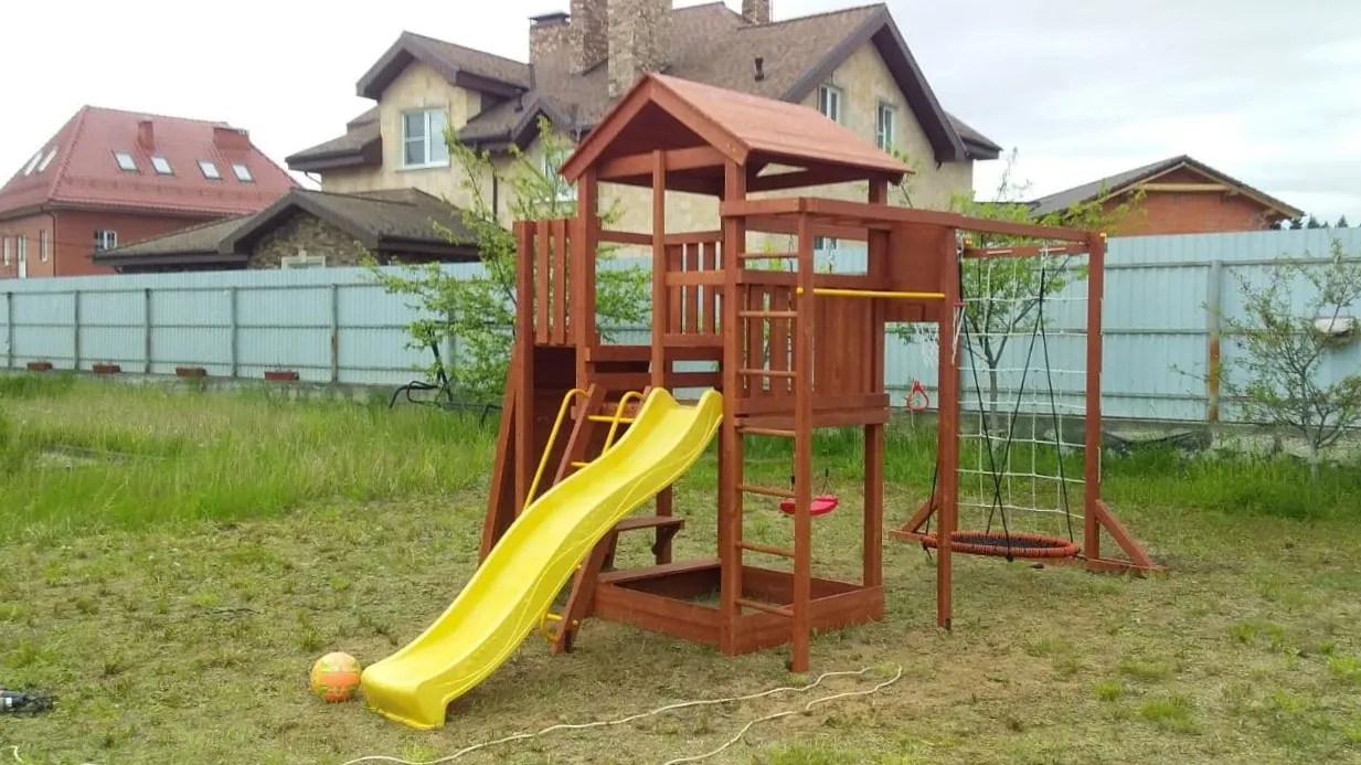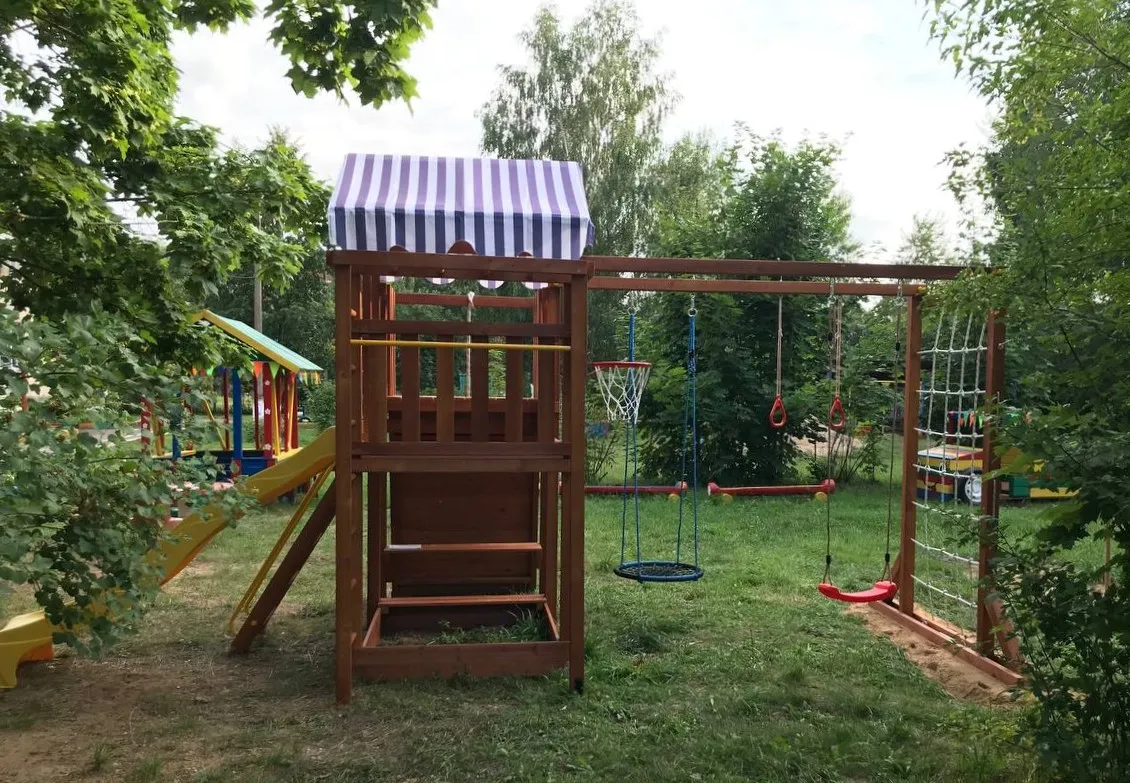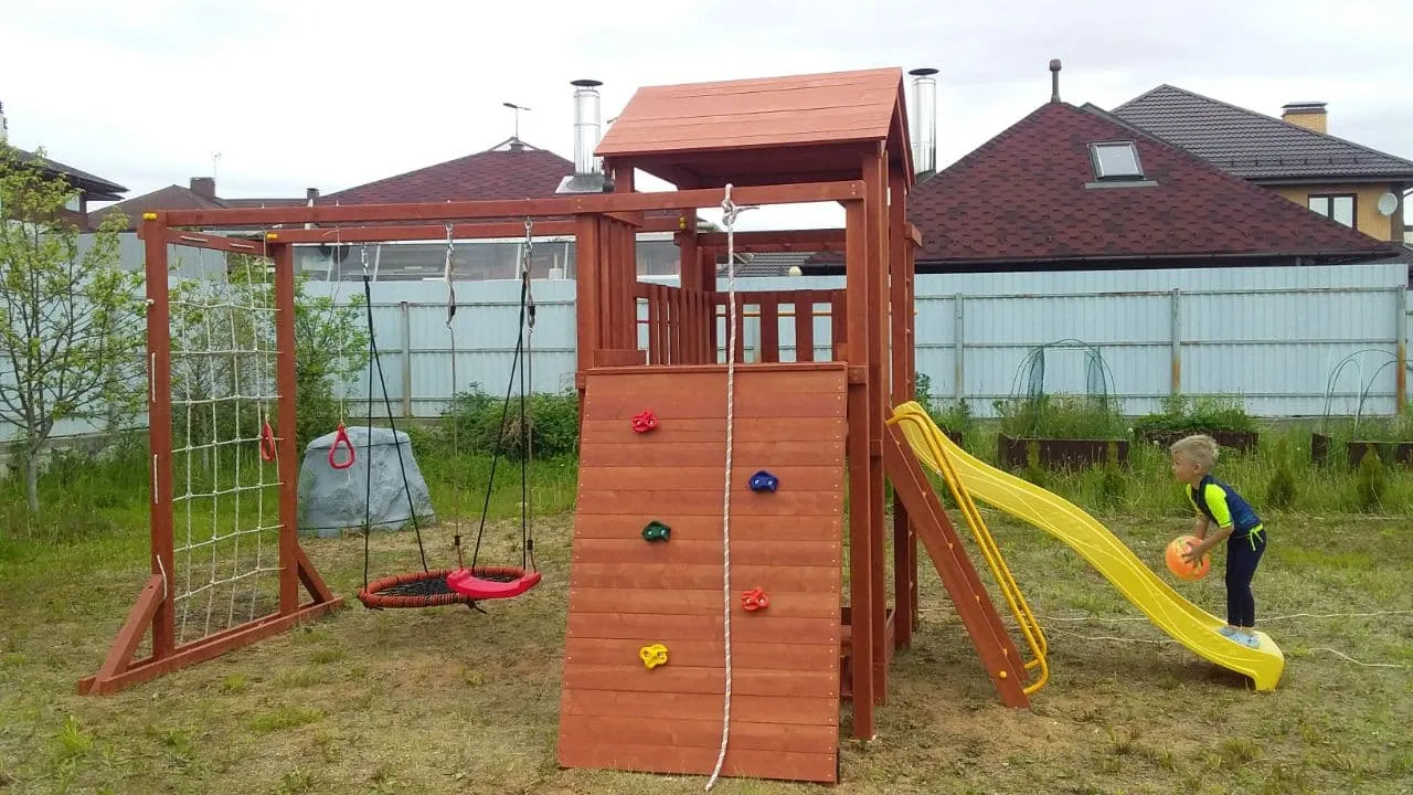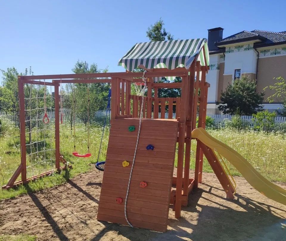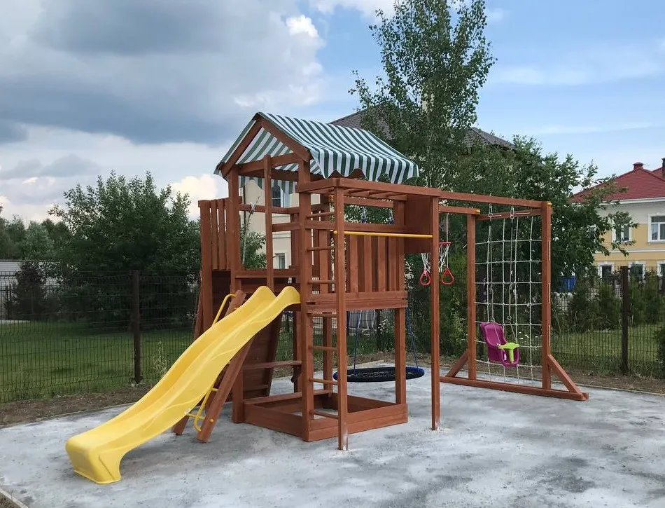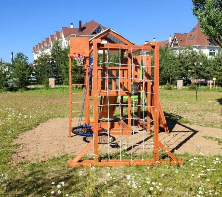Качели, баскетбольное кольцо, увеличенный балкон и столик позволяют создать игровое пространство, где ребенок сможет не только заниматься спортом, но и придумывать увлекательные истории, играть с друзьями и отдыхать.