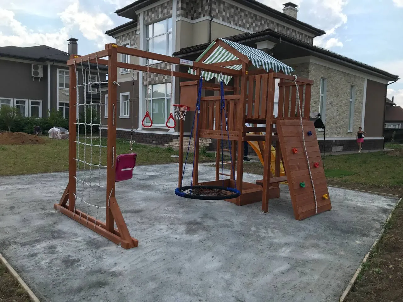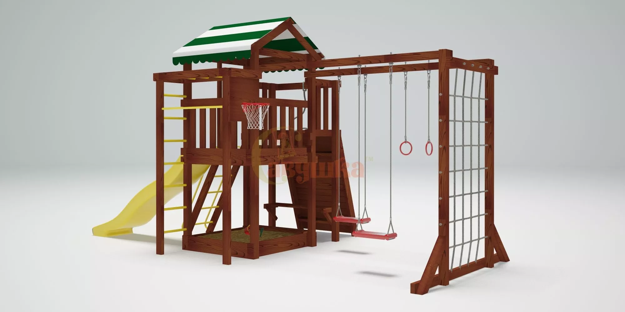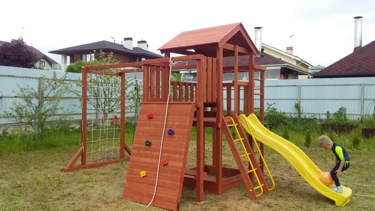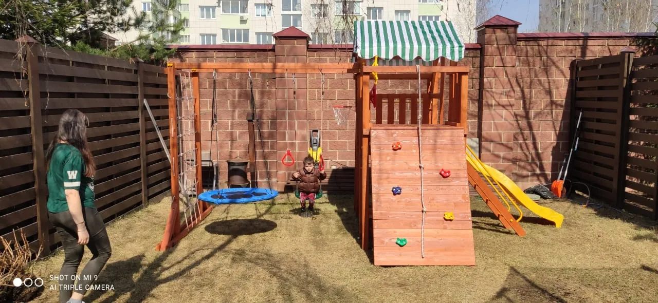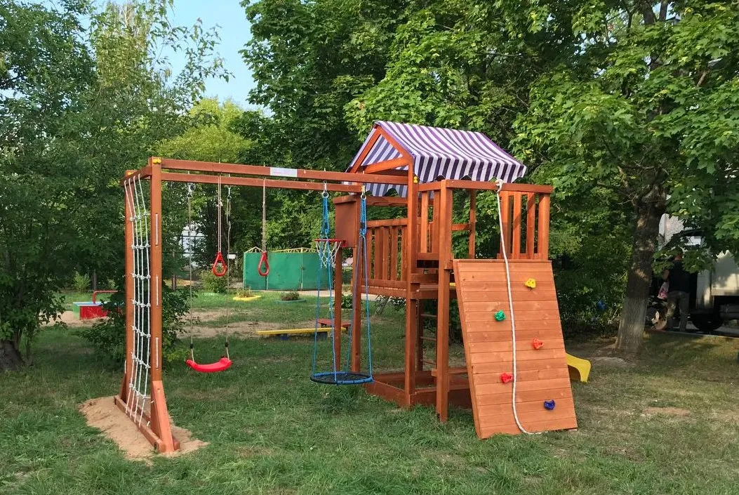 Качели, баскетбольное кольцо, увеличенный балкон и столик позволяют создать игровое пространство, где ребенок сможет не только заниматься спортом, но и придумывать увлекательные истории, играть с друзьями и отдыхать.