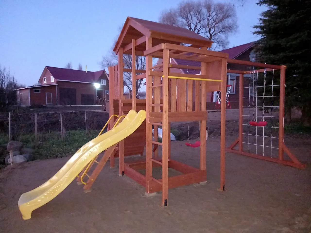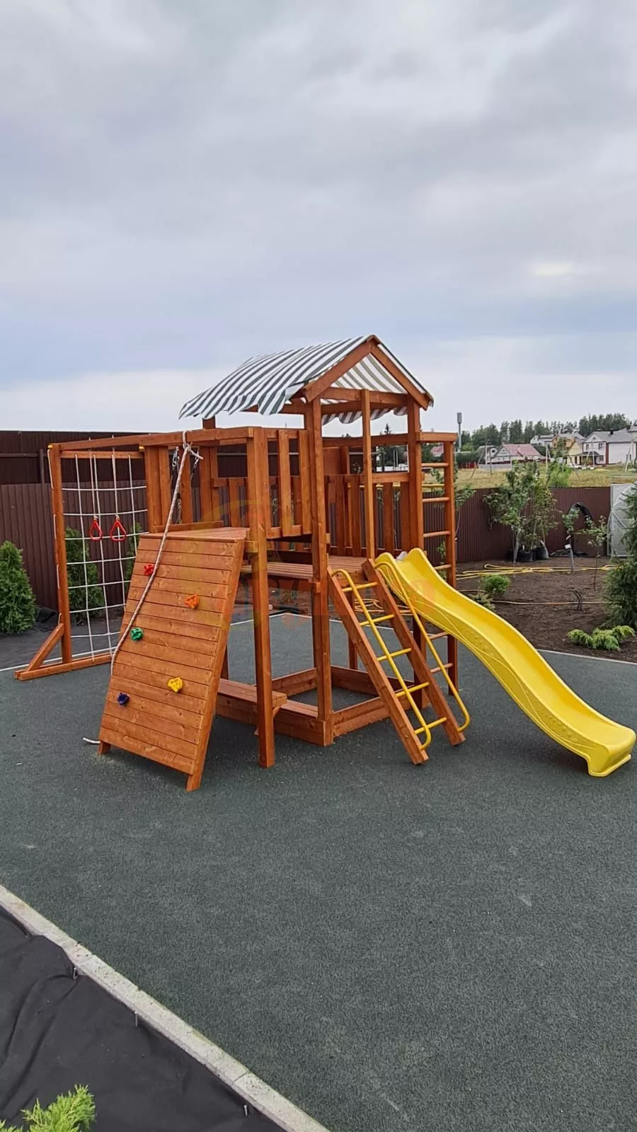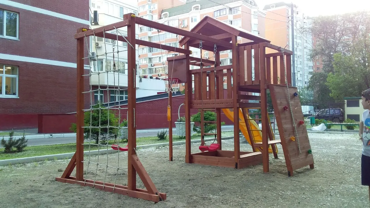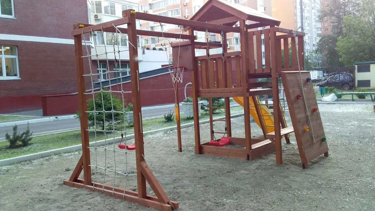 Все элементы комплекса рассчитаны на долгую эксплуатацию и устойчивы к внешним воздействиям. Покрытие и материалы не требуют сложного ухода, сохраняя презентабельный вид в течение многих лет.