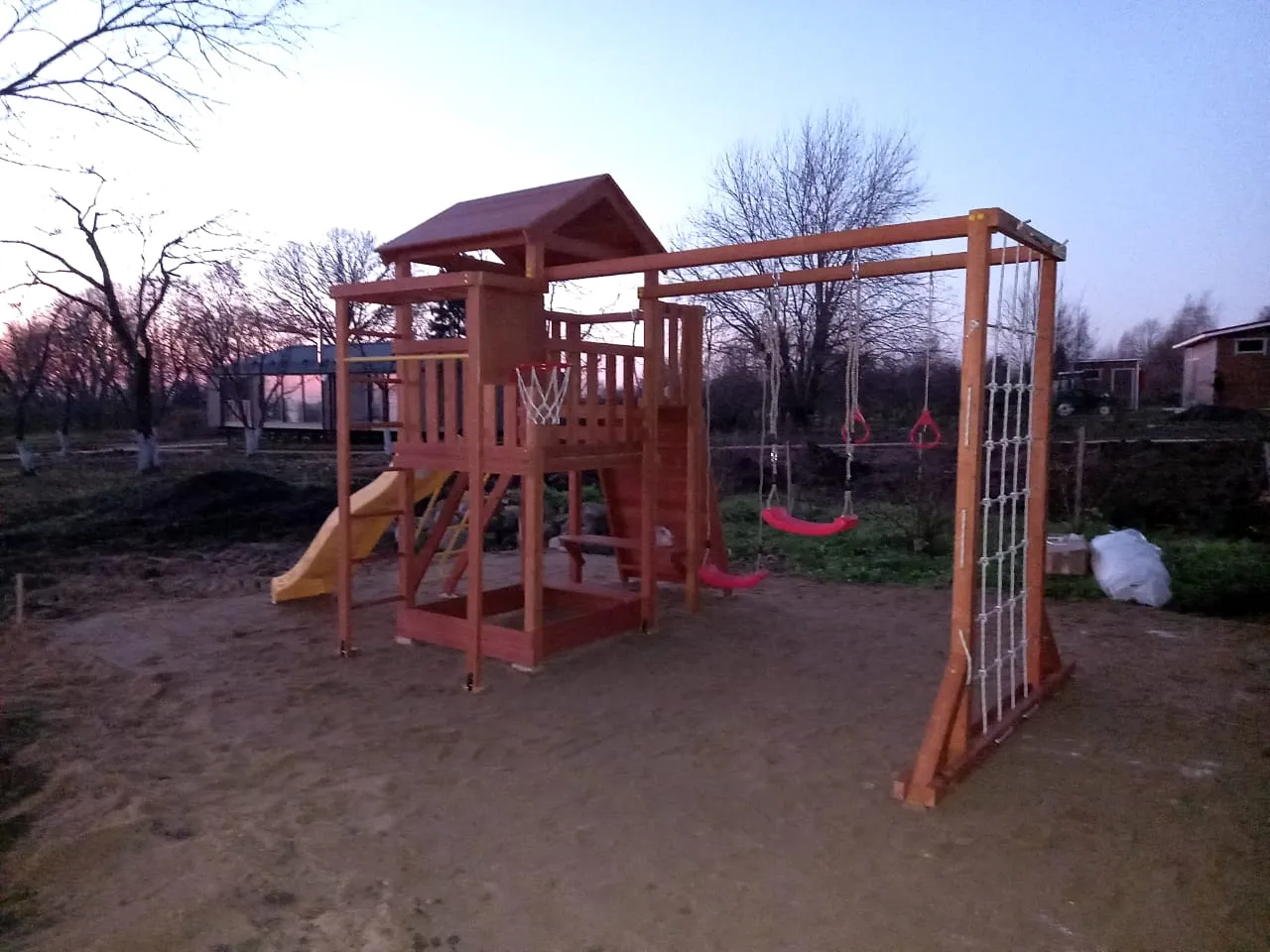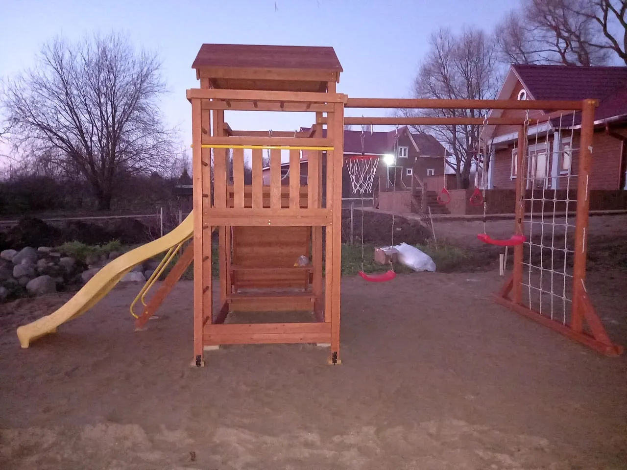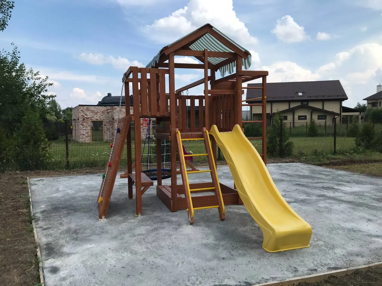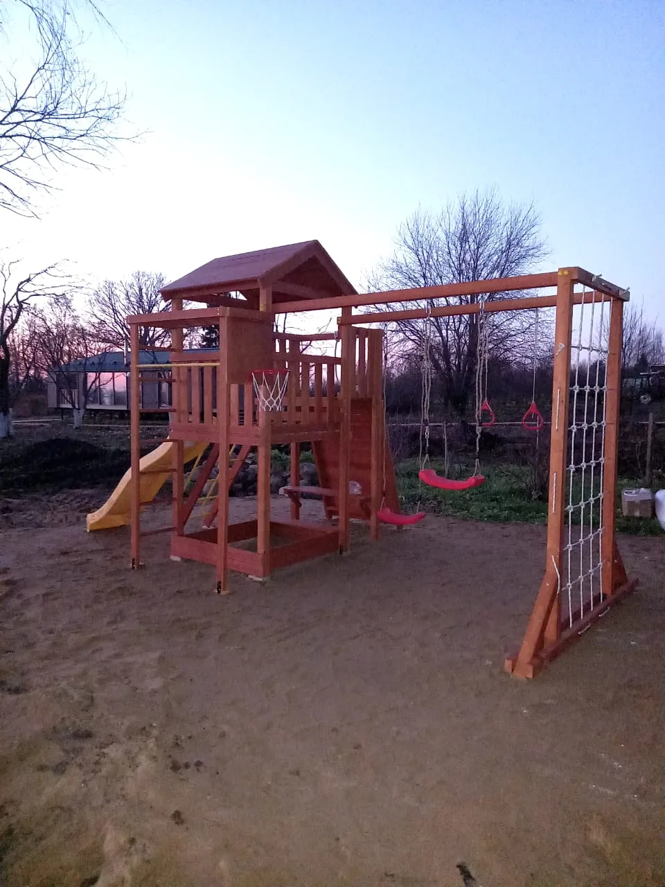Все элементы комплекса рассчитаны на долгую эксплуатацию и устойчивы к внешним воздействиям. Покрытие и материалы не требуют сложного ухода, сохраняя презентабельный вид в течение многих лет.